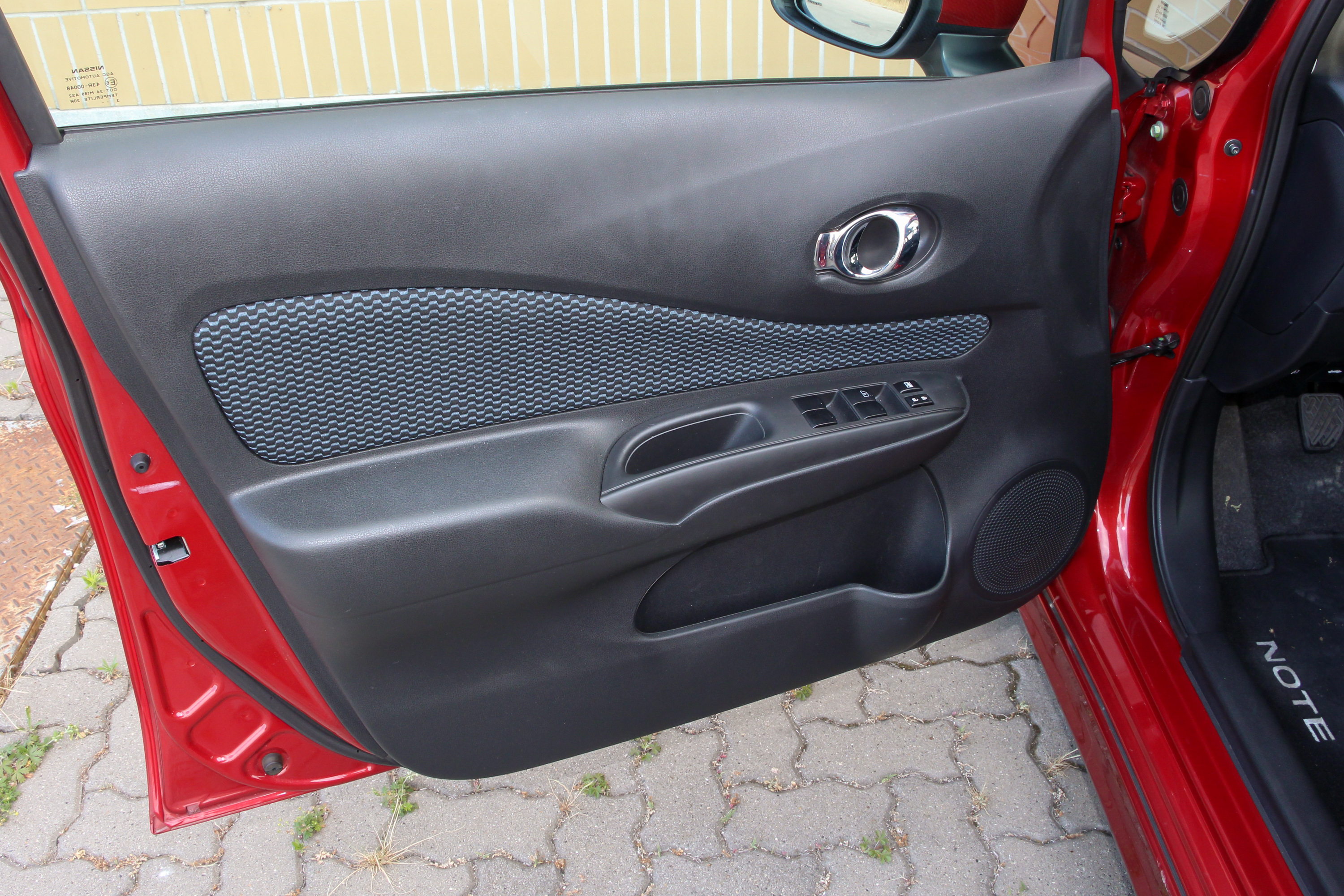 A Note belterében is uniszex formák, kellemes megoldások várnak. Tárolórekesz van elég, de a könyöktámasz sajnos nem alapáras. Ennél nagyobb gond, hogy a kormányt én egy jó 2 centivel közelebb állítottam volna magamhoz, de nem tudtam, mert a Note-ban csak fel-le lehet. Ettől még jó pozíciót találtam az ülésben, és nem csak elöl, hátul is. A kidolgozás és az összeszerelés minősége jó, huplikon sem neszel semmi a beltérben. Szép a kárpit, a műanyagokon viszont nagyon érezni, hogy ez igazából egy kisautó. Igényes a krómozott fém (vagy csak fémnek hat, de ez igazából itt nem számít) kilincs is, még akkor is, ha formája nem a legelőnyösebb.