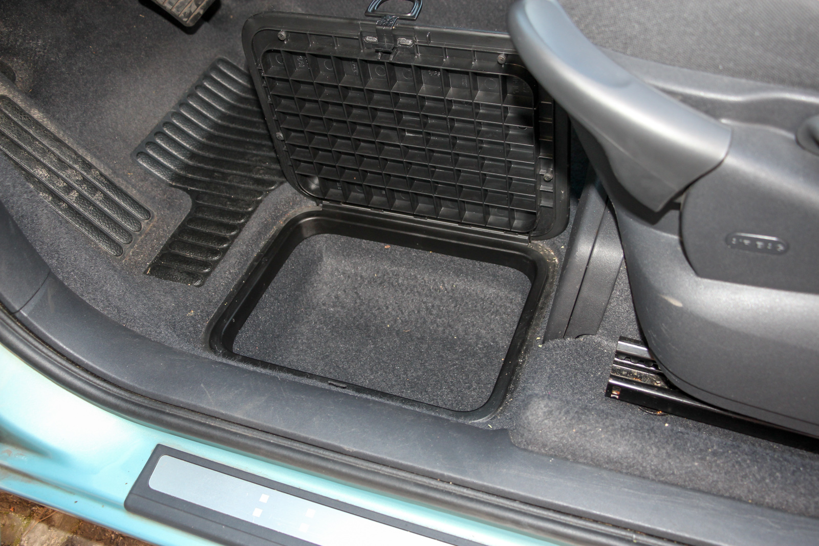 Hiába kétpedálos, vészesen közel került egymáshoz a fék és a gáz, megakadhat az utóbbiról lelépő láb. Az utasülés alatt fiók helyett a navigáció DVD-olvasója utazik