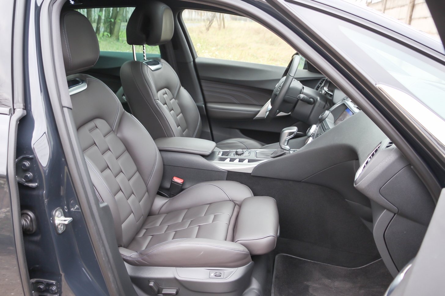 A start-stop rendszer az automataváltóval kombinálva talán egy fokkal kevésbé finom, mint az újabb modellekben, mint a C4 Picasso, vagy az új 308-as. A motort ereje miatt nem érheti kritika: az több mint meggyőző, a nagy és széles felnik ellenére a 400 Nm nyomaték úgy ki tudja tekerni a kormányt a vezető kezéből, hogy csak na. Ez a hajtási befolyás, ami a MacPherson helyett egy kettős keresztlengőkaros, de ne gondoljuk túl a kérdést, már egy függőcsapszeges első futóművel is kiküszöbölhető lenne. Egyszerű a megoldás: nem kell a 180 lóerőt hajszolni, krúzoláskor ilyen gond sincs. A hatfokozatú automataváltó bár kézzel is kapcsolható, de a karakteréhez nem illik a vadulás, sokkal inkább a komfortos utazás. Épp ezért én nem visszafelé lökdöstem a kart, hanem felfelé váltottam bele az automata programjába, ne búgassa feleslegesen a motort.