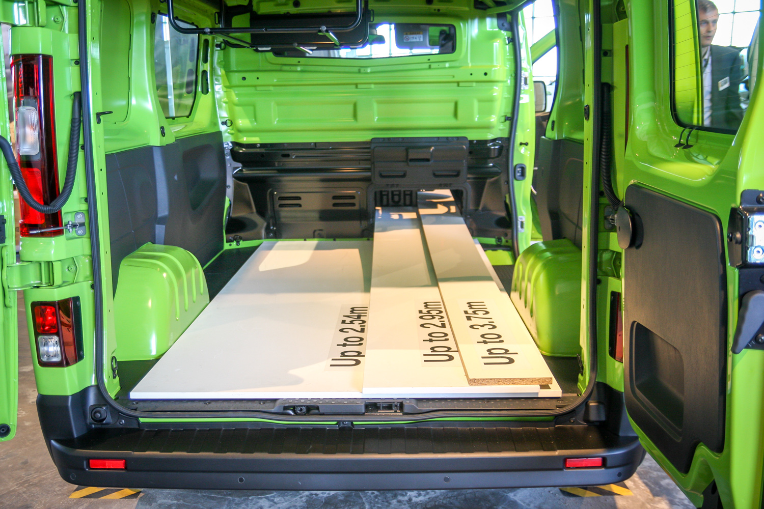 Ami új-új még, hogy az Európa harmadik legeladottabb kishaszonjárművének számító Trafic 21 centivel hosszabb lett, s ebből a 21 centiből 11 érinti a dizájnos, masszív orr-részt, s 10 a hátsó túlnyúlást. Ami átkonvertálva 200 liternyi plusz jelent a raktérben. Alapból. Az L1 így egy milliméter híján 5 méteres, s lazán elnyel holmi 3,75 méteres lécet úgy, hogy szépen rá lehet csukni a hátfalat. És úgy, hogy a raktér összenyitható a fülkével. Sőt, a hátfal bal szárnyát egy ügyes kis megoldással résnyire, a jobb szárnyat meg 90 fokban rögzíthetjük, amivel 4,15 méter hosszú lécet/csövet/létrát is szállíthat a Trafic. A „kicsi. Csövet/létrát, vállról indítható rakétát a raktér felső fertályába is lehet pakolni, továbbá az 5,2 köbméteres dobozba három EUR raklap is elfér, hoppá. Az L2 puttonya már 8,6 köbméteres.