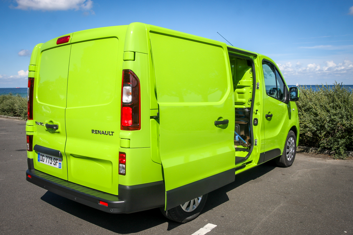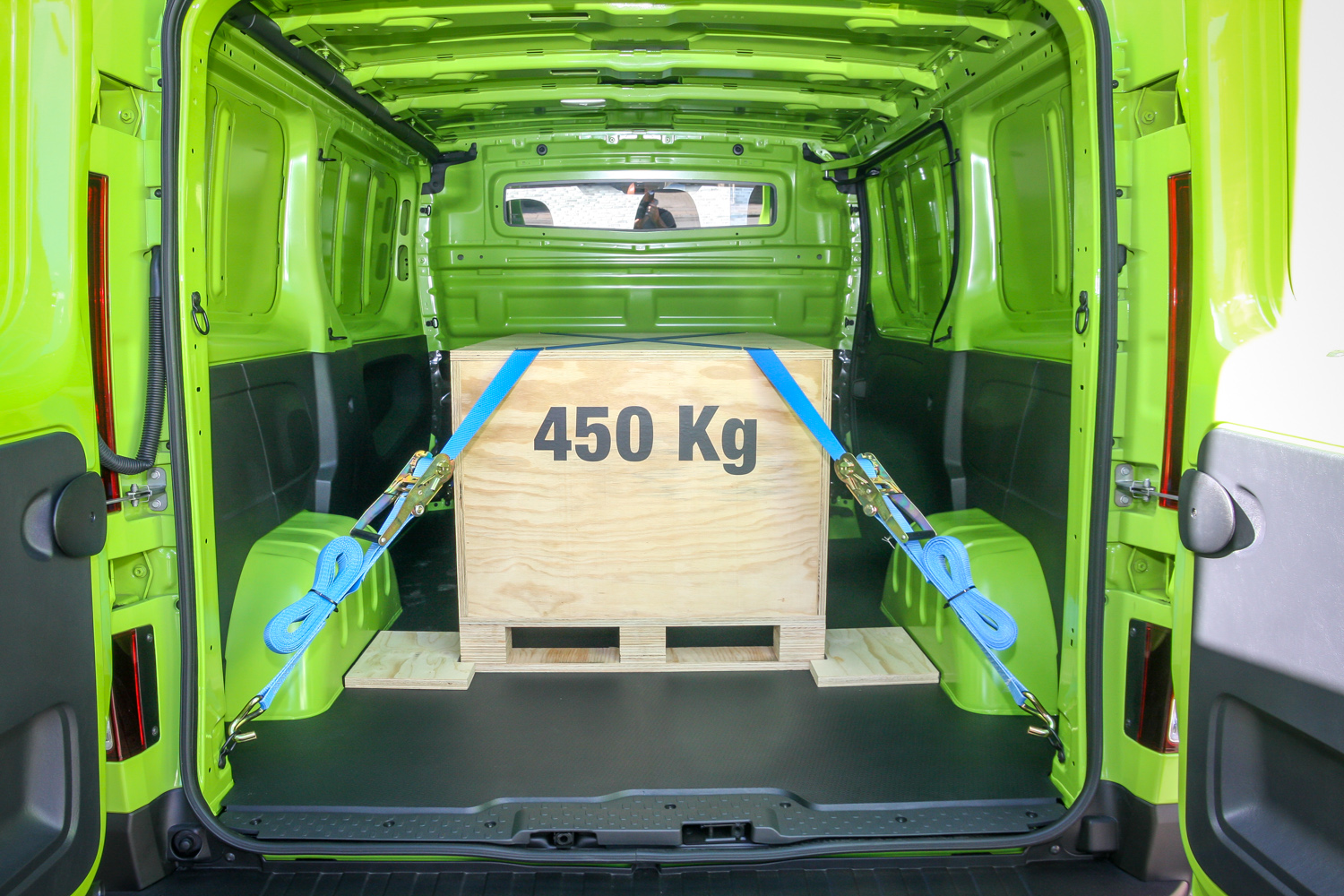 A tesztpéldányokban mondjuk nem raklap volt, hanem egy 450 kilós, alaposan kikötött frigyláda nehezék, hogy ne már szimplán üresen vizsgáljuk a harmadik generációs Trafic viselkedését, dinamikáját és fogyasztását. És hogy ne pattogjon… Nem is pattogott, hanem kellemesen rugózott, könnyű volt vezetni, klasszul fordult, kitűnően gyorsult, kényelmes volt, minden korábbinál személyautósabb, csendesebb, takarékosabb, zöldebb. Pláne a bambusz zöldnek hívott fényezéssel.