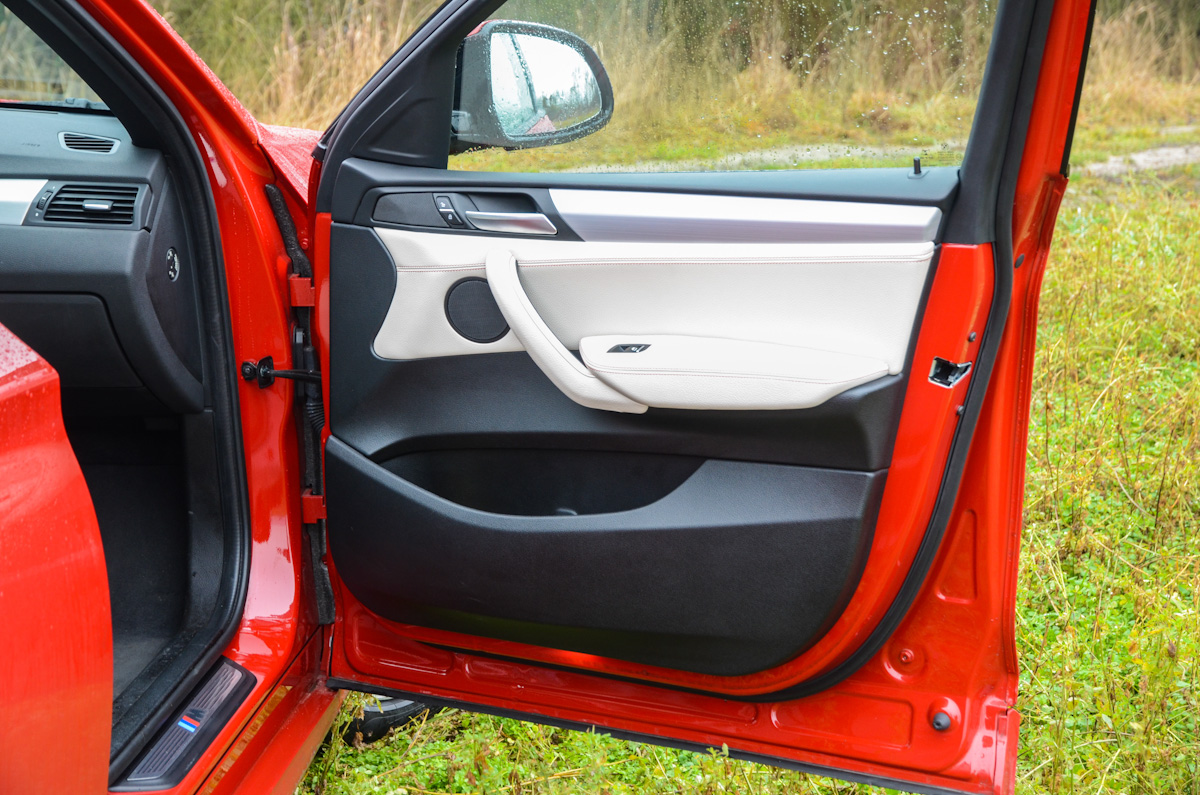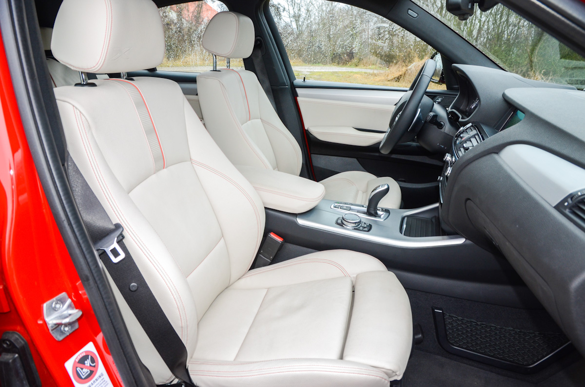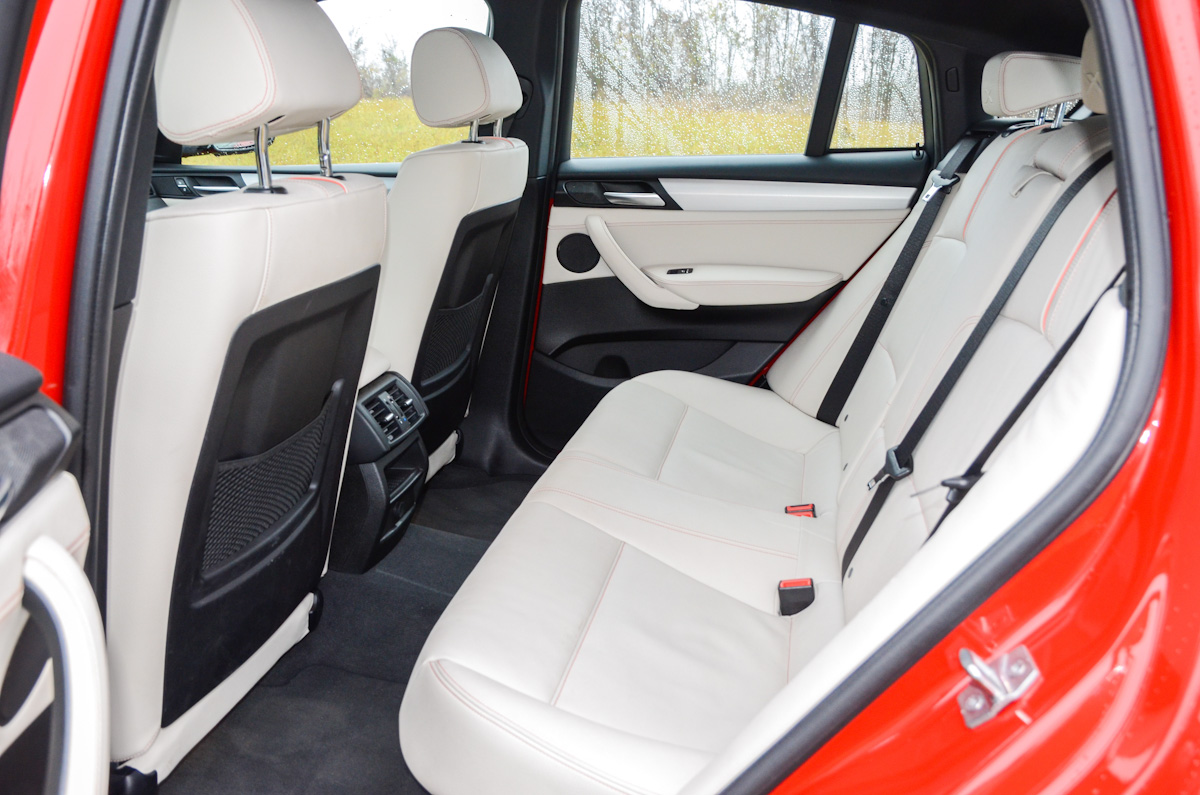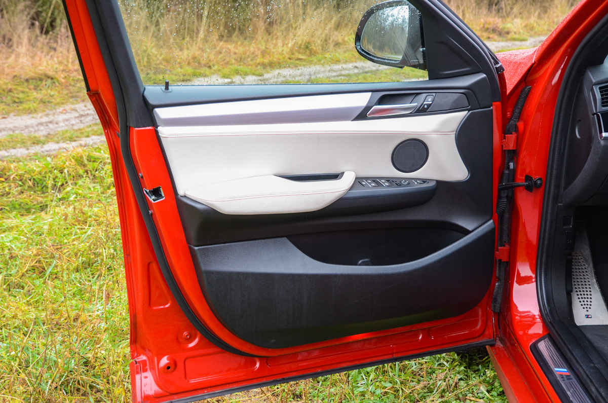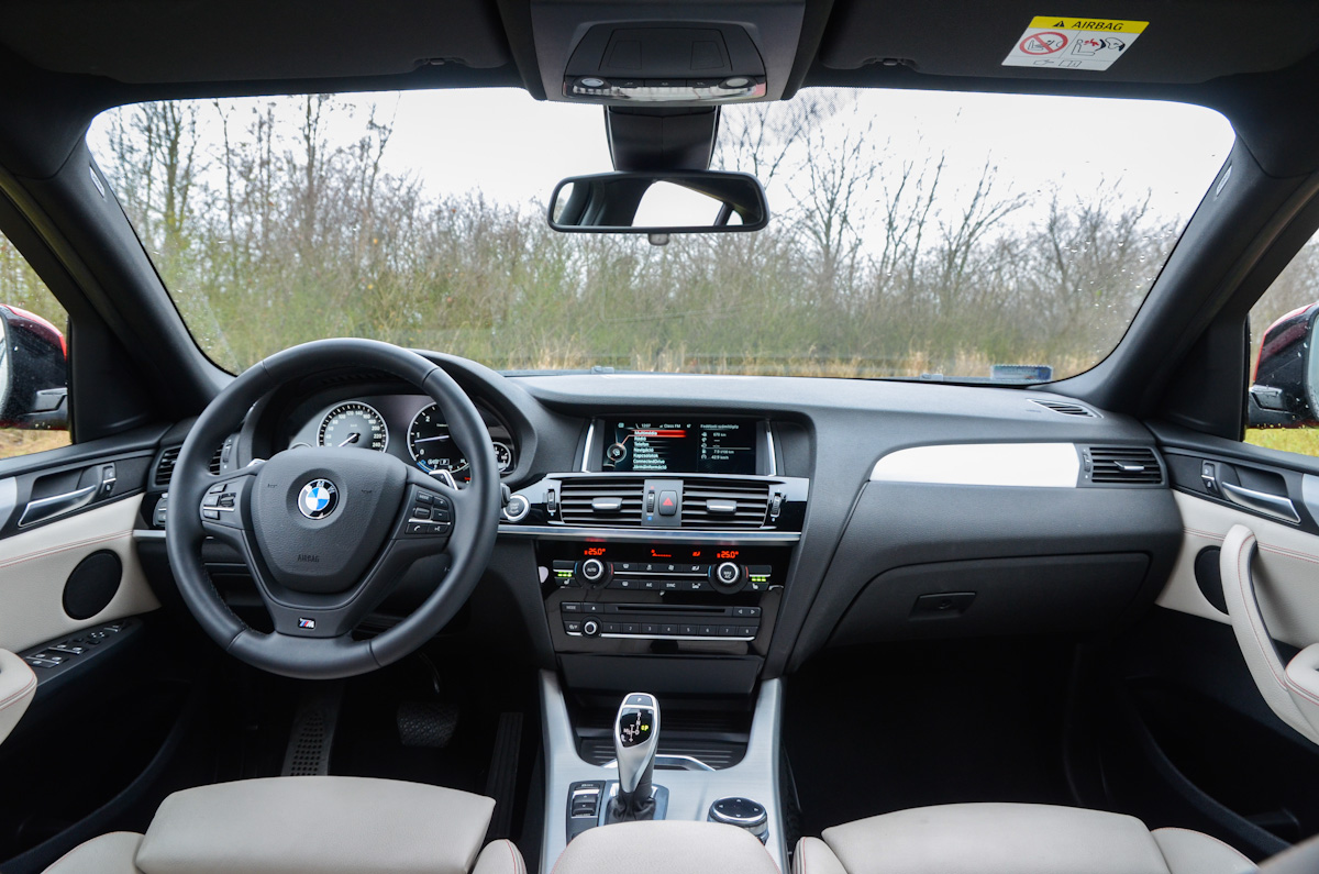 Vannak gyengéi. Összességében nagyon rendben van az X4, akad azonban néhány kevésbé kellemes tulajdonsága. Az M csomaghoz járó M futómű meglehetősen kemény lenne, éppen ezért adaptív futómű is került az extrák közé, ami jót tett az autó karakterének. Segítségével komfort módba tudjuk hangolni a rugózást, ami a budapesti utakon igen előnyös. Viszont ebben az üzemmódban városi tempónál is lehet érzékelni, hogy bizony kemény ez a futómű. Nagyobb, országúti tempónál viszont már jól elnyeli az úthibákat, nem kényelmetlen az sem, ha agyonfoltozott úton haladunk. A LED-es fényszórók hasznát főként távolsági fény használatakor élvezhetjük, egyébként ahogy a 4-es Gran Coupéban, itt is az tűnt fel, hogy a tompított fény nem világít kellően távolra. Végül pedig a világos bőr az, ami folyamatos odafigyelést és tisztítást igényel. Ezen viszonylag könnyen lehet változtatni, szövet vagy sötét színű bőrüléssel kell rendelni az autót.