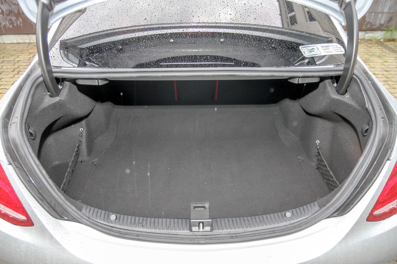 Ennél gyakorlatilag azért fontosabb, hogy a növekedés révén hátul is egész jól el lehet férni – két utasnak úgy 180 centivel a 180 centis sofőr és anyósa mögött feltétlen. A fekete szövet tetőkárpitra kontrázó kétrészes, félig nyitható panorámatető sem annyira helyigényes, hogy lemondjon róla a többség. Ami bajos, de minimum szoknivaló, hogy hátra beszállni nagyon nem leányálom, elsőre fejbeverős – ebben nem az S-re, hanem a kupés CLA-ra rímel a C-osztály.