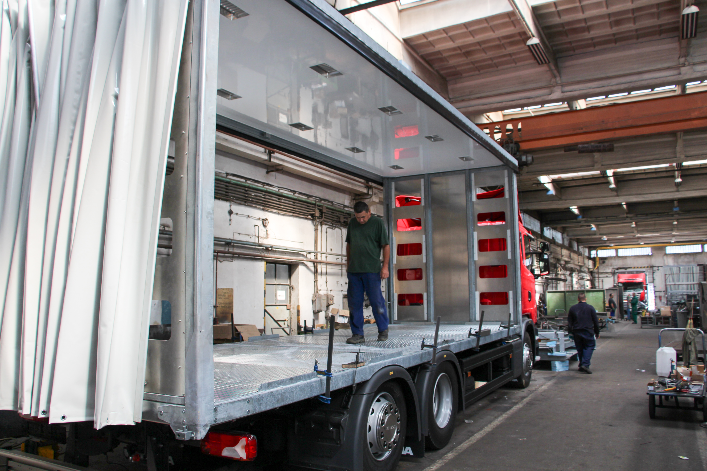 Mert mi számít egy fuvarozónak, illetve termelőnek? Hogy egységnyi árura minél kevesebb szállítási költség jusson. S ez nem csak azon múlik, hogy a járműben milyen motor van, az mennyire takarékos és megbízható, hanem azon is, hogy a raktér a lehető legjobban kihasználható legyen, bírja a terhelést. Készítettek már háromszintes, hidraulikusan felemelhető emeleteket adó élőállat-szállító pótkocsikat az Autofernél, temérdek különféle terményszállítót, targoncaszállítókat, stb. Most pedig épp 15 kamionra építenek felépítményeket a szentesi Hungerit számára, hogy azok új palettáikhoz tökéletesen illeszkedjenek. Ez a megrendelés jól mintázza azt, hogy milyen kiszolgálásra képes a cég. A megrendelő csak az igényeit kellett rögzítse, s a teljesen új kamionokat is az Autofer szerezte be, ő tervezte, engedélyeztette és gyártja a felépítményeket, s a teljesen személyre szabott kamionokat vizsgáztatva, menetkészen adja át. Más megrendelőknek akár használt járművekre is építkeznek – ezért állt például ottjártunkkor másik féltucatnyi – még jó karban lévő de nem új – Volvo is az üzem udvarán. A felépítményeket nem egyszer egyik járműről a másikra építik át, a minőségről ugyanis sokat mond, hogy jellemzően többet bírnak, mint a gépkocsik. Hozzá kell tenni – amennyiben valóban arra használják, amire tervezték. Előfordult ugyanis, hogy egy alumíniumból készített pótkocsi utólagos megerősítést igényelt – a tervezettnél nagyobb pontterhelést kapott. A megrendelő mást is szállított vele, mint amit a megrendeléskor, a tervezéskor mondott. A cég munkadíj nélkül erősítette meg a pótkocsit, ám a vevő is jobban járt volna, ha nem utólagos, állásidőt eredményező javításra került volna sor.