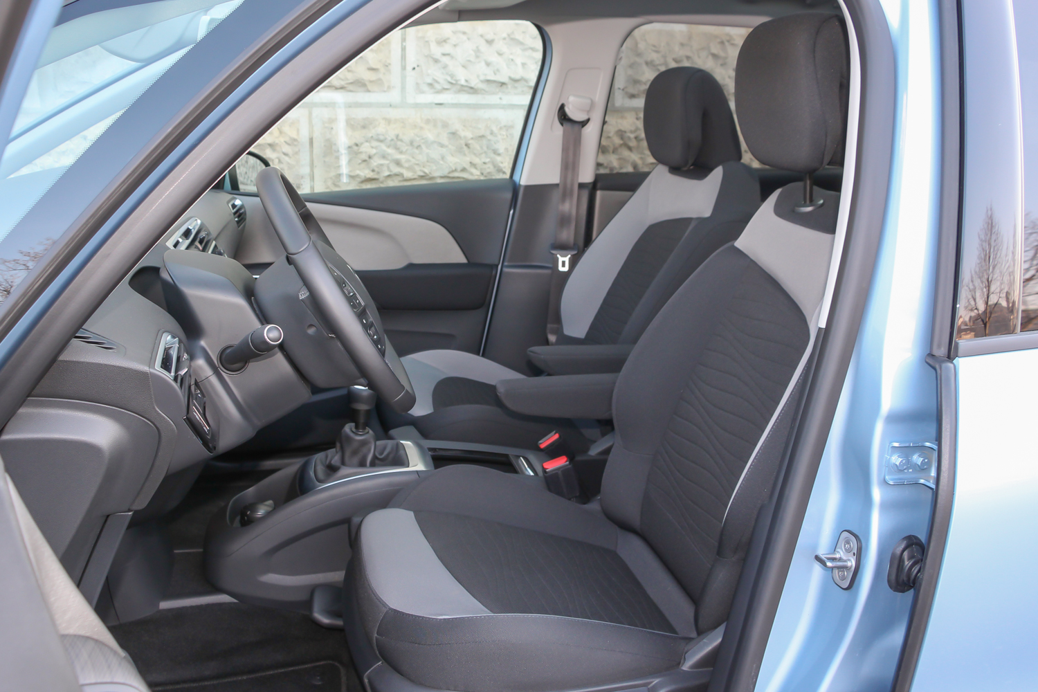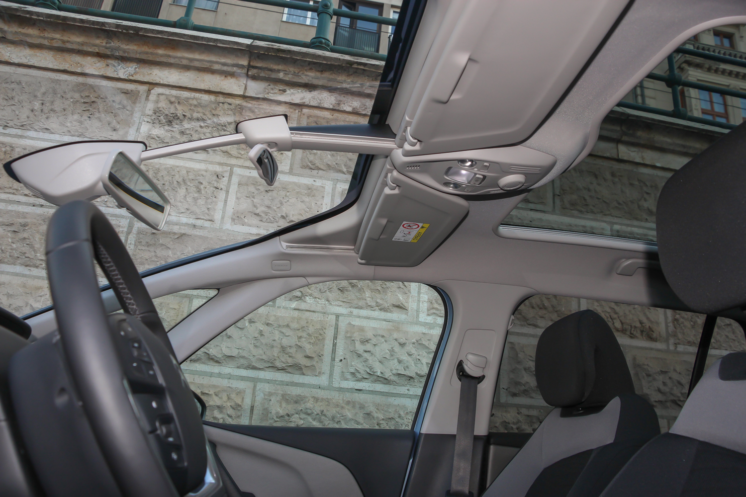 A panorámaszélvédő alapáras a Picassónál, az A-oszlop mögötti kis ablak nem humbug, tényleg javít a kilátáson, a visszapillantó tükrük tolatáskor billenve segítenek, a középkonzoli rekeszbe befér a kilós liszt is
