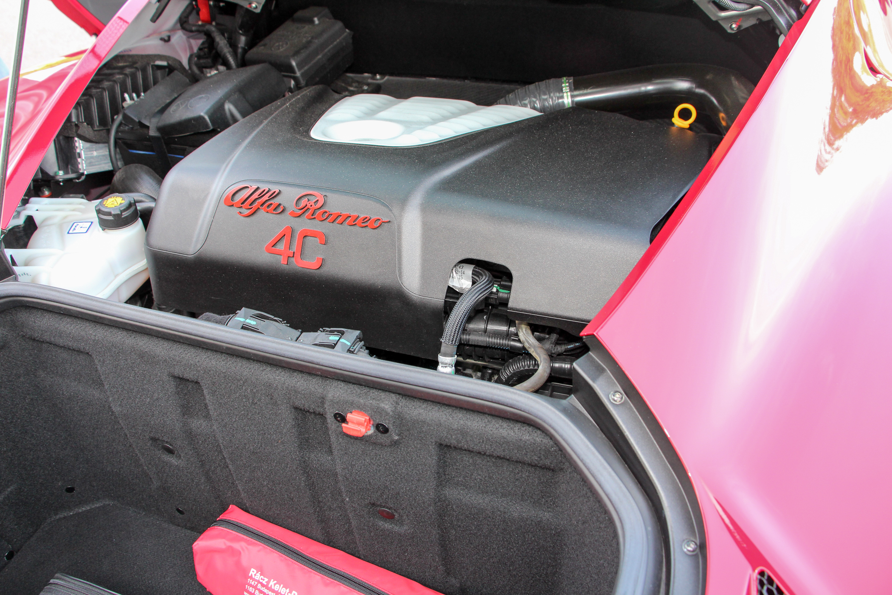 Megéri? Ahhoz képest mindenképp, hogy milyen értékvesztése van egy újonnan 16,4 millió forintos 4C-nek. Megvenni pedig további szempontokból is komoly luxus a napi szaladgálósnak csak igen erős kompromisszumokkal használható gépet. Jobb az időszakos bérlés. És a 4C tényleg olyan autó, amit érdemes kipróbálni, olyan, amit jó megismerni. Az Alfák Alfája, az Alfa jelenlegi kínálatának legérdekesebb, legértékesebb tagja – mondjuk nincs nehéz dolga a MiTo és a Giulietta között. Tavaly nyáron alaposan bemutattuk, de azért ismételjünk egy kicsit: hossza nem egész 4 méter, rövidebb egy Opel Corsánál, tömege viszont elképesztően szerény, mindösszesen 895 kilogramm. Karosszériaváza karbonszálas, a teljes teherviselő és egyben védelmi funkciót is betöltő elem 65 kilogrammos, s még mielőtt pályára hajthattunk volna, megtudtuk, hogy az Alfa csak a saját „flying doctor” fedőnevű szakemberével bevizsgáltatott sérült elemeket javíttatja, baleset esetén a 4C könnyedén lesz gazdasági totálkáros. A karosszéria külső és belső paneljei könnyű és kemény kompozit műanyagok, az acélhoz mérten 20%-os tömegcsökkentéssel.
