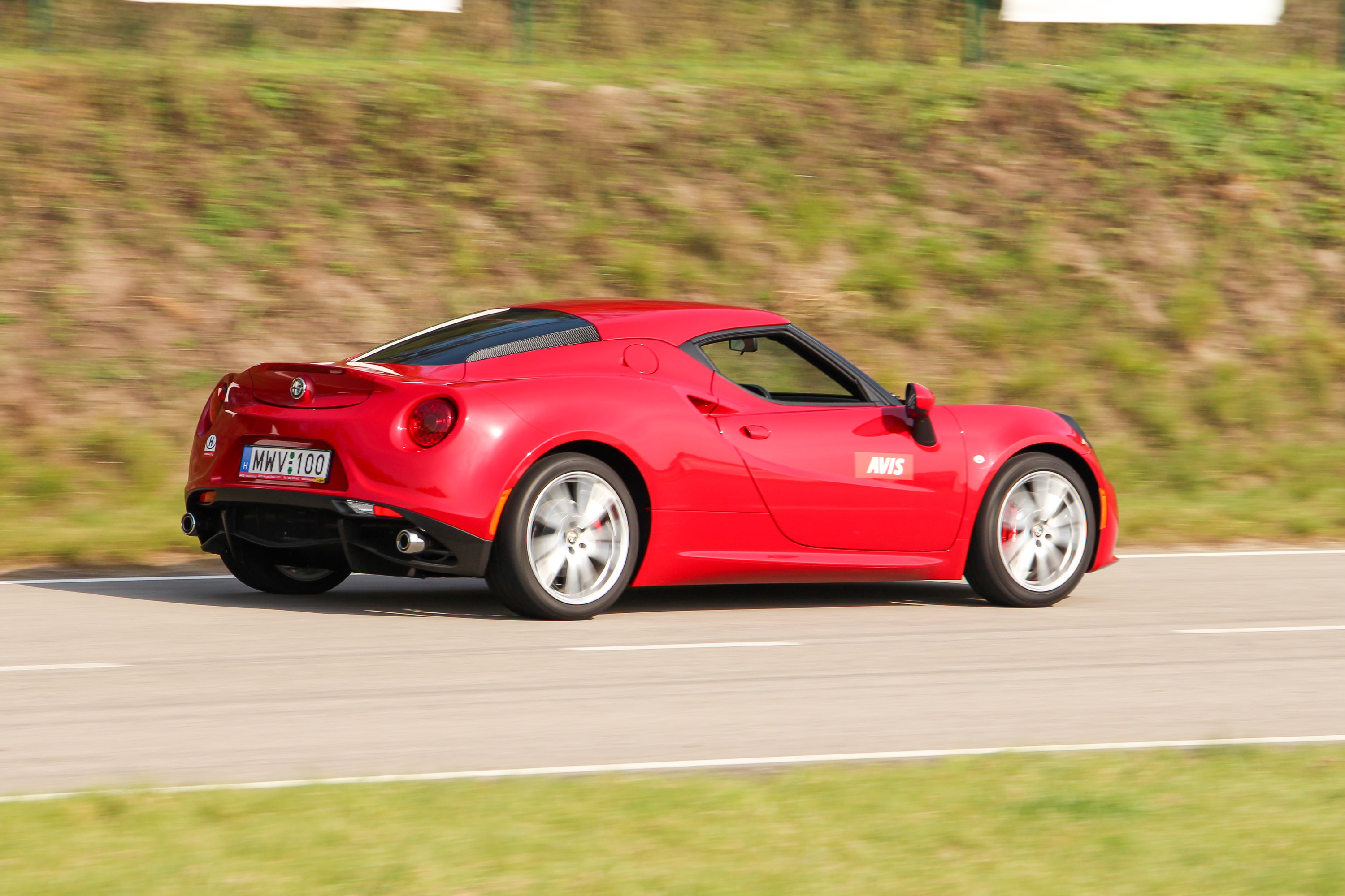 De a 4C-ben fölösleges a hibákat keresni, nem autóként, hanem játékszerként kell tekinteni. Segítség benne, hogy a váltást megoldja, nem is rosszul, hanem villámgyorsan, visszaváltáskor libabőröztető hanggal járó gázfröccsel. Élményekkel, élettel teli, egyben majdnem olyan kemény, mint egy pályaautó, hiszen tömeg/teljesítmény aránya mindössze 3,73 kg/LE, 100 km/órára 4,5 másodperc alatt gyorsul. Itthon kihasználhatatlan, de 258 km/órás végsebességű. Oldalgyorsulásban 1,1, lassulásban 1,25 g erőhatást adhat. Ezek bizony már elég kegyetlenek, sofőrként persze jók! Ennél sokkalta komolyabb és drágább gépek tudnak csak hasonlókat. A 4C pedig közben egy kvázi józan autó, egy közepesen felszerelt prémium nagyautó áráért, szinte kisautós, 6,8 l/100 km gyári vegyes fogyasztási értékkel. A valóságban persze aligha lesz ember, aki ilyesmit hoz majd vele. Valljuk be azt is, hogy olcsónak sem nevezhető, de napi-/havidíja még akár emészthető, kifizethető lehet. Ilyen közel talán még sosem volt egzotikus autó az átlagpolgárhoz, mint most az Avis által.