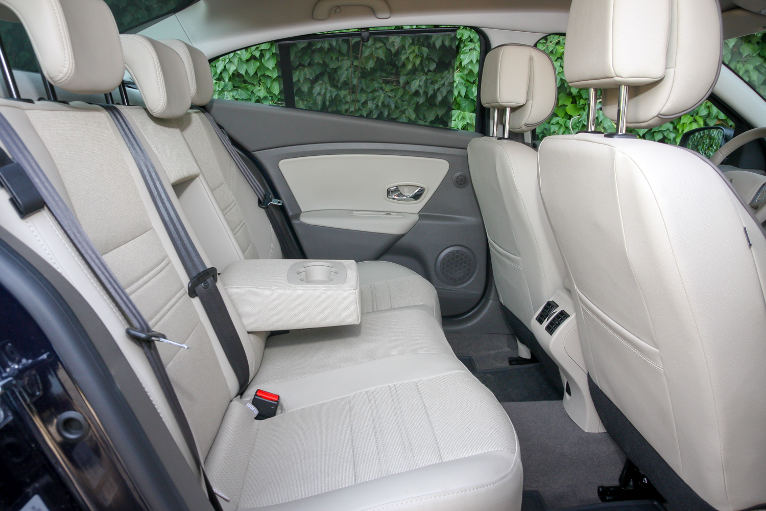 Hátul középen nem, másutt kényelmes, sok helyet adó a Fluence utastere