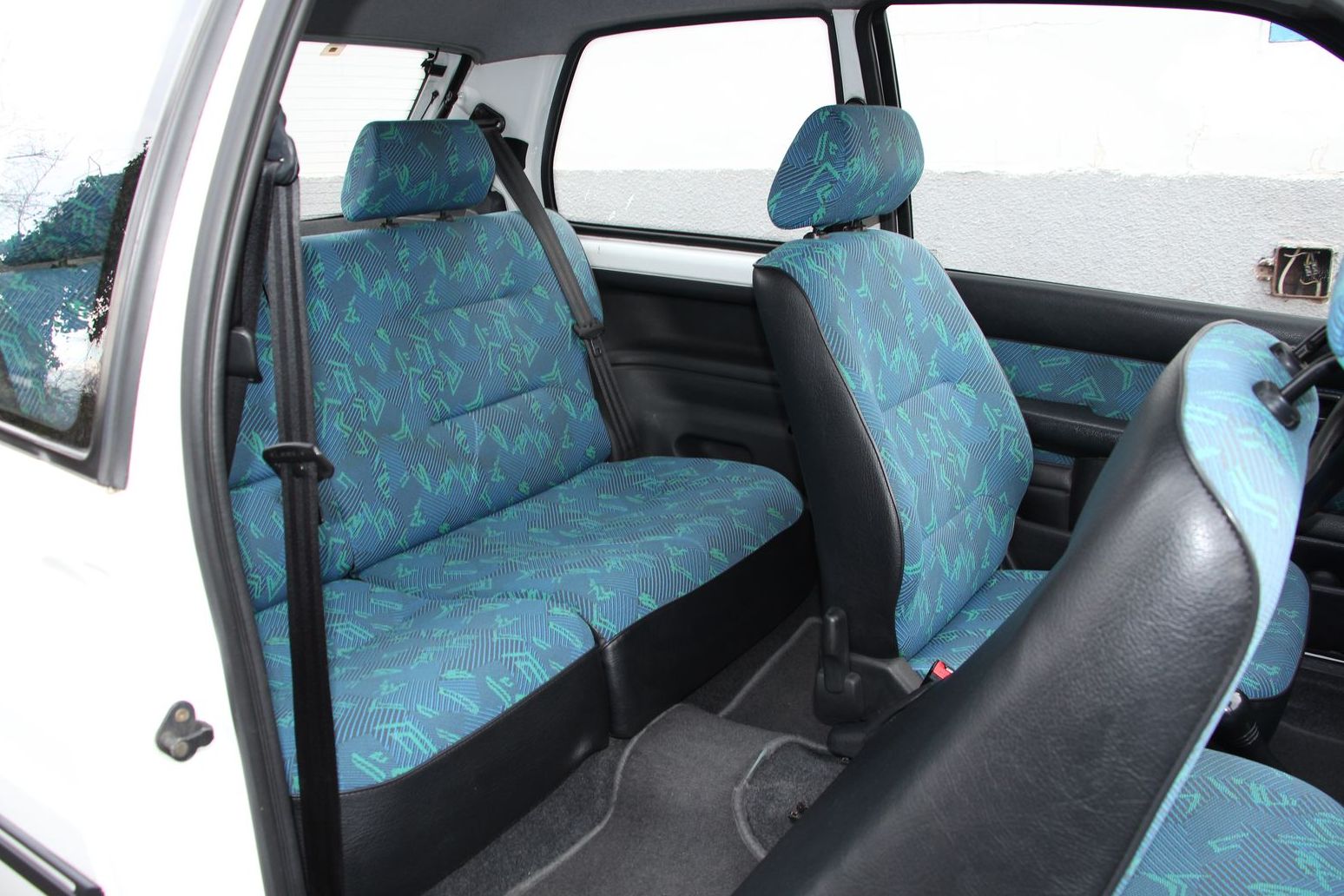 Az összes plasztik kemény, kopogós, ám egyik sem töredezett még meg. A kormány rásegítés és légzsák nélküli, karimája főként az UV-tól öregedett. Az autót védő csíkos őrkutya és mögötte a számkódos indításgátló tartják vissza a tolvajokat