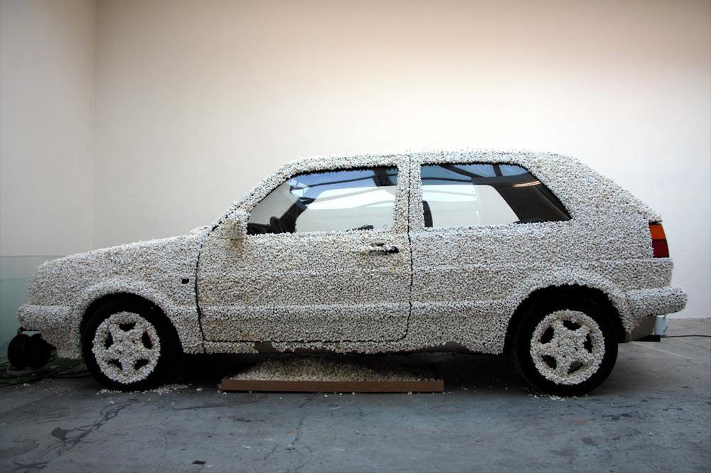 Légy egyedi, fejezd ki magad az autóddal (is)! Meg persze a telefonoddal, a ruháddal, a frizuráddal! Hiszen egyéniség vagy, vagy nem? Dehogynem, hisz’ mindenki az, s közben zabáljuk a fogyasztói társadalom áldásait. Lényegében akkor is, ha épp azt kívánjuk kifejezni, hogy mi nem a mainstream, nem a nagy átlag vagyunk, hiszen mi aztán nagyon különbözőek, a legnagyobb egyéniségek vagyunk. A világ már csak ilyen, s most itt van egy újabb egyedi autó, egy pattogatott kukoricába rejtett Volkswagen Golf, amit Lucas Danehnl, Braunschweig művészeti egyetemének hallgatója épített meg szolid egy év alatt egy hőlégfúvó, meg persze némi ragasztó segítségével.[BANNER type="1"]