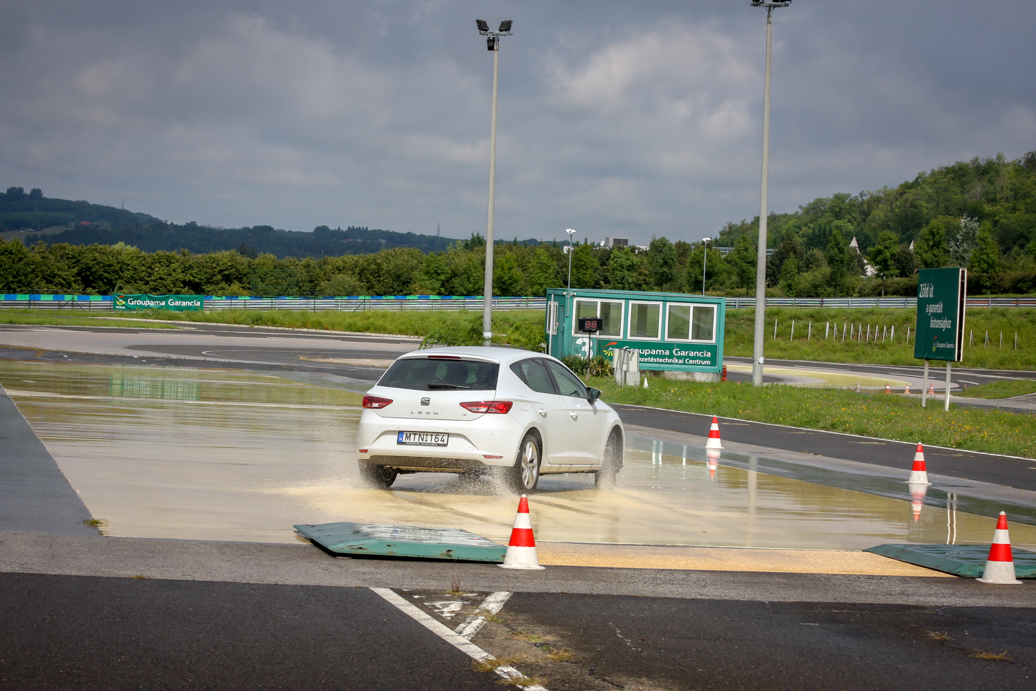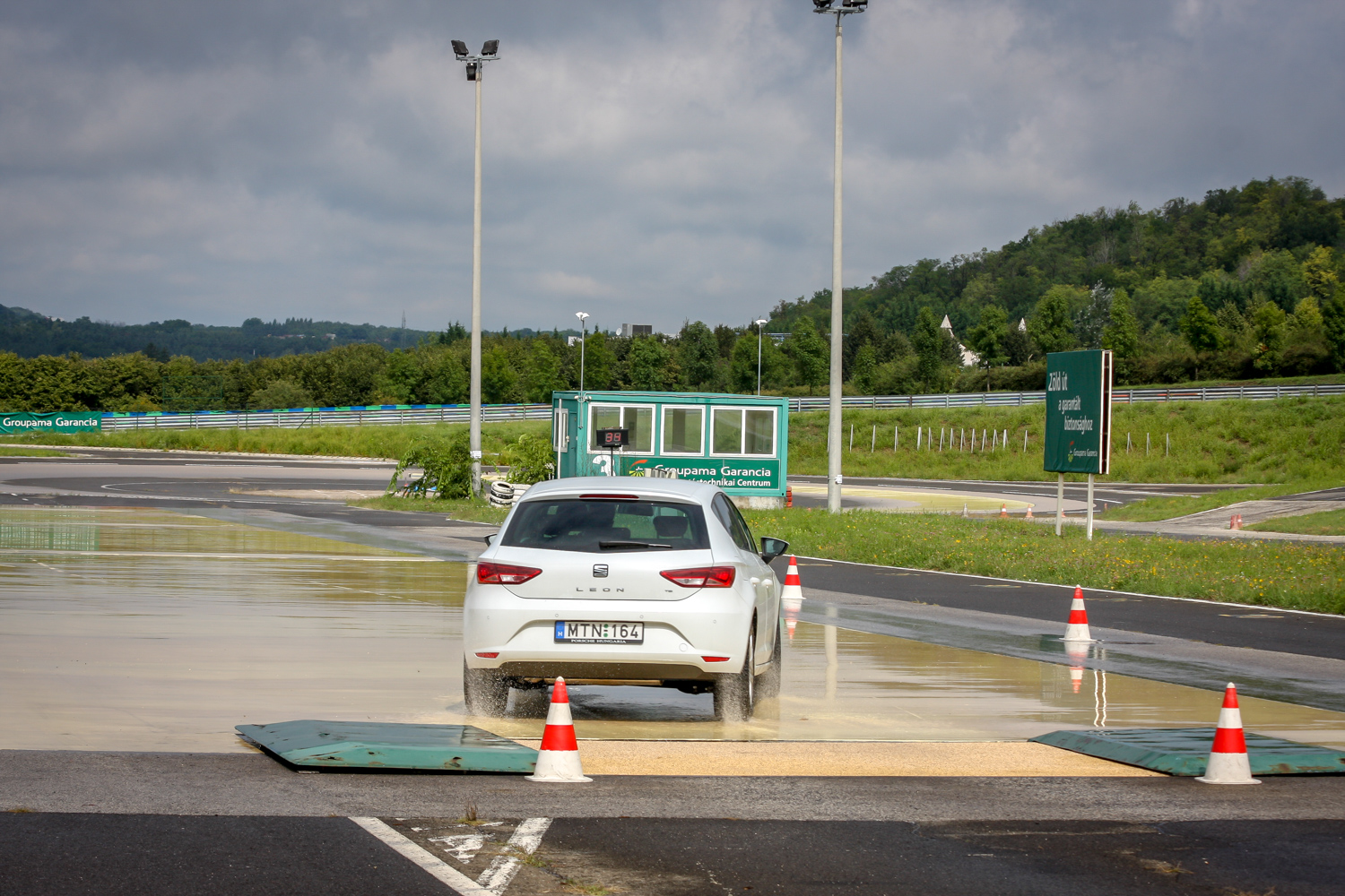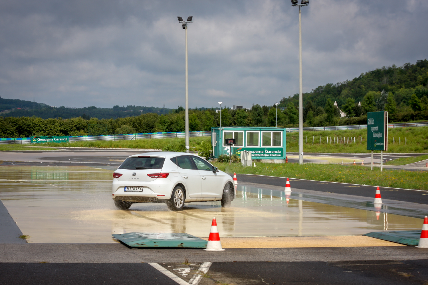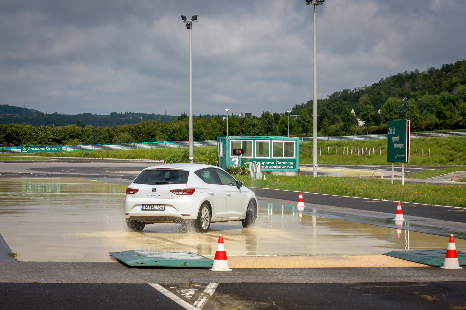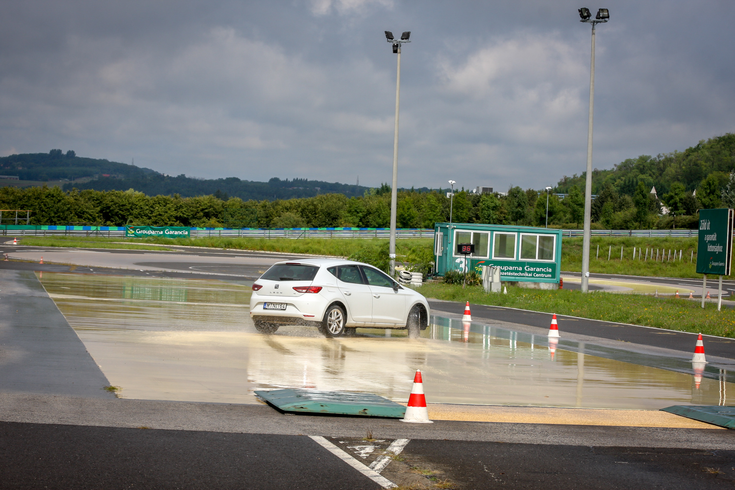 Szerintünk, és ez nem szabad, hogy királyi többes legyen, mindenkinek szüksége lenne folyamatos továbbképzésre. De alap, hogy az alapoknál kell kezdeni. És az oktatás nem mostanság fog gyökereiben változni. Pozitívan. És akkor mi lehet a helyes hozzáállás, a megoldás? Elmenni, megtanulni vezetni ott, ahol valóban értenek hozzá, ahol pótolják a „kifelejtett” ismereteket. Szemléltető történetünk pedig így festett: fogtunk egy friss jogosítványos, alig 18 éves vezetőt, elvittük a Groupama Garancia Vezetéstechnikai Centrumba, és Balázsunk a Tanpályán Kőrös András értő segítségével egy bő óra alatt többet, több hasznosat tanult, mint az azt megelőző esztendő folyamán. Ez egészen biztos. Nyilván az oskolában is felpakoltak rá némi elméleti tudást és gyakorlati tudnivalót is, de csak annyit, hogy a havas-jeges utat imitáló fellocsolt műgyantán legott kiderüljön: bár nem elveszett, mi több, tehetséges, ügyes, van érzéke az autóvezetéshez, stb., de neki is megvannak a tipikus „gyermekbetegségei”, amik a forgalomban bizony balesetbe torkollhatnának.
