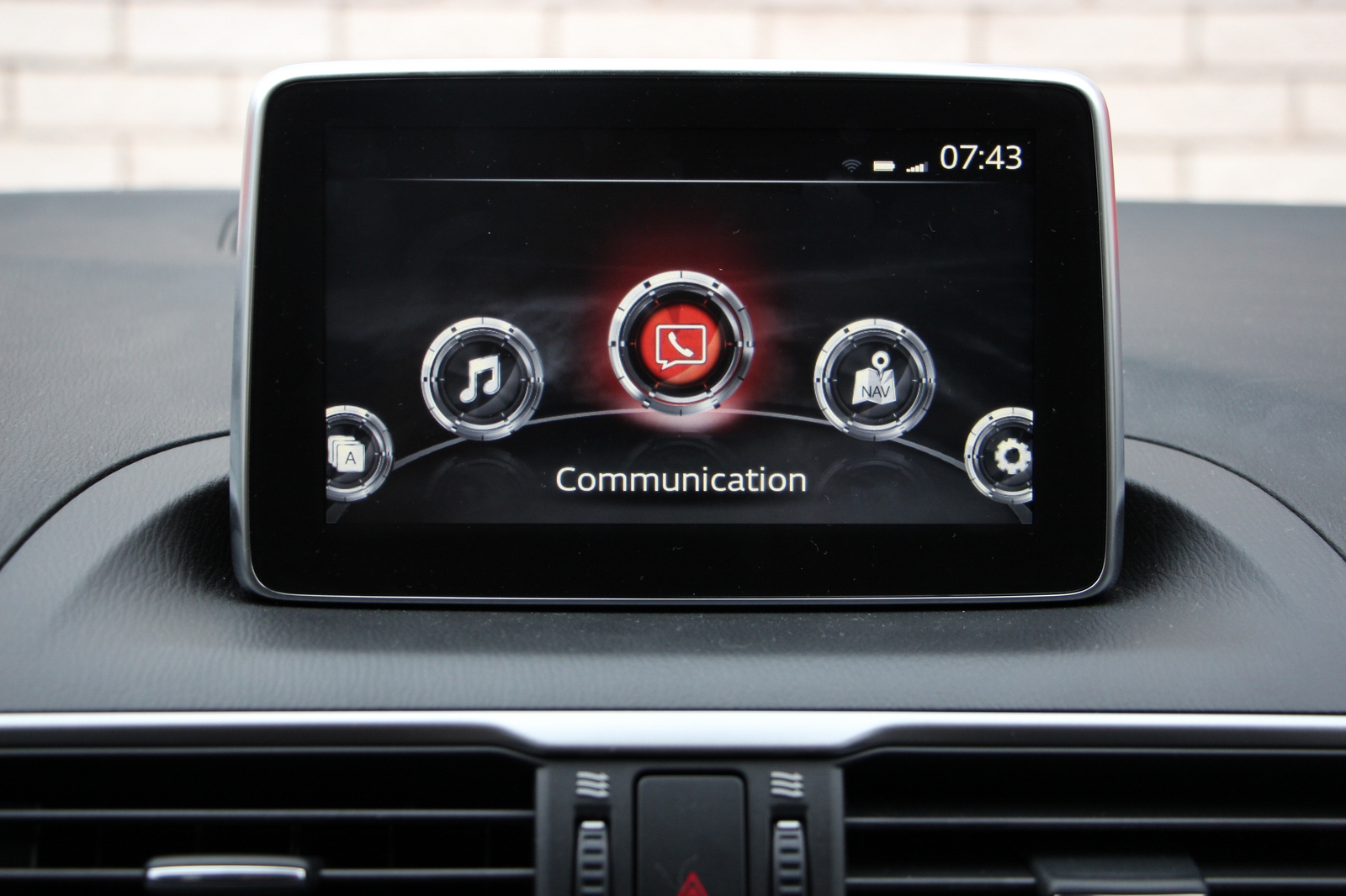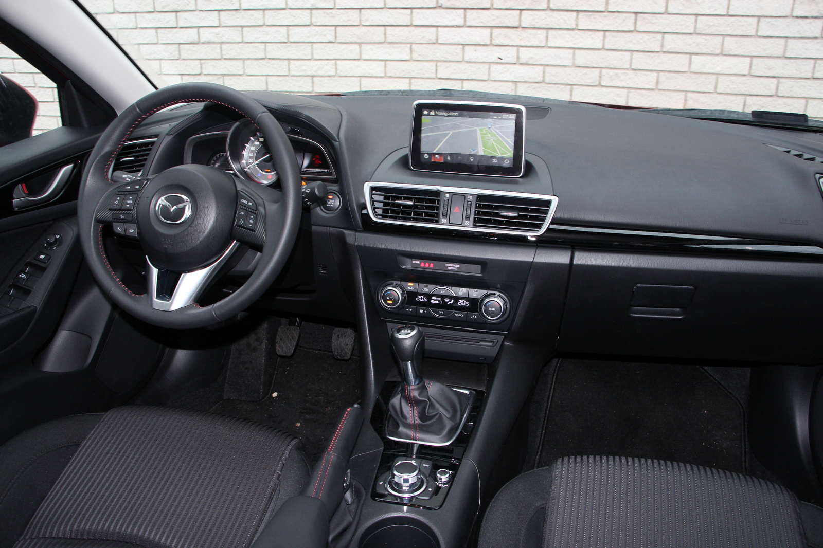 Lássuk egy kicsit a praktikus szempontokat is: elöl-hátul csak palacktartónyi ajtózsebek vannak, ami akár kedvezően is felfogható: nem fogunk mindenféle vackot az autóban felejteni. A műszerfal és az első ajtók teteje prémiumosan puha plasztik, az analóg mutatós, de amúgy teljes egészében digitális műszerblokk jópofa, a szórakoztató-központ pedig zseniális: érintőképernyős és iDrive-szerű vezérlővel, meg néhány dedikált gombbal irányítható. Menüje könnyedén átlátható, telefont csatlakoztatni hozzá nem ördöngösség, a dizájn szép, a 139 000 forintos navigáció pedig iGO alapú, azaz magyar fejlesztés. Büszkék lehetünk rá, s kiválóan is működik. Ennyi pénzért profi gyári rendszert rendelni erőteljesen ajánlott! A hifi Bluetooth-kapcsolattal, 2 (!) USB-csatlakozóról, vagy akár még CD-ről is játszhatja a muzsikát. Ahhoz képest, hogy az autóban az alap hifi volt, nem is rossz minőségben. Talán kis hiba, hogy a könyöklő előrefelé keskenyedő, viszont így is használható. A csomagtér 364 literével nem tűnik nagynak, valójában pedig az. Talán a Mazda őszintébben mér, mint mások, például fölös padlórekesz nincs nagyon.
