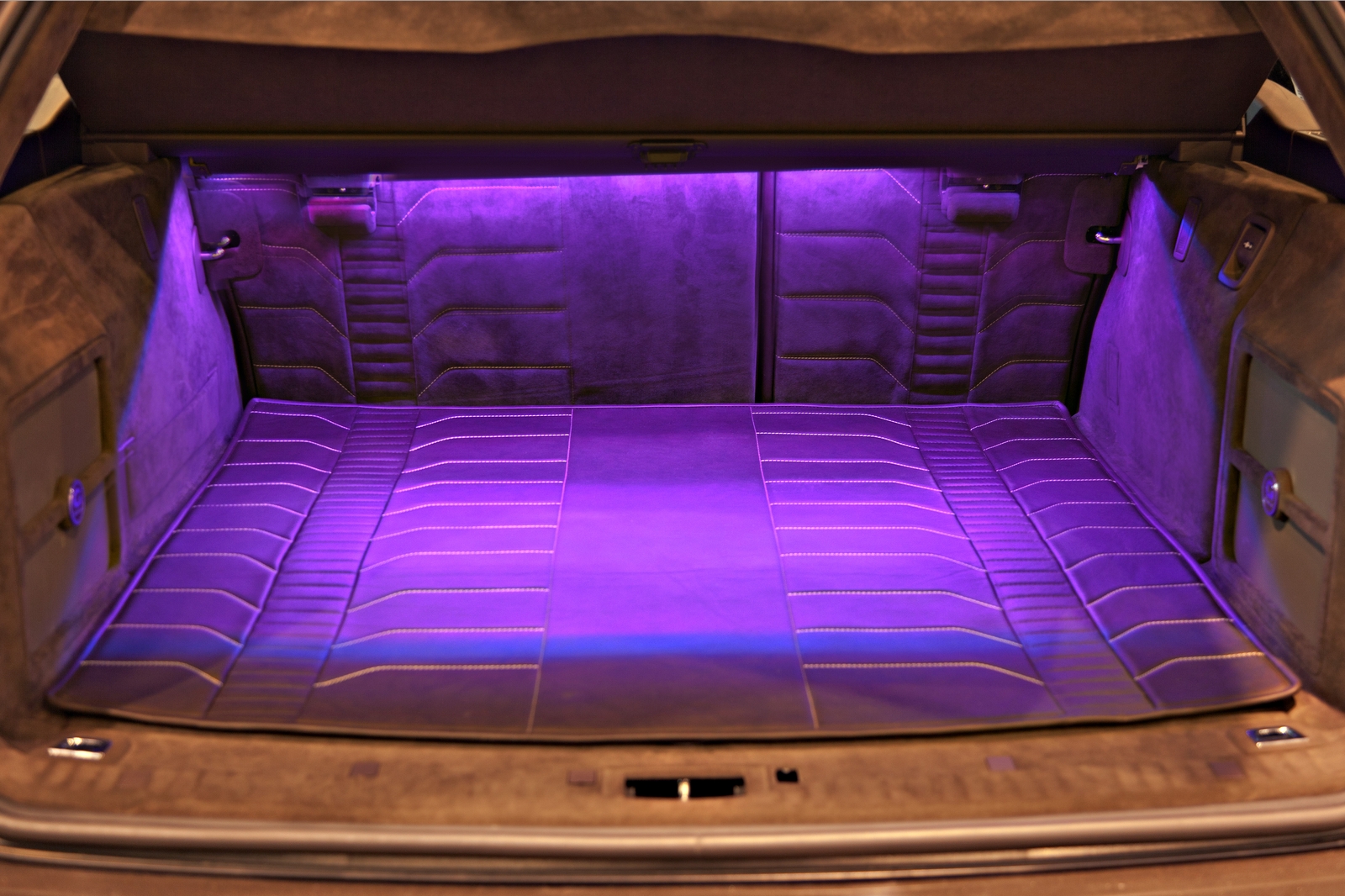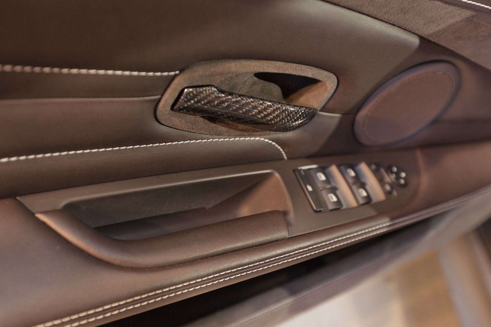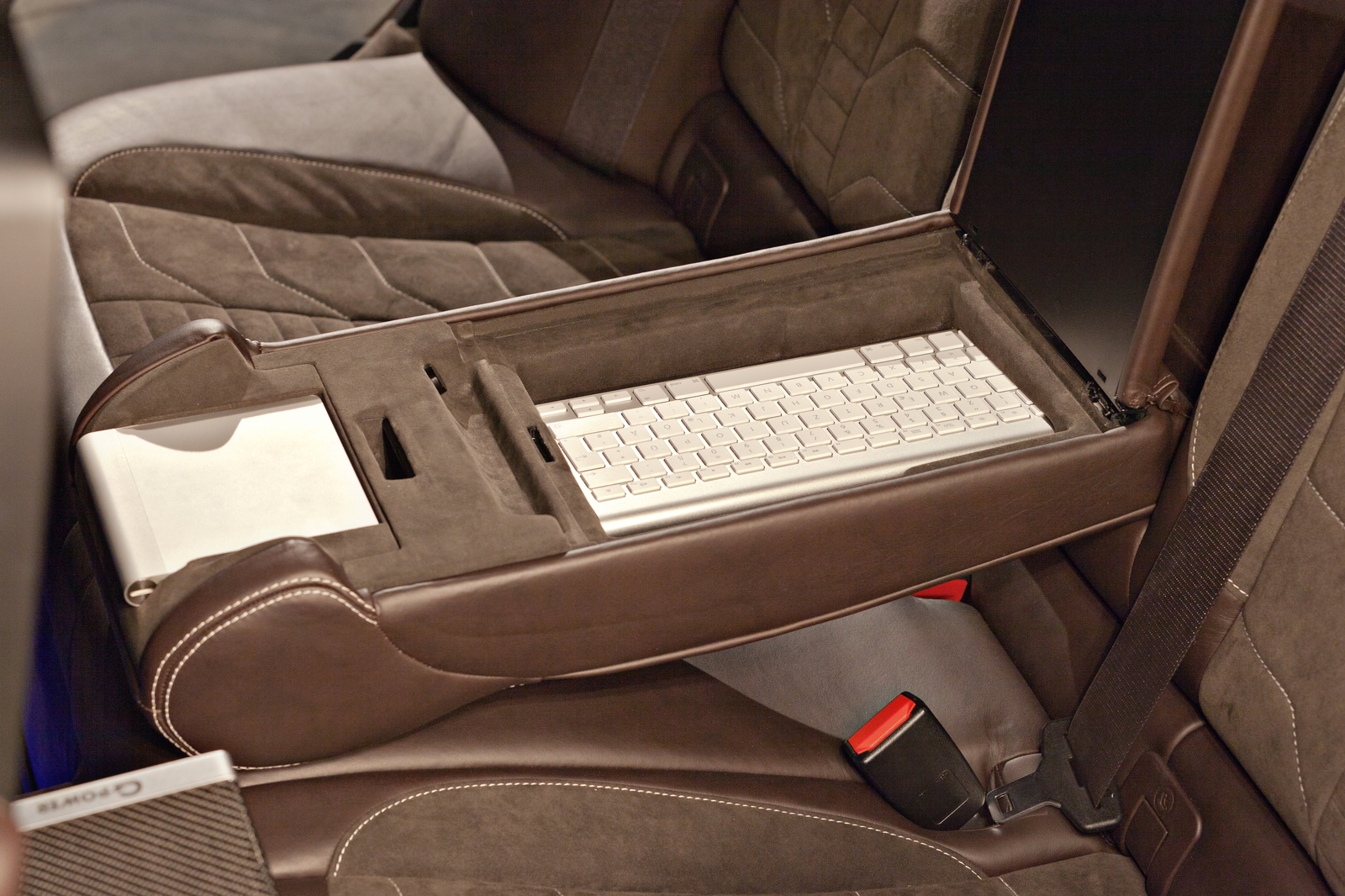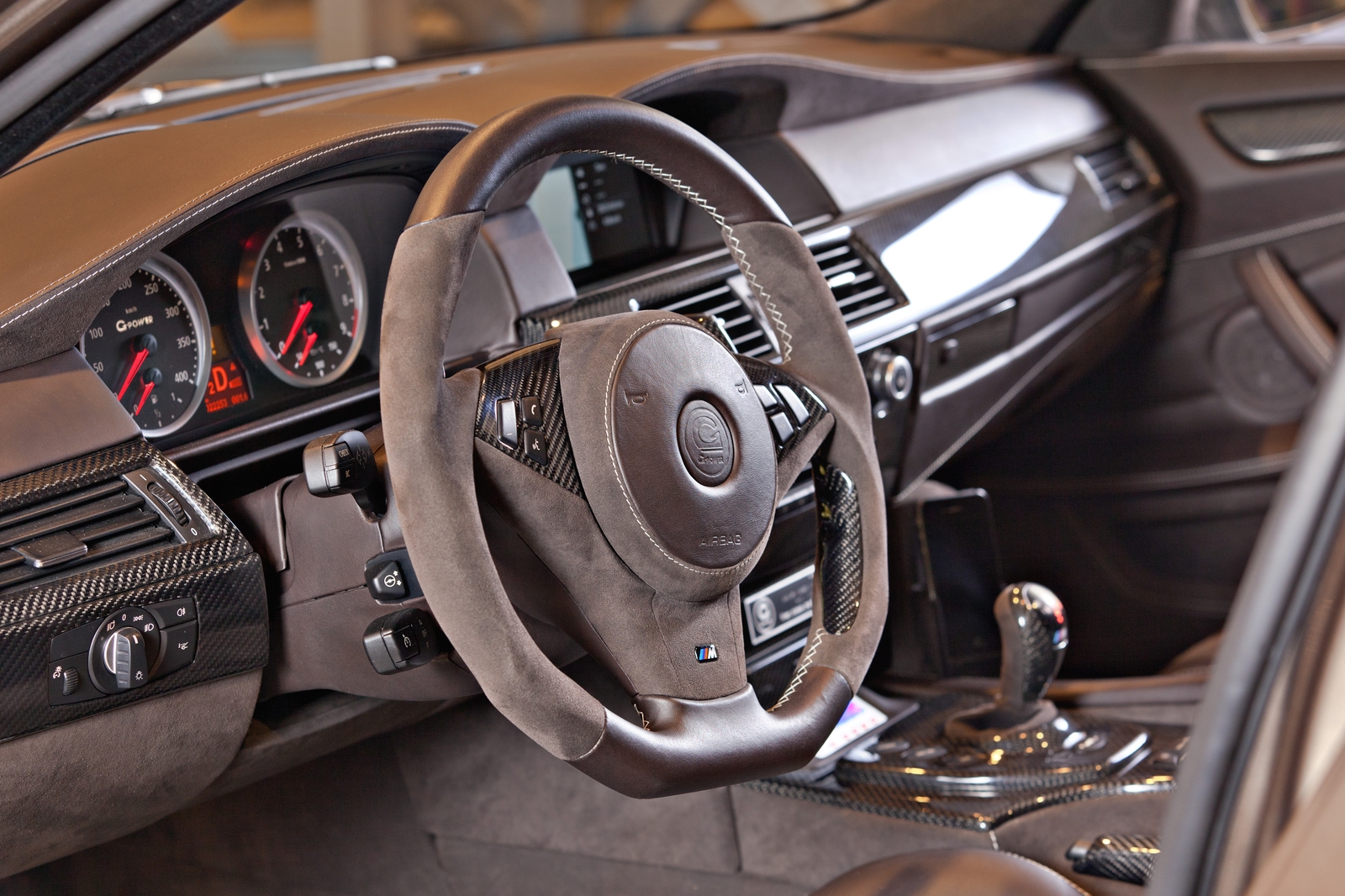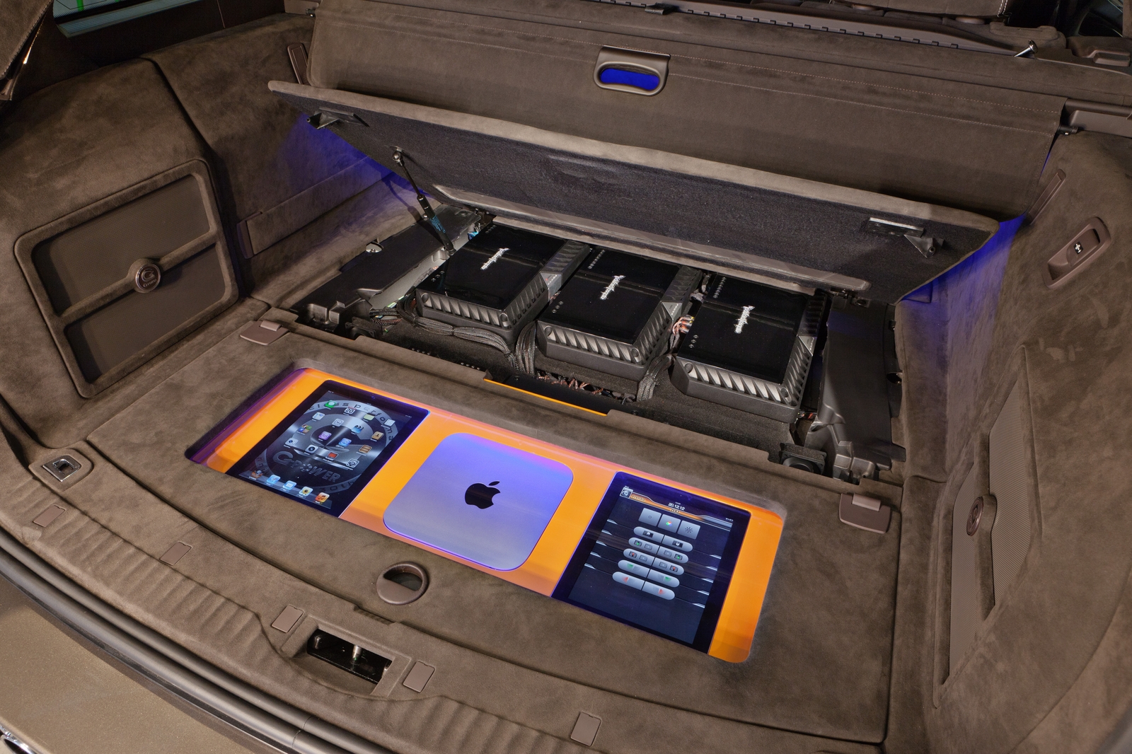 Az utastér a karbonszálas betétek mellé Alcantara kárpitozást, iPhone integrációt, hátra két kisebb és egy tetőből lehajtható, iMac számítógépre kötött óriási monitort kapott vezeték nélküli billentyűzetekkel. Ha esetleg nem lenne elég nyomkodni való, a csomagtér erősítőket is rejtő padlójában van még két iPad, az utastér összes elektronikája és világítása is ezen készülékekről, a G-Power saját alkalmazásával (is) vezérelhető.