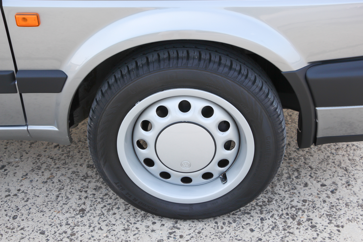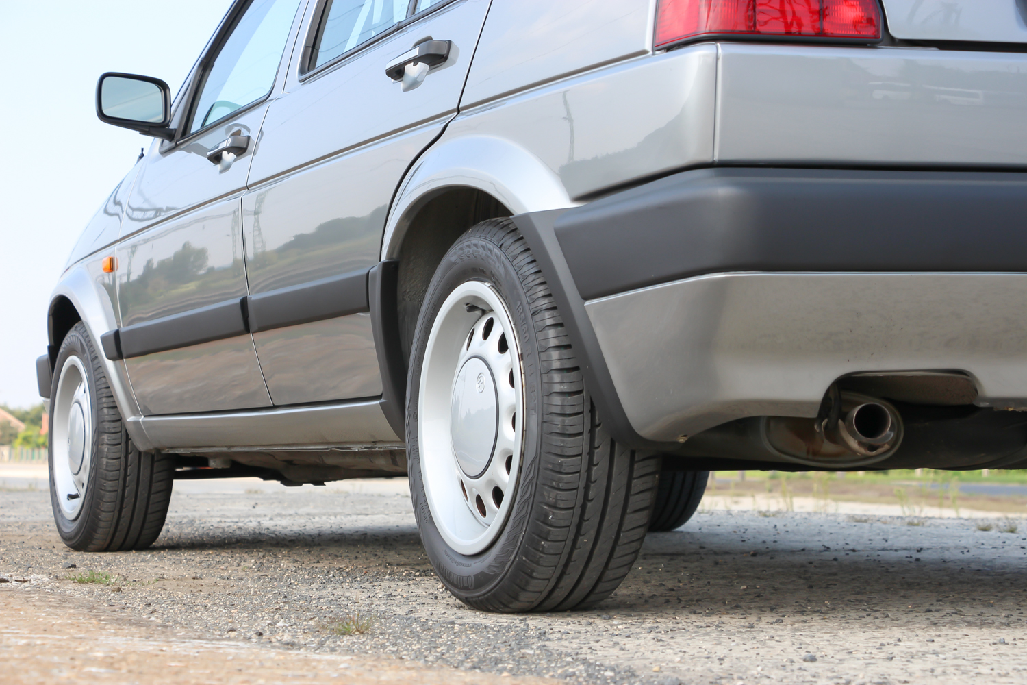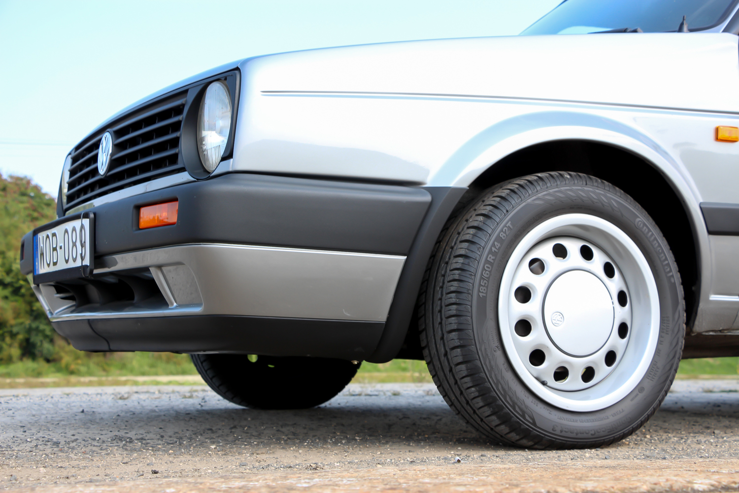 A nagy műanyag-lökhárítókkal és a 14 colos, díszperemes, de nem teljes dísztárcsás felnikkel néz ki szerintem a legjobban a kettes Golf