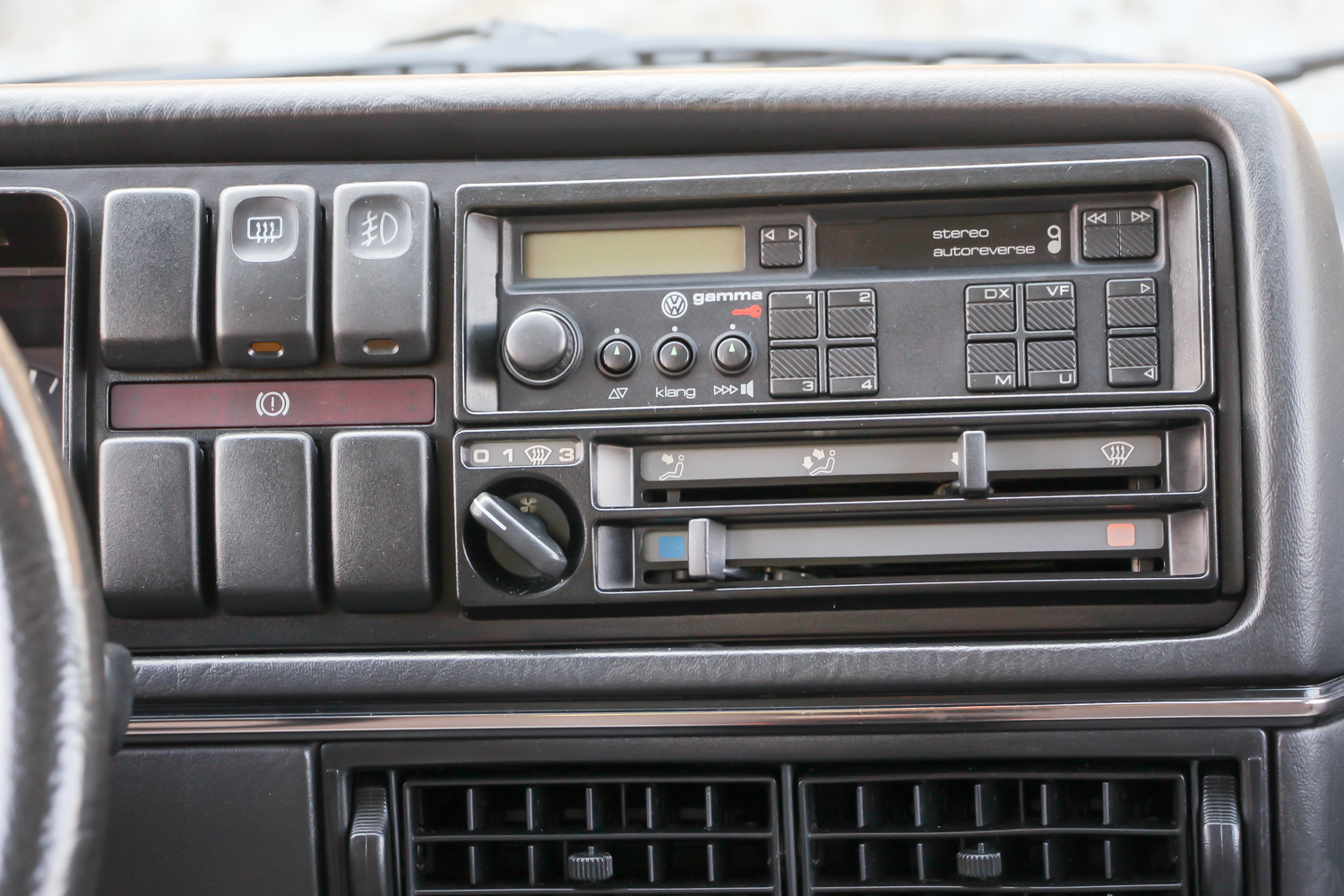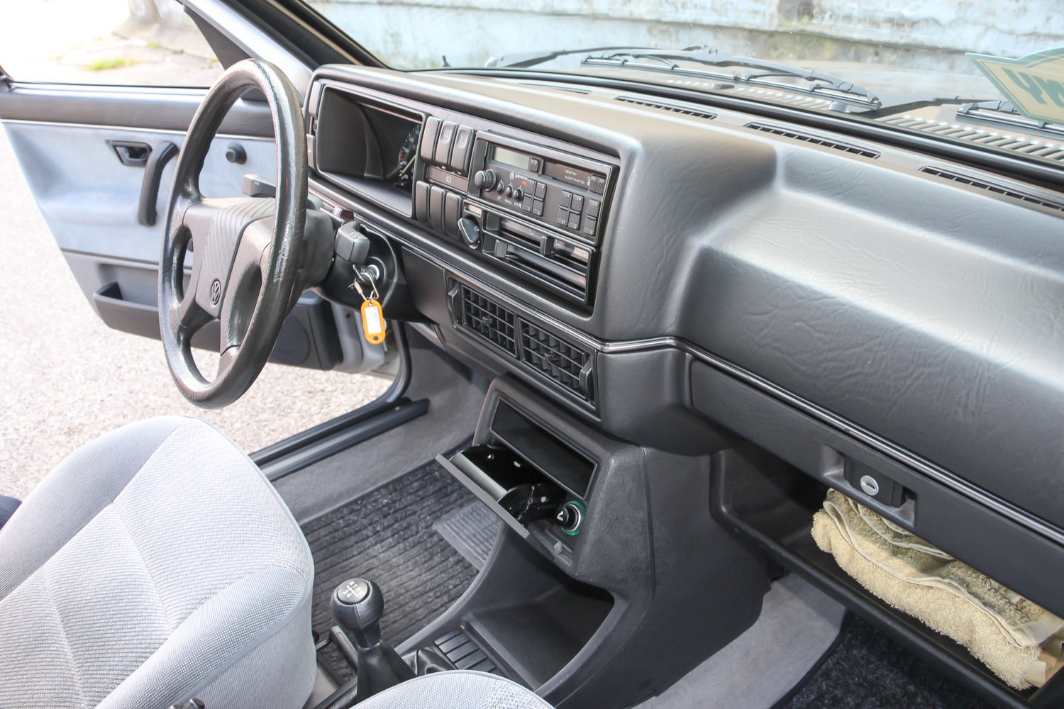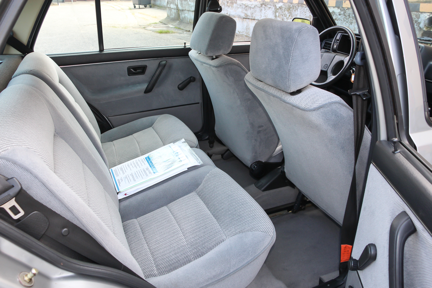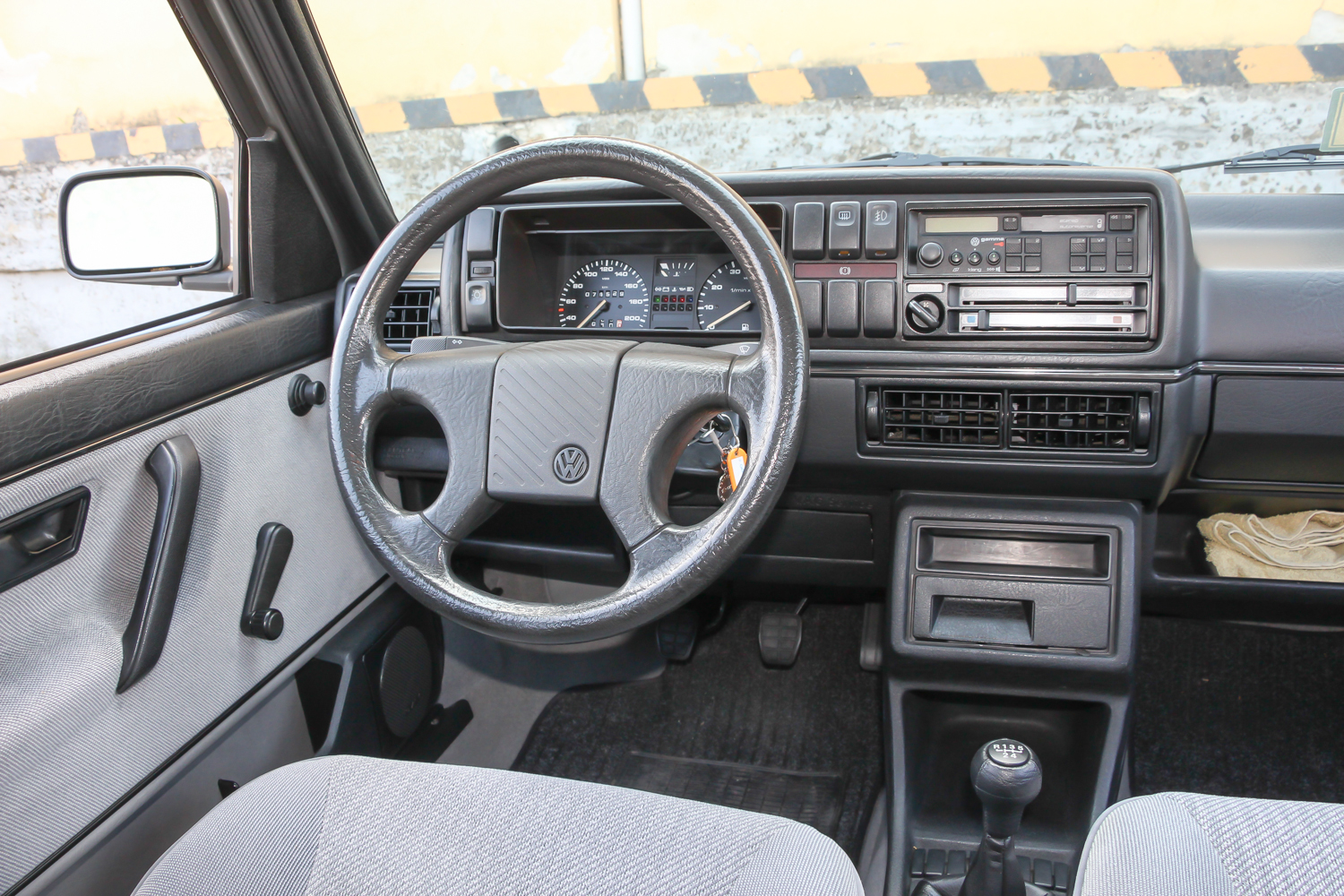 A középszürke kettes meg kicsit méltatlanul árválkodott, pedig ritka szép állapotban van. Kollégám és én nem bántuk, hogy kiszorultunk a Transporterből. Igaz, nekik egy Ford Escort, nekünk egy Opel Kadett jelentette anno a nagybetűs, bűvös, első nyugati autót, mégis hamar megvolt a lelki szál a kettes Golffal. Nem volt nehéz az ismerkedés, a finom tweed mintás szürke kárpitozású utastérben rögtön elfogott egyfajta jóleső otthonosság. Gyerekkoromban ültem utoljára kettes Golfban, német családi barátaink jöttek ilyennel Budapestre, de ebben akkoriban még semmi különleges nem volt.