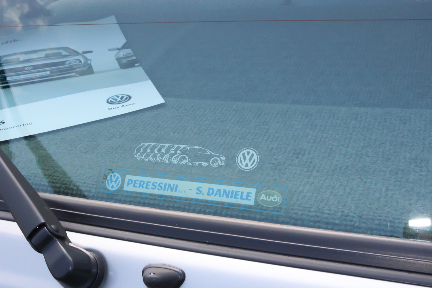 Gyári tartozékkatalógus, eredeti eüláda és a ma is működő olasz Peressini VW kereskedés matricája