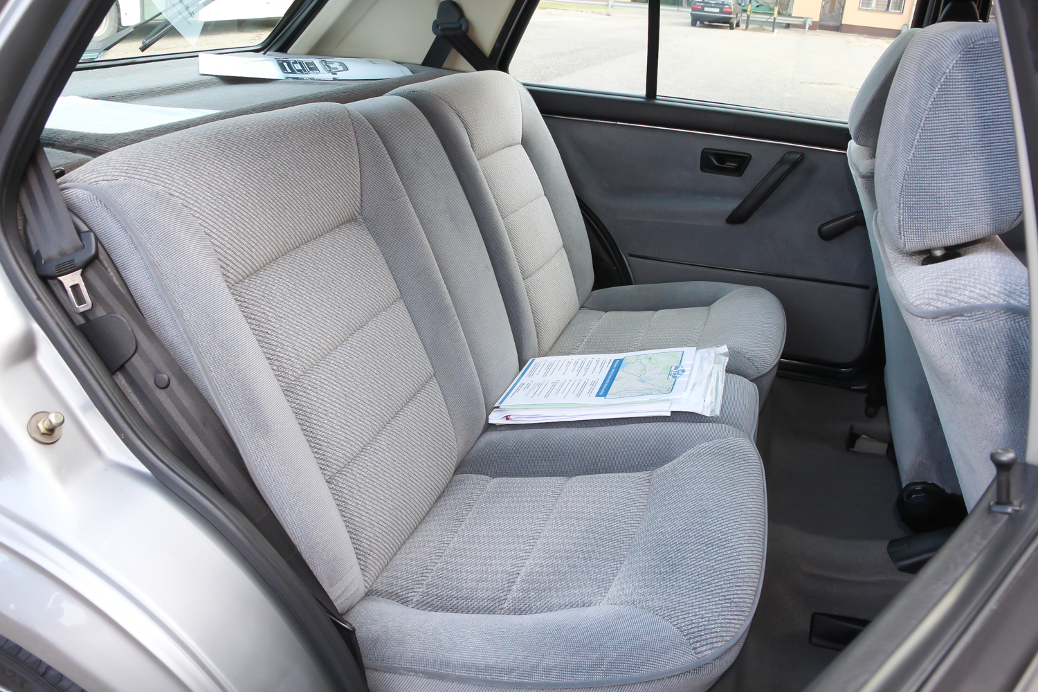 A négyküllős kormány a GL sajátja, ahogy a finom, szürke kárpit is. A kocka műszerfal régiesnek hat, nem túl ergonomikus