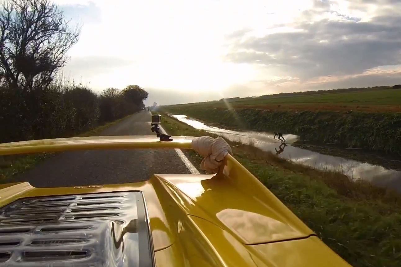 Vannak azok a videók, amelyekben mindenféle autók húznak síelőt, snowboardost, vagy wakeboardost. Azok elég öncélúak, veszélyesek, és nem is viccesek. Na de ez, ez más. Ez is öncélú, ez sem veszélytelen, de legalább az egyik legegzotikusabb Ferrarit láthatjuk benne. Az F50-es arról híres, hogy vele ünnepelte50 éves fennállását a gyár . Forma-1-es technikát hord, került bele alumínium, magnézium, titán és szénszálas erősítésű műanyag is. Motorja 4,7 literes V12-es, 65 fokos hengerszöggel. A teljesítménye ma már nem is annyira meghökkentő: 520 lóerő és 470 Nm nyomaték lapul benne, de 1996-ban ezek a számok még egy ilyen célgépben is durván vadítóak voltak.[BANNER type="1"]
