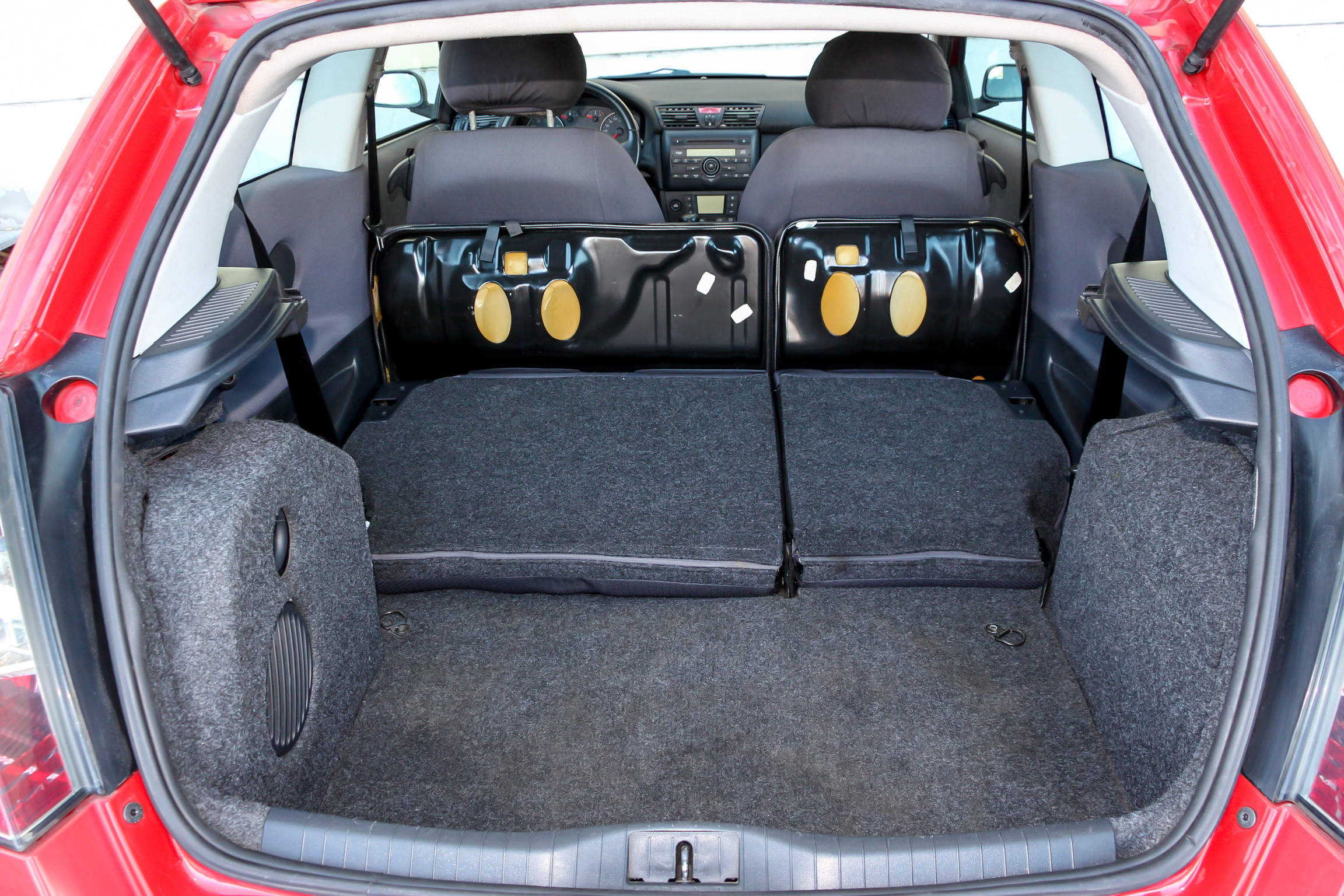 Mélynyomós, kicsit magas peremű, a kategória átlagától kevéssel elmaradó, de azért alapból sem kicsi (305 literes), osztott üléshajtással sík padlóval bővíthető a csomagtér