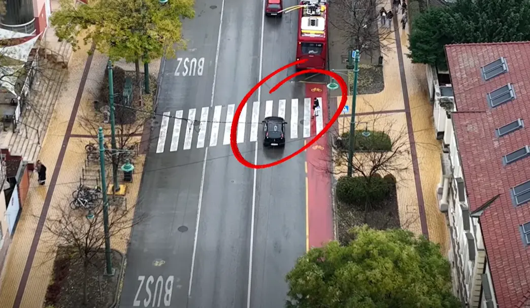 Szeged belvárosában küldték fel ezúttal a rendőrségi drónt, amely több szabálytalanságot is lefülelt. Mind közül egyértelműen a legsúlyosabb a videó első harmadában látható eset, ugyanis a sofőr nem adta meg a gyalogosnak az elsőbbséget a zebrán. Szintén büntették annak a kishaszongépjárműnek a vezetőjét, amely a kijelölt biciklisávban állt meg, ráadásul néhány méterrel a gyalogos-átkelőhely előtt, ezért annak egyik vége beláthatatlanná vált az autósok számára. A közzétett videó harmadik jelenete viszont kivételesen pozitív magatartást mutat be, hiszen az érkező gépkocsi vezetője megadta az elsőbbséget az ugyancsak zebrán átkelő gyalogosoknak. Arról, hogy pontosan milyen bírságot szabtak ki a szabálytalankodókkal szemben, a rendőrség nem közölt információkat.