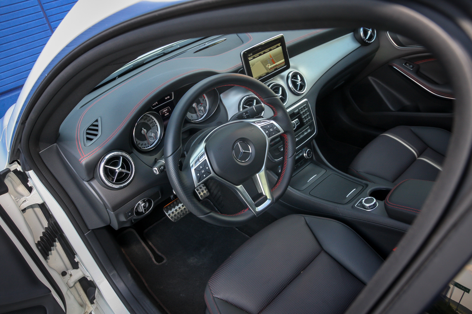 Az integrált fejtámlás kagylóülés kellően mélyre engedhető, a lapított aljú kormányra öröm rámarkolni. Fémesek a dekorok, fémesek a pedálok, mini váltófülek bújnak a volán mögött – sokat sejtető a hangulat. A száraz számadatok is fokozzák az izgalmat, mert a 2,0 literes, közvetlen befecskendezéses, változó szelepvezérléses turbómotor 211 lóereje, a már 1200-as percenkénti fordulaton ébredő 350 Nm-es nyomaték, a 240 km/órás végsebesség és a 6,7 másodperces 100-as sprintidő is tiszteletet parancsoló értékek. A gyorsulás összkerékhajtással különben egy tizeddel lehet jobb – a 45 AMG csúcsmodell esetében széria 4Matic rendszer 380 ezer forintos, relatíve szerény felárral dízelmotorhoz (még) nincs, csak ehhez a 250-eshez rendelhető.