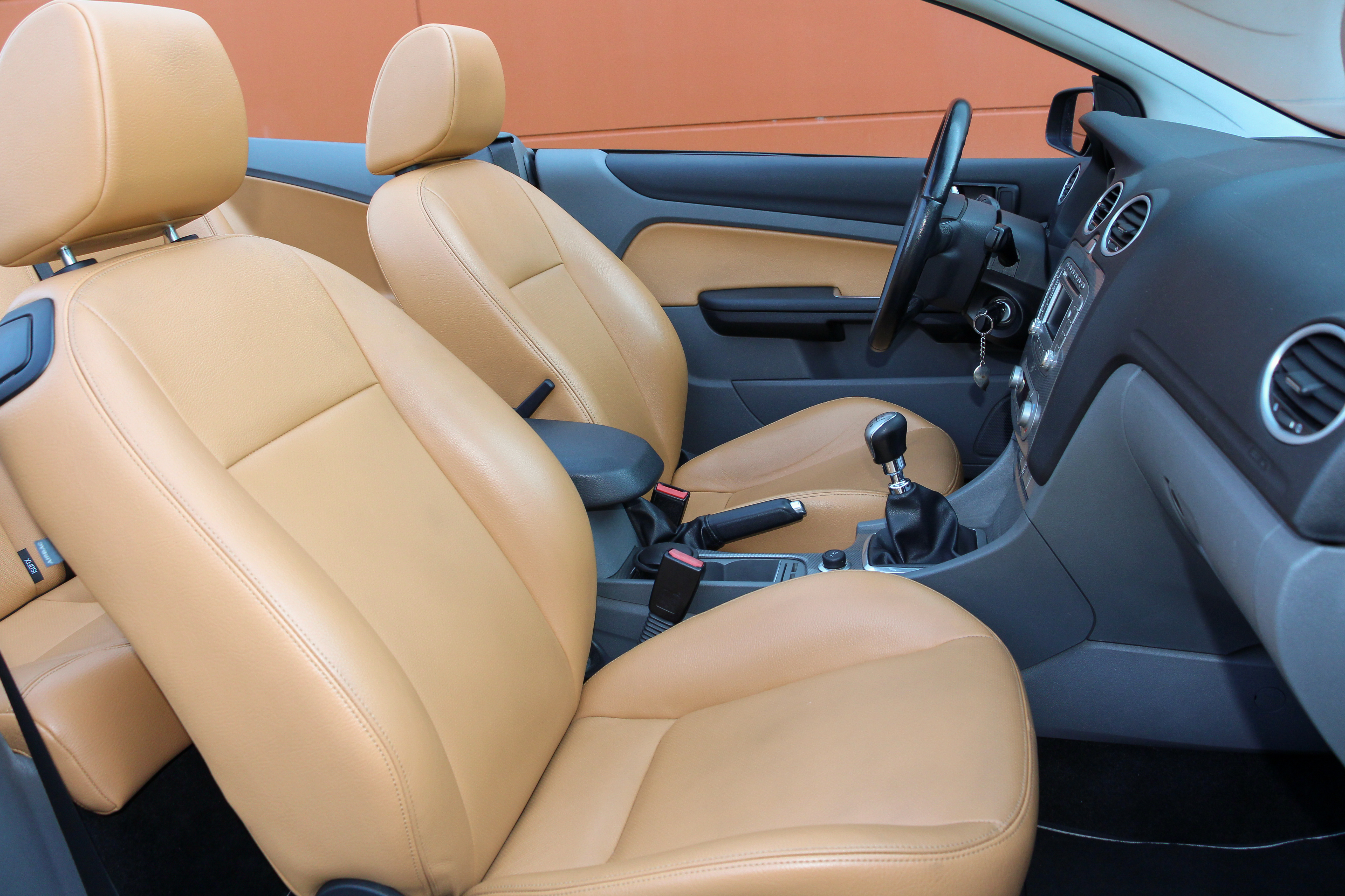 Ez igen! A Focus mogyoróbarna bőrkárpitja 205 ezer kilométer után is újszerű,az ülések kényelmesek, elöl fűthetők, a sofőré sincs kiülve