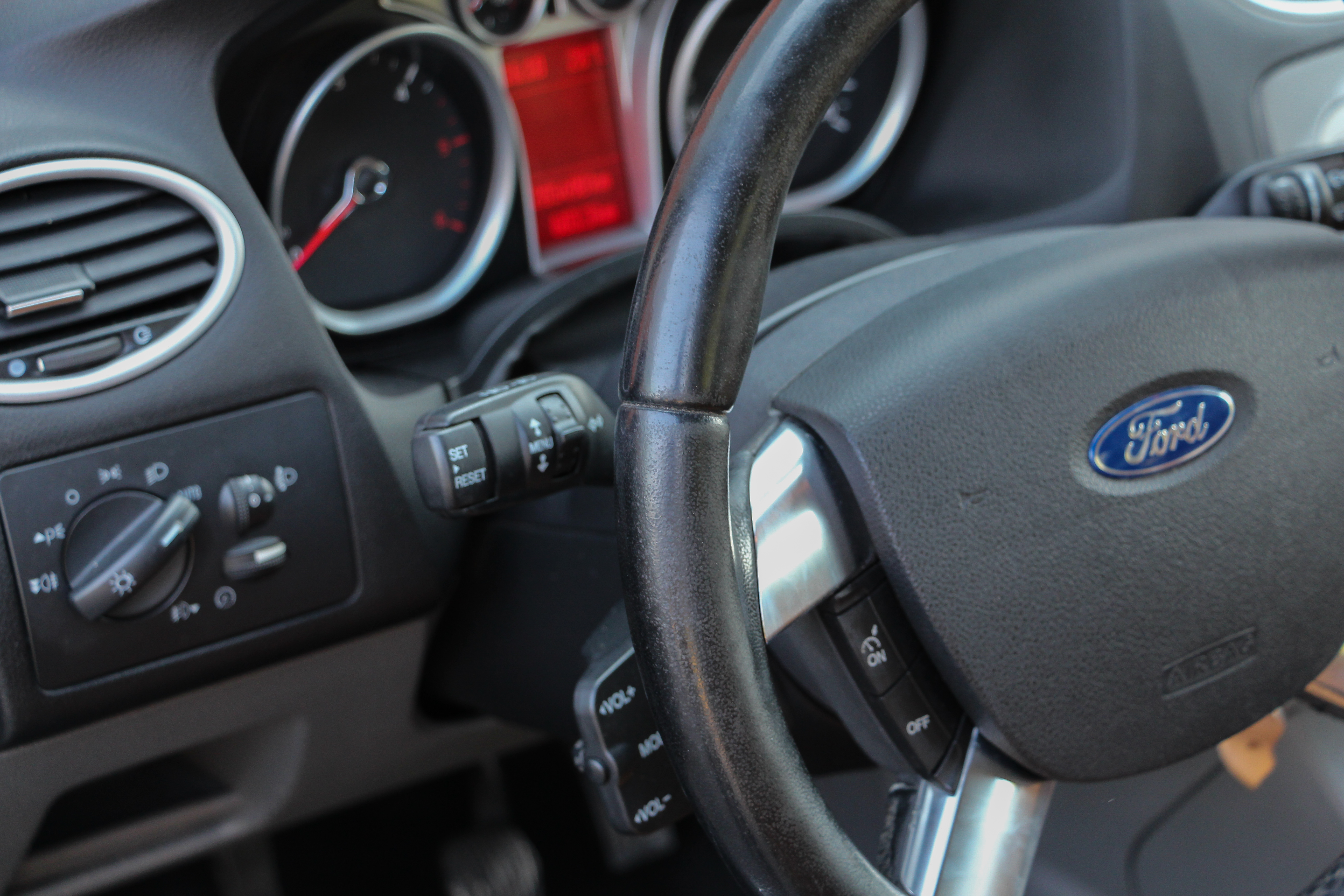 Közös pont az is, hogy a szériák jól felszerelt tagjai. A Focus esetén ez a Titanium szintet jelenti, nagyon gusztusos, és meglepő módon 200 ezer kilométer feletti futással is újszerű mogyoróbarna bőrkárpittal. A kormánykerék bőrhuzata is alig kopott, hibátlan a zömében puha plasztikból épülő műszerfal, s az ellátmány is több mint nagyvonalú. Van tempomat, automata fényszóró, tolatóradar, ülés- és a Ford-sajátosság szélvédőfűtés, kétzónás az automata klíma, 6 hangszórós a hifi, SD-kártyás (jelenleg hazánkat csak városszinten ismerő) a navigáció, de a lényeg és a meglepő tényleg inkább az, hogy 6 évesen, 205 ezer kilométerrel újszerű a beltér. Mostani tulajdonosa bő 10 ezer kilométert használta már az autót, túl van egy hazai kötelező szervizen, minden hibátlanul működik, de úgy tűnik, ráunt. Feltehető a kérdés, hogy a fenébe, amikor a mogyoróbarna, makulátlan utastér tényleg hívogató, van szélfogóháló, s a négyüléses utastér – persze szűk hátsó lábtérrel – egészen használható is. Ráadásul a 2.0 TDCi városi fogyasztása sem megy 7 liter fölé, országúton autózva a gyári 5,0 literes vegyes érték is simán hozható, autópályán a kettő között lehet autózni vele.