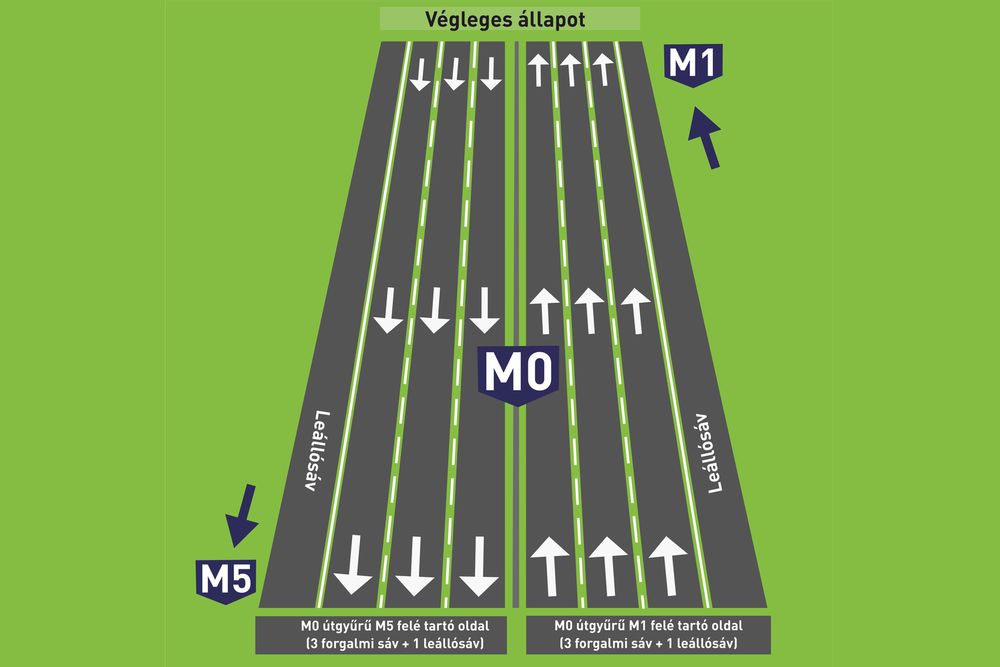 A tervezett ütemezés szerint a munkálatok legkorábban 2017-ben kezdődhetnének meg. A Nemzeti Fejlesztési Minisztérium korábbi tájékoztatása szerint az M0-s Magyarország legnagyobb igénybevételnek kitett gyorsforgalmi útja, amelyen a tranzitforgalom szinte teljes egészében áthalad, és amelyet az országon belüli forgalom jelentős része is érint. Áteresztőképességének növelése ezért meghatározó eleme lehet a közlekedési feltételek javításának, a versenyképesség fokozásának.