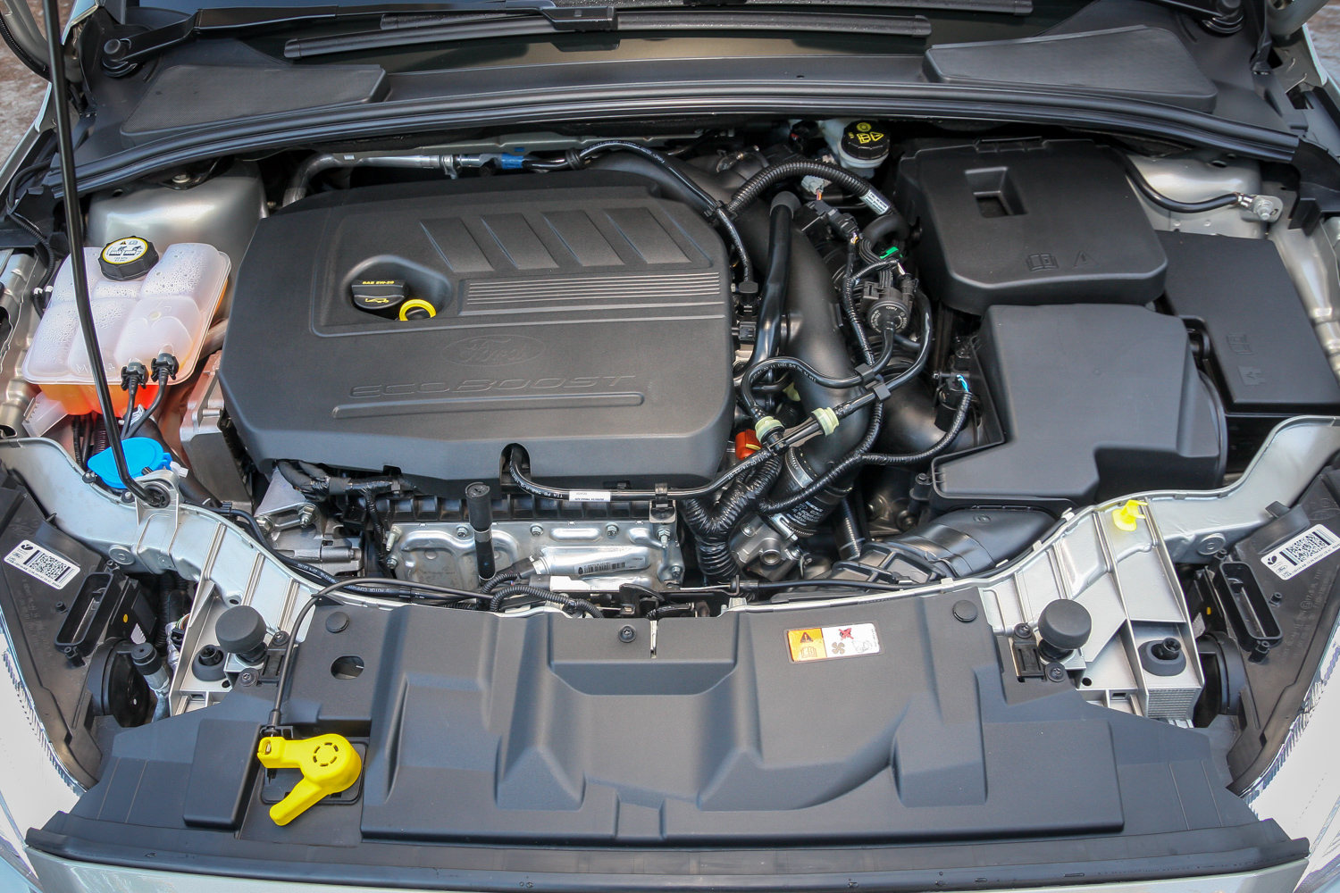 Na de akkor most jöjjenek a motorok. A downsizing downsizingja. Mert az 1.6-osokat 1.5-ösök nyugdíjazzák. Csökkent a fogyasztás, a károsanyag-kibocsátás is a béka seggét karcolja. Papíron. És Euro 6-osan. Kár, hogy az 1.5-ös dízeleket nem tudtuk kipróbálni, de talán majd egy későbbi teszt bizonyíthatja, hogy megérte eurótízmilliókat feccölni a váltásba. Előbb a 120 lovas lesz kapható, utána a 95-ös. Adatok a táblázatban (ahol jelzésértékkel az ötajtós változat értékeit tüntettük fel, de a szedáné meg a kombié is hasonló), azonban így folyószövegesen is rögzítsük, hogy a 3 hengeres EcoBoost nem nálunk, de roppant kedvelt, hiszen minden harmadik Focust az 1,0 literes motorkával adják el. Viszont az 1.6 EcoBoost ment a levesbe, érkezett a helyére 1.5 EcoBoost szintén 4 hengerrel, turbóval, 150-182 lóerővel, megfelelő dinamikával. Az erősebbiket vezethettük. Odapörkölve bekapta a maga tízesét, egy nyugodtabb menet során 6,5 liter benzinnel is elketyegett. Kulturált, nyomatékos darab szuper 6-os váltóval, gyors stop-starttal. Jövőre valamikor Powershift automata is lesz hozzá akár kormány mögüli kapcsolhatósággal. Az 1.0 EcoBoost is kap majd Powershiftet. Mi az, hogy EcoBoost? Turbó, nagynyomású közvetlen befecskendezés, kettős változó szelepvezérlés, alumínium motorblokk, optimalizált égéstér. És intelligens regeneratív töltés a mozgási és a fékenergiát hasznosítva. Röviden ennyi.