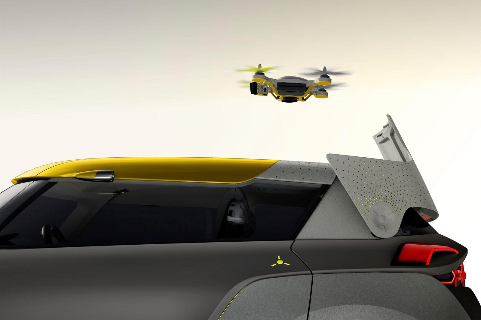 Rövid túlnyúlások, kettő darab felfelé nyíló ajtó, jelentős hasmagasság, malomkerekek bütykös terepgumikkal, buggy-fíling, színes, vidám egyéniség – tuti népszerű lenne, ha megvalósulna (ha némileg egyszerűbben, olcsóbban is). A tető nyitható része alól előbukkanó drón meg programozhatóan pásztázza az utat, küldi az útinfókat a központi tabletre, de fényképezgetni, kamerázni is tud, mert miért ne.