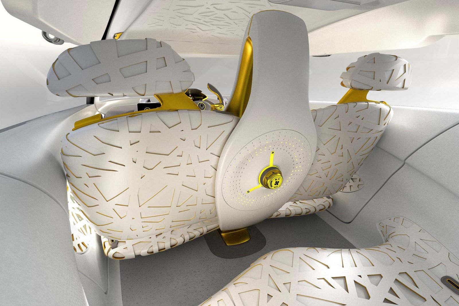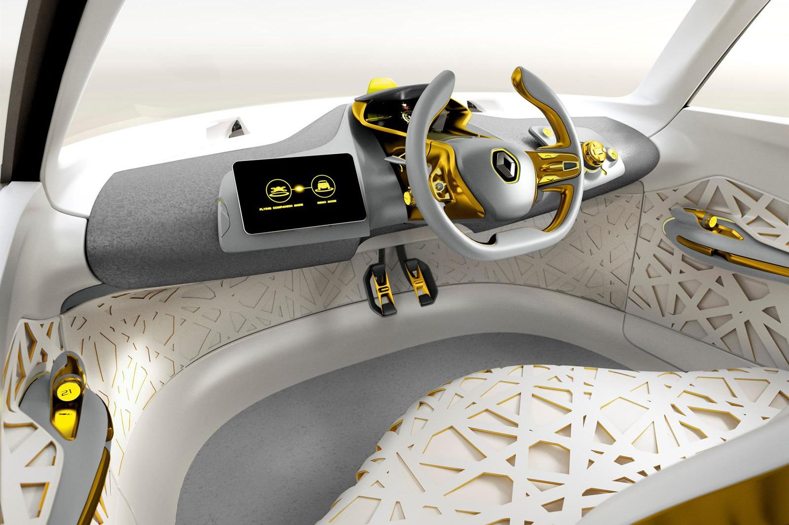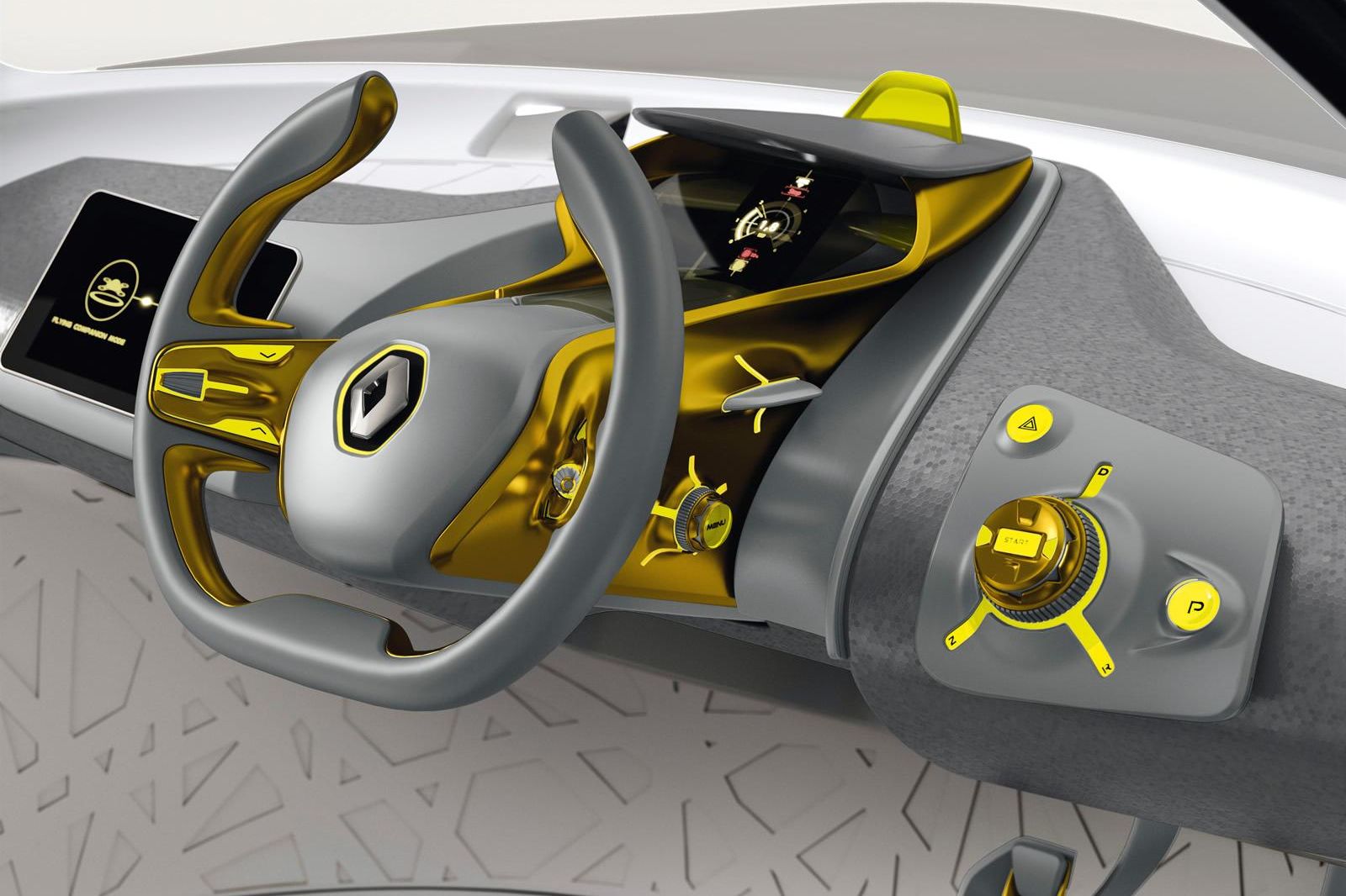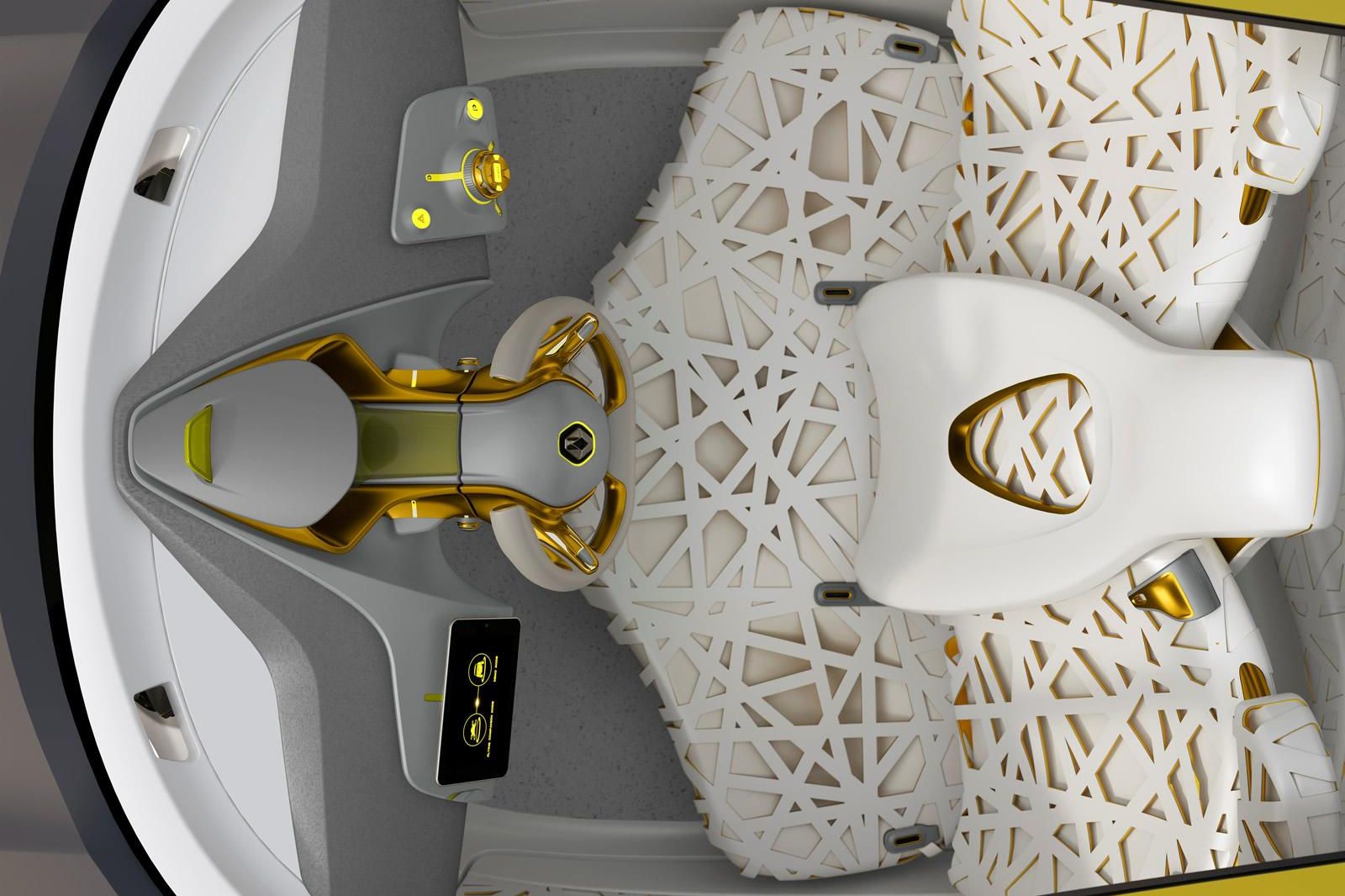 Elöl elvileg hárman üldögélhetnének a szíjakon, a sofőr középen. Hátra is beférhetne még két utas a vagány, de annál kényelmetlenebbnek tűnő padra. Motorfronton 1.2 TCe benzinest említ a sajtóanyag EDC dupla kuplungos automata váltóval és szimpla fronthajtással (á la Captur), de nem zár ki egy Z.E. elektromos verziót sem