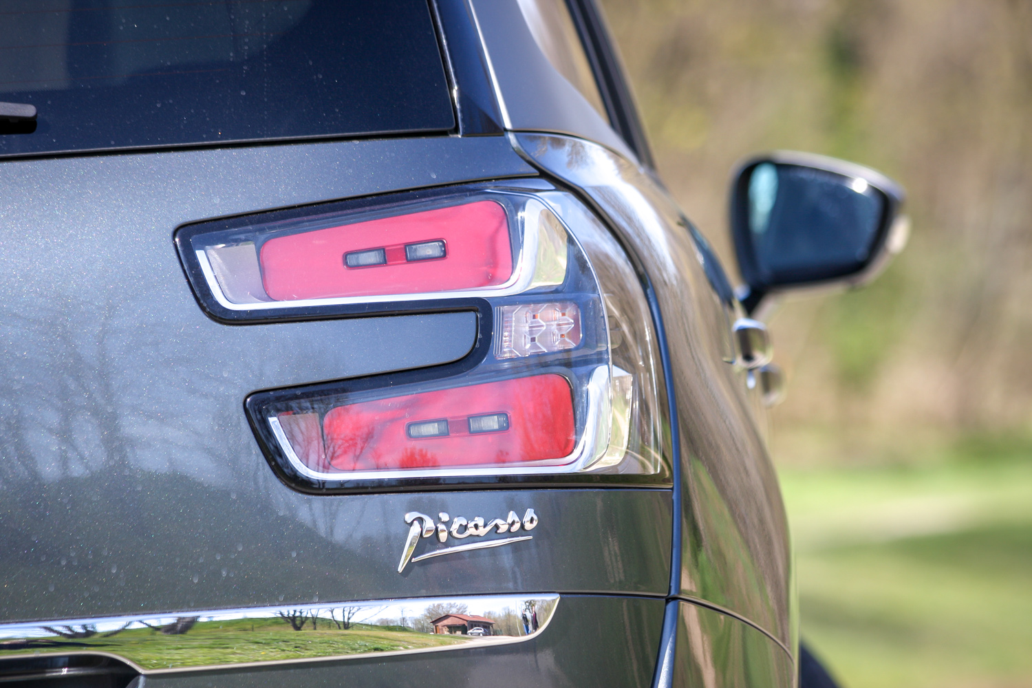 A hátsó lámpa háromdimenziós LED-es, vagány. Az A-tól a D-oszlopig végigfutó szürke műanyagbetét is az. A C4 Picasso/Grand C4 Picasso páros ugyanarra az EMP2-es padlóra épült, mint az Év Autója 2014 díjas Peugeot 308