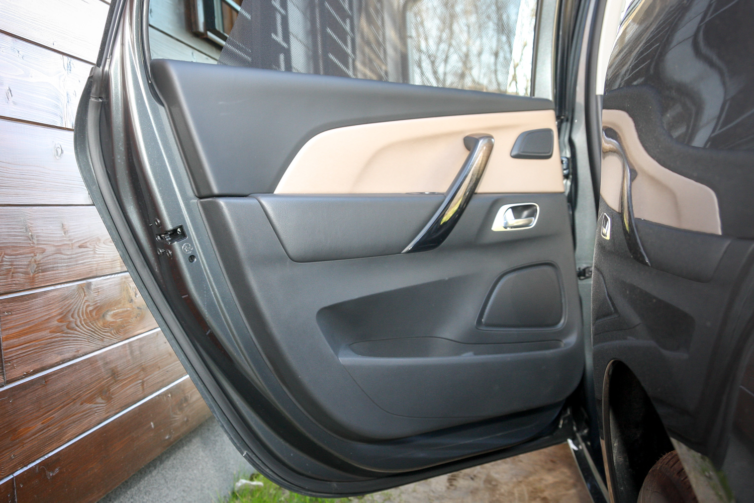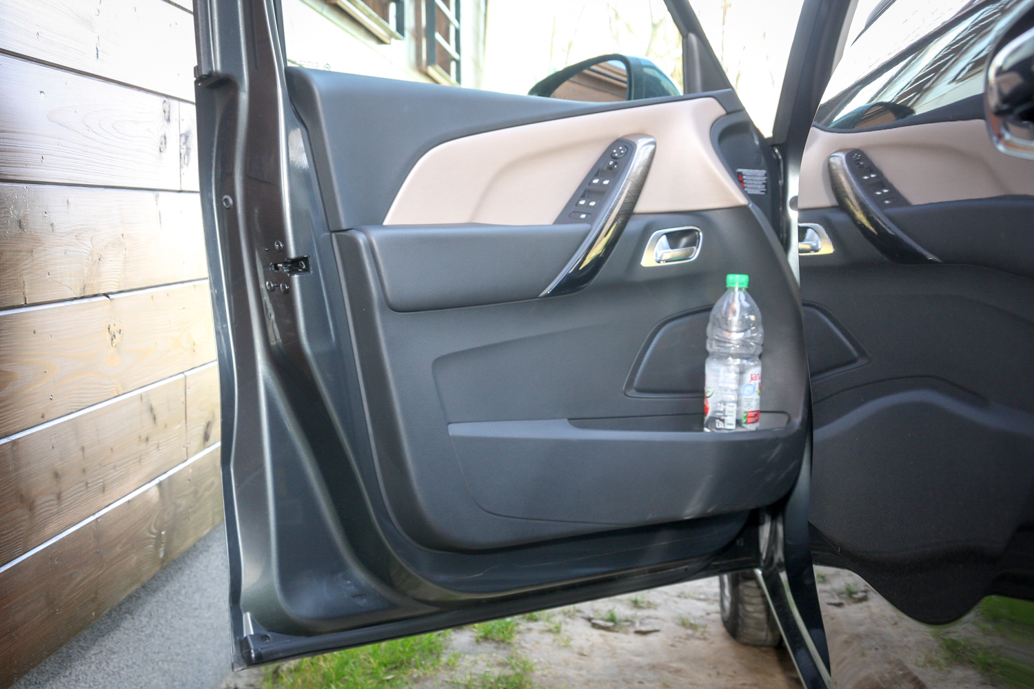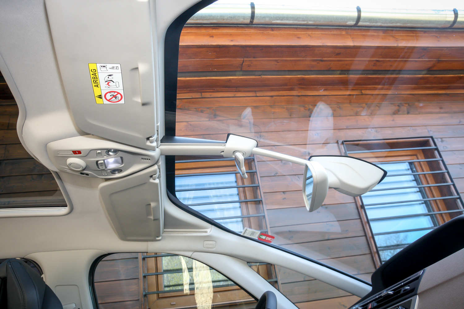 Az elhúzható napellenzős panorámaszélvédő széria, a panorámatető nem az. És sajnos nyithatatlan. A gyerekfigyelő tükörben meg nem jól látni, mi újság a srácokkal