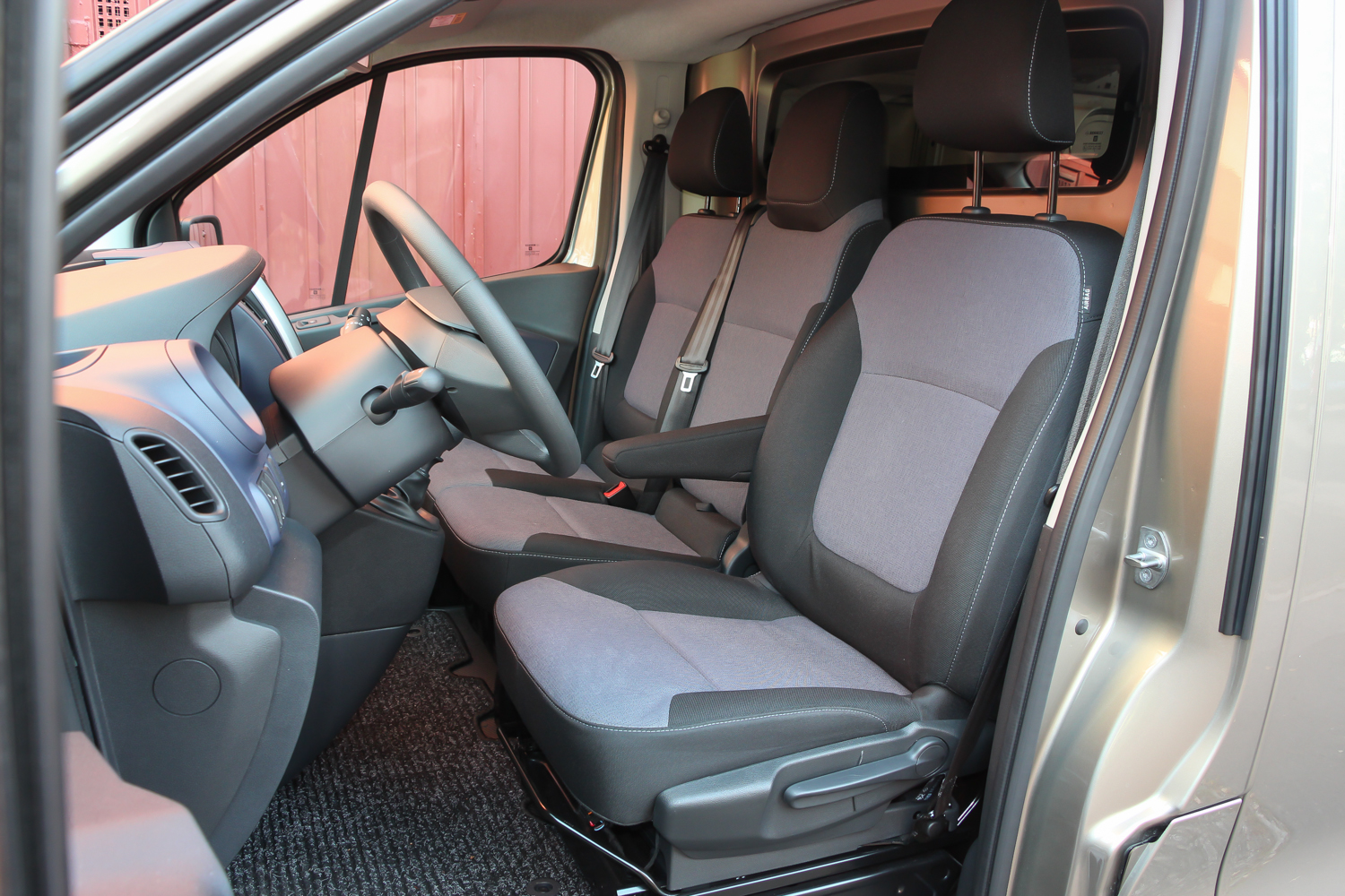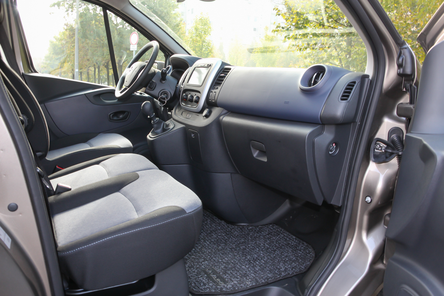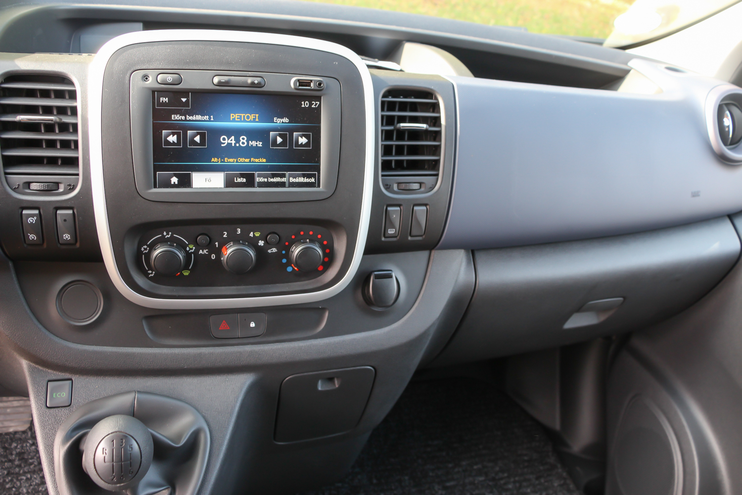 Hibaként a start-stop rendszer esetleges működése róható fel. Az újraindítás időnként csak a harmadik-negyedik kikuplungolásra sikerült. Ilyenkor jól jött, hogy német rendszámos a tesztautó: nem édesanyám csuklott, hanem „hülye német voltam, nem is dudáltak le, miközben az újraindítással szívtam. Aztán ott egy ergonómiai baki. Szerencsére a régi Mercedes-Benz Vito korszaka már lezárult, annál még a sofőr síkjától jobbra esett a volán. Bár a Vivaróban tér van bőven, és kézre is esik minden, de a dupla ülés belső helye csak egy szükségmegoldás. Aki középen ül, sem a váltókar púpjától, sem a középkonzoli kitüremkedéstől nem fér el lábilag. Van gond a sofőroldalon is, az én jobb térdemet rettenetesen nyomta a váltóbox kemény, műanyag széle. Ha Viavaro-sofőr lennék, 20 ezer kilométer után már durva csontkinövés keletkezne a szárkapocscsontom tetején. Nem szoktam terpeszkedni, ilyesmire sem szoktam panaszkodni, de kanyarban jobb térddel mindig pont erre a fájó pontra támasztottam.