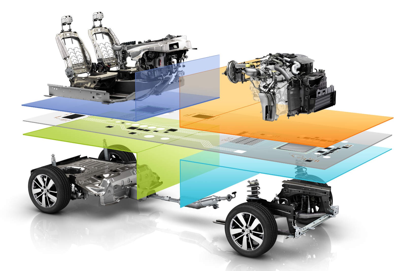 A Renault-Nissan szövetség együttműködése felpörgött: hamarosan a teljes modellpalettát összesen háromféle technikai alapra fogják építeni. A közös fejlesztés egyértelmű előnye a költségcsökkentés, minél több helyen fel tudnak használni egy adott alkatrészt, annál jobban megéri kifejleszteni és gyártani is. Másfél évtizeddel a szövetség megkötése után jutottak el odáig, hogy háromféle moduláris platform kifejlesztésével és közös használattal faragják a költségeiket. Három méret, három felhasználási terület, a Common Module Family (CMF), azaz a közös modul család tagjai a CMF-A, CMF-B és CMF-C/D neveket kapták. Az A jelőre kisautókat építenek majd, a B lesz a népes középkategóriásoké, a C/D pedig a gyártott legnagyobb méreté. A tengerentúli Nissan Rogue, de az európai X-Trail és Qashqai is ez utóbbin gurul már. A legelső Renault, ami az új alapokon készül majd, a CMF-C/D alapú, hamarosan bemutatkozó legújabb generációjú Espace lesz. 2020-ig a teljes paletta 70 százaléka már CMF alapú lesz. A következő években az együttműködéssel nem kisebb a cél, mint bekerülni az öt legnagyobb autógyártó közé.