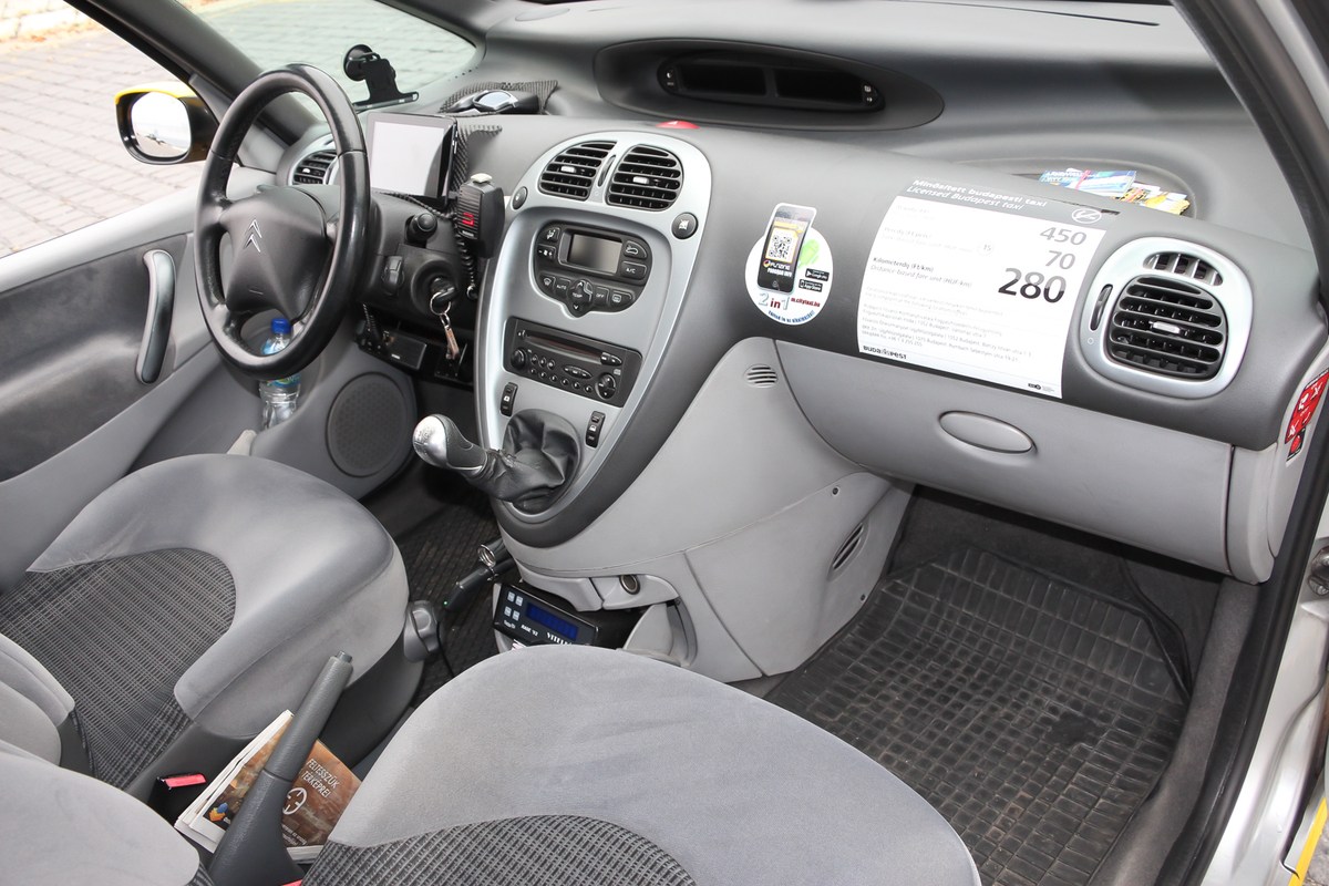 Édesapám autója 2008-as, tehát már bőven Euro 4-es. Amikor ő vette, már nem gyártották, de a hazai kereskedőknél még nagy tétel „jóárasított” darab volt készleten. Ez a jobban felszerelt kivitel, de nagy különbségek a széria végén már nem voltak. Ebben digitális és automata a klíma, és hátra is jutott villanyablak. Van esőérzékelős ablaktörlő, automata lámpa és villanyosan behajtható tükör is. A biztonsági felszerelések közül alap az ABS és a 4 légzsák, amik közül a két oldalsó a fejet is védi elvileg, de az Euro NCAP egykori tesztjén azért nem lett meg az a négy csillag hiba nélkül. Mindegy, a lényeg, hogy a maga korosztályában elfogadható védelmet ad a Picasso.