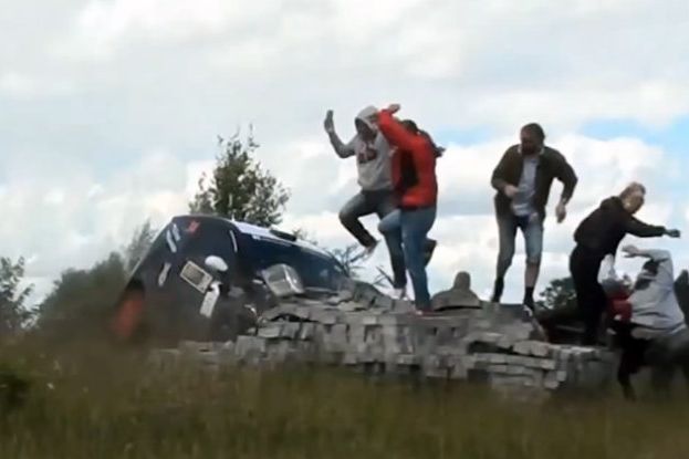 Lengyelországi történet, hogy a Citroen C2-vel érkező pilóta egy jobb kanyarban besokall, az autó lapjával balra irányíthatatlanul lecsúszik az útról, és nagy sebességgel becsapódik egy téglarakásba. Amin nézők álldigáltak. Hihetetlen szerencséjükre nem esett komoly bajuk, csupán egyiküket és a sofőrt szállították kórházba könnyebb sérülésekkel. Vajon a jóemberek csak azért másztak fel a téglákra, hogy jobban lássanak, vagy azt is gondolhatták, hogy ha már veszélyes helyen, a „bukótérben vannak, akkor megvédi őket a kupac? Páran egyébként a rakás mögött is, kvázi fedezékben voltak (például egy kislány), azaz vélhetően tisztában lehettek a rizikóval… Tanulság mindenesetre (ezredszer, milliomodszor is): raliversenyen külső íven soha.