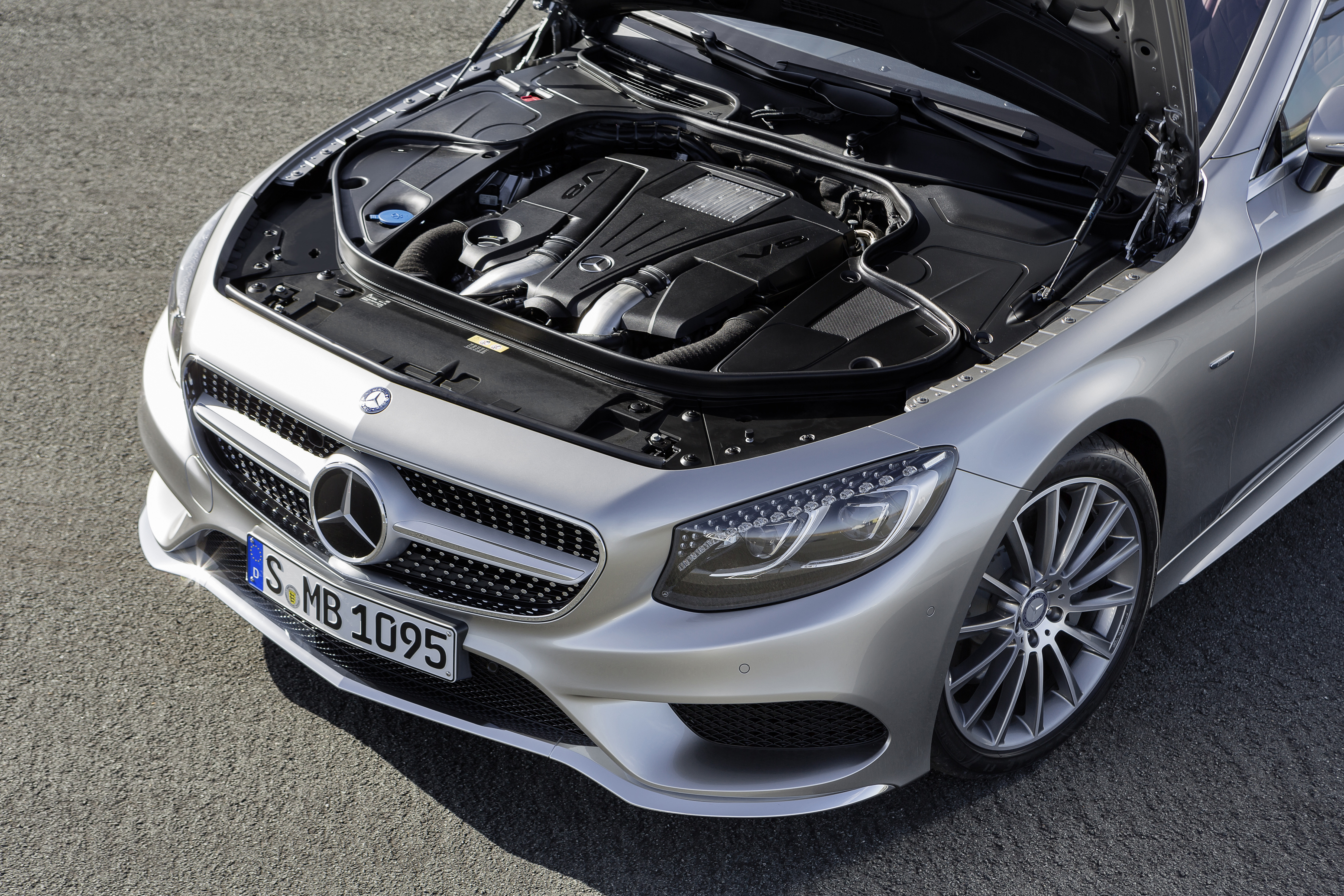 A képen a sportosabb kiszerelésű kötény és felni. Motorból egyelőre csak egyféle lesz, de az S 500 Coupét még több változat fogja követni. Ez itt 4,7 literes V8-as; teljesítménye 455 lóerő, nyomatéka 700 Nm