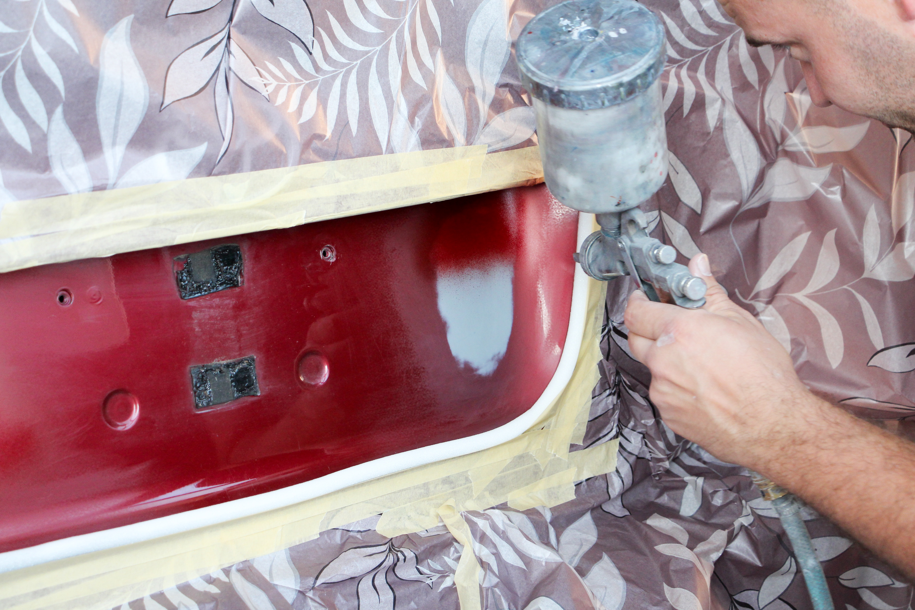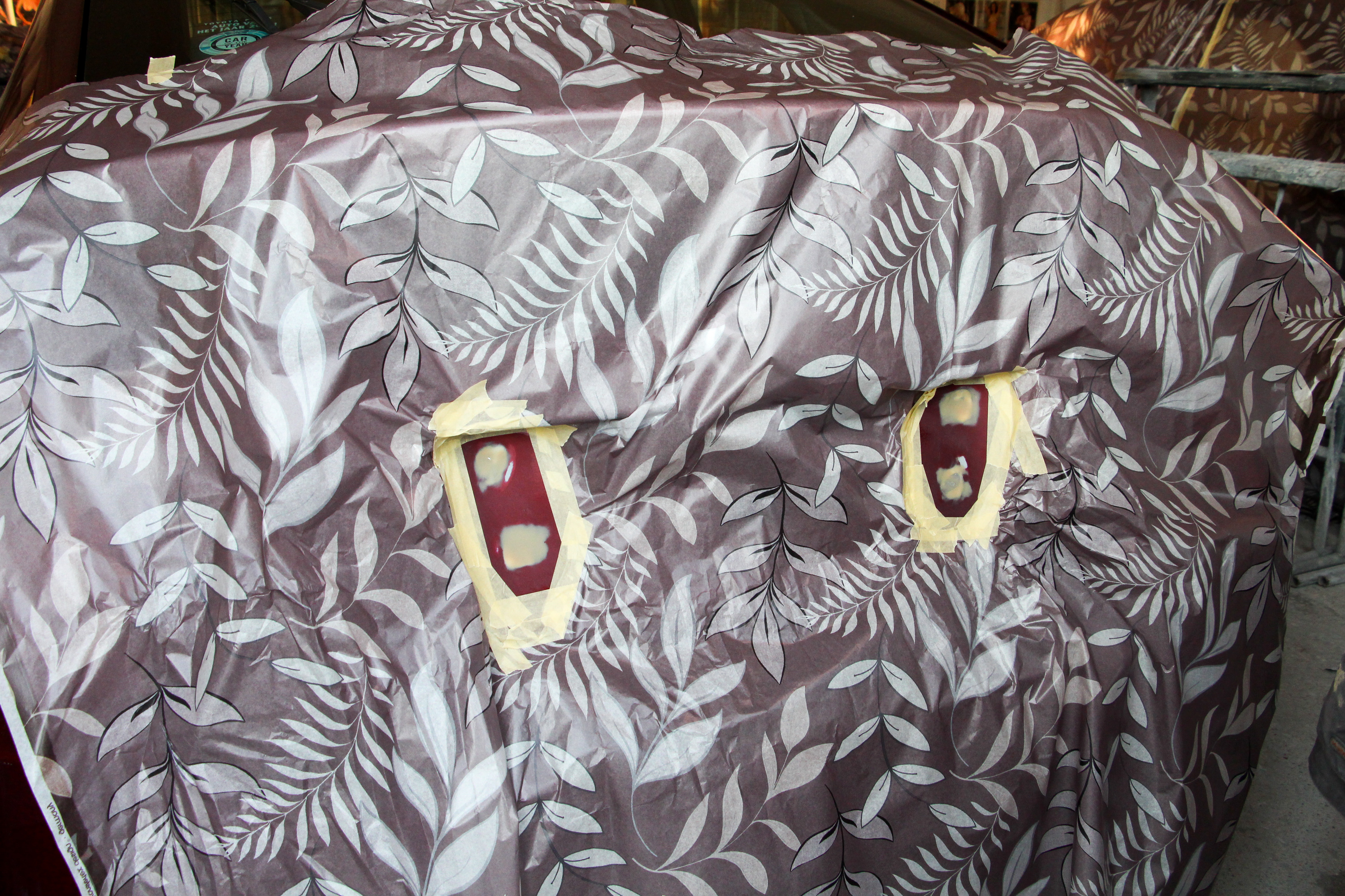 Fényezéshez bizony maszkolás is szükséges, a festéknél lassabban száradó, tehát a levegőben még nem megkötő lakk miatt pedig az egész autót be kellett csomagolni, a már fújással felvitt filler alapozó hevítésre gyorsan köt