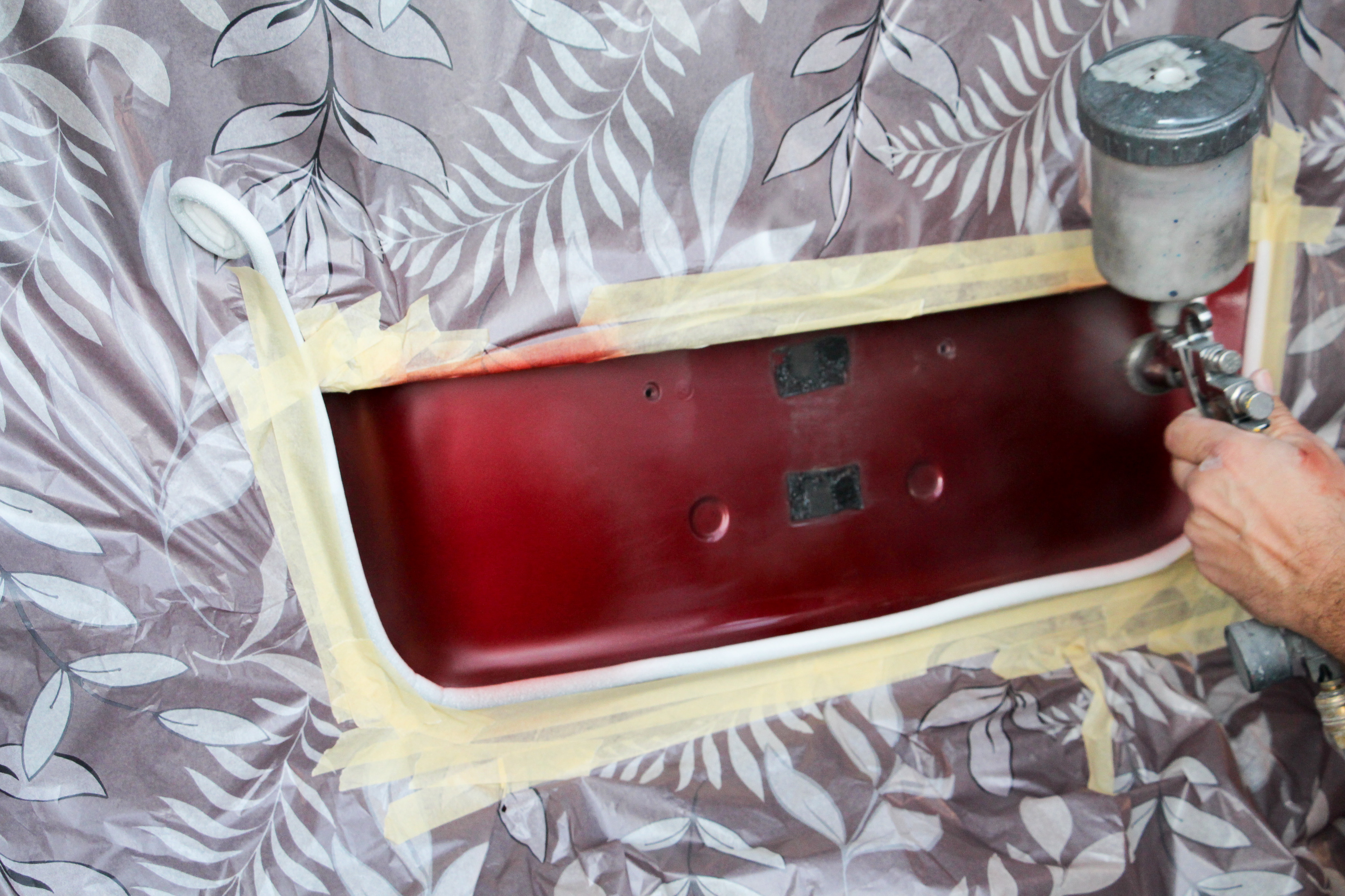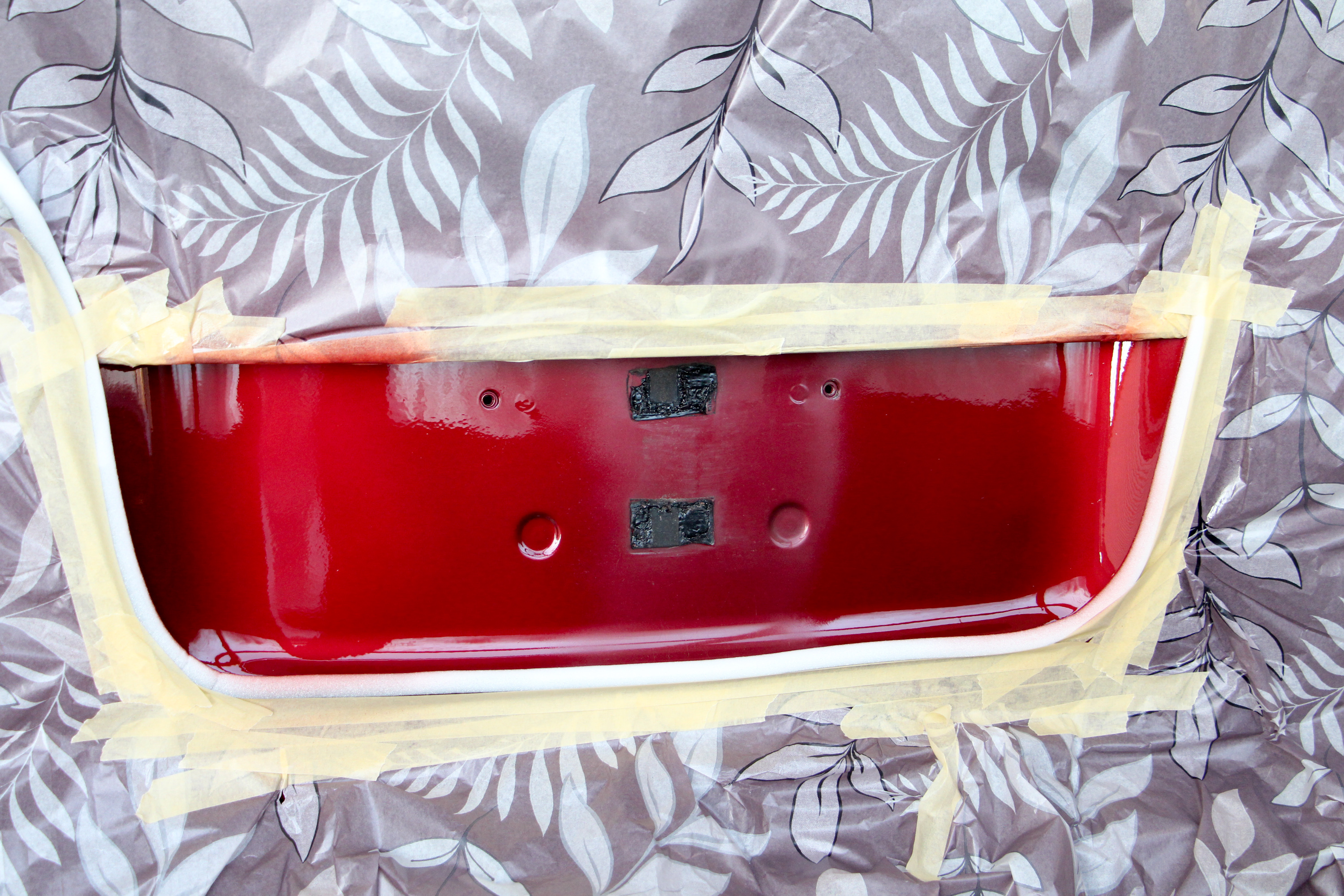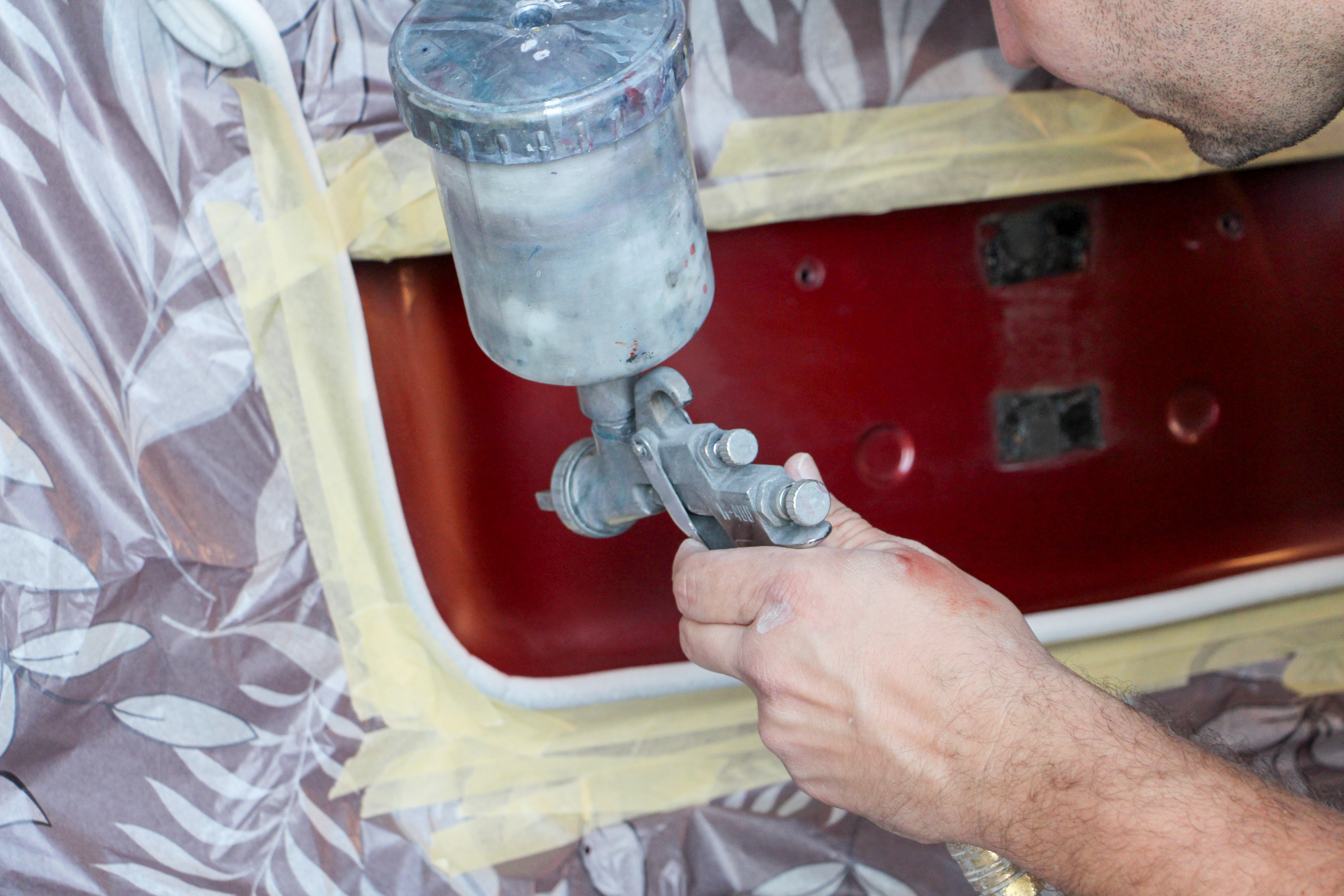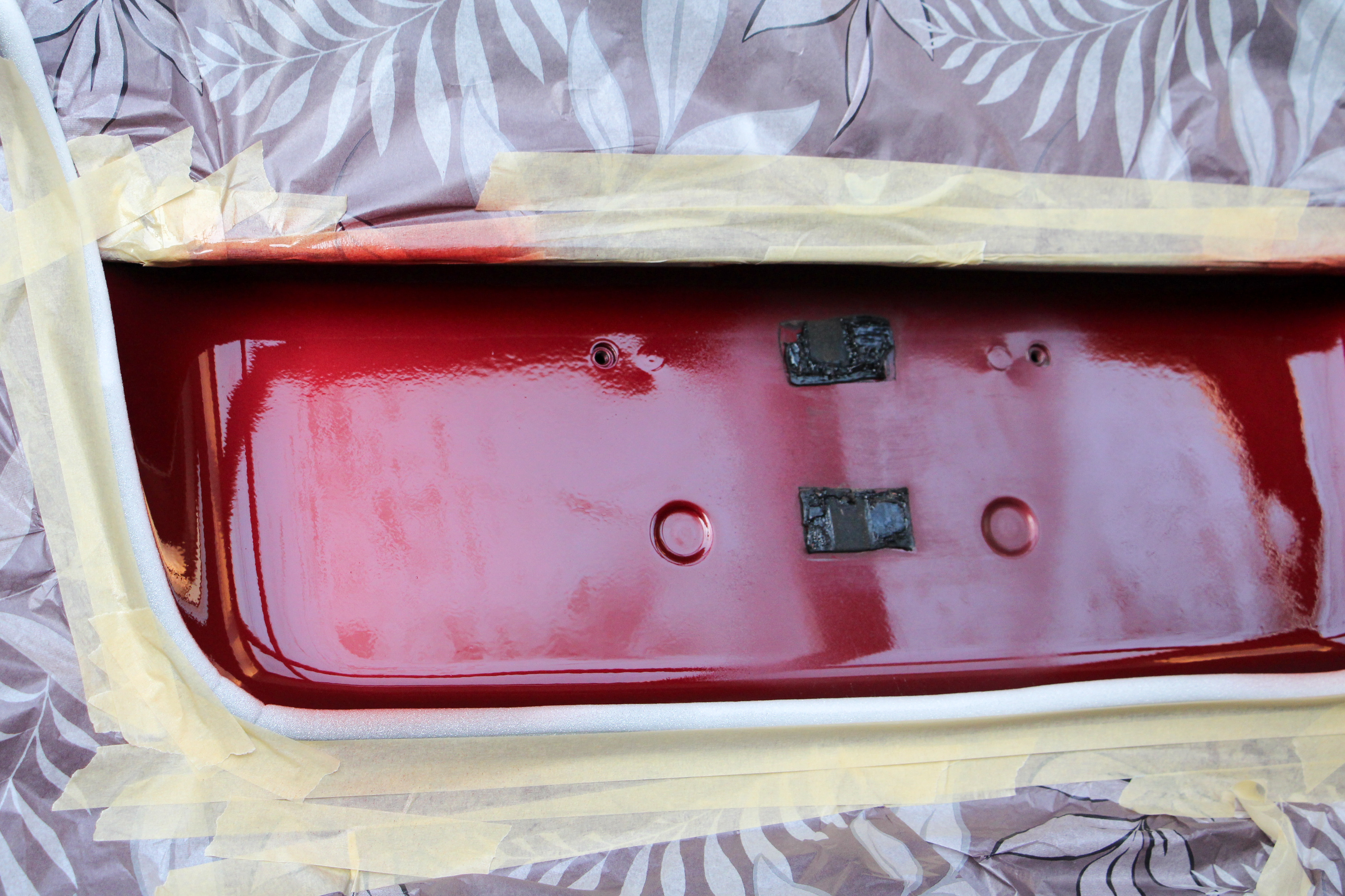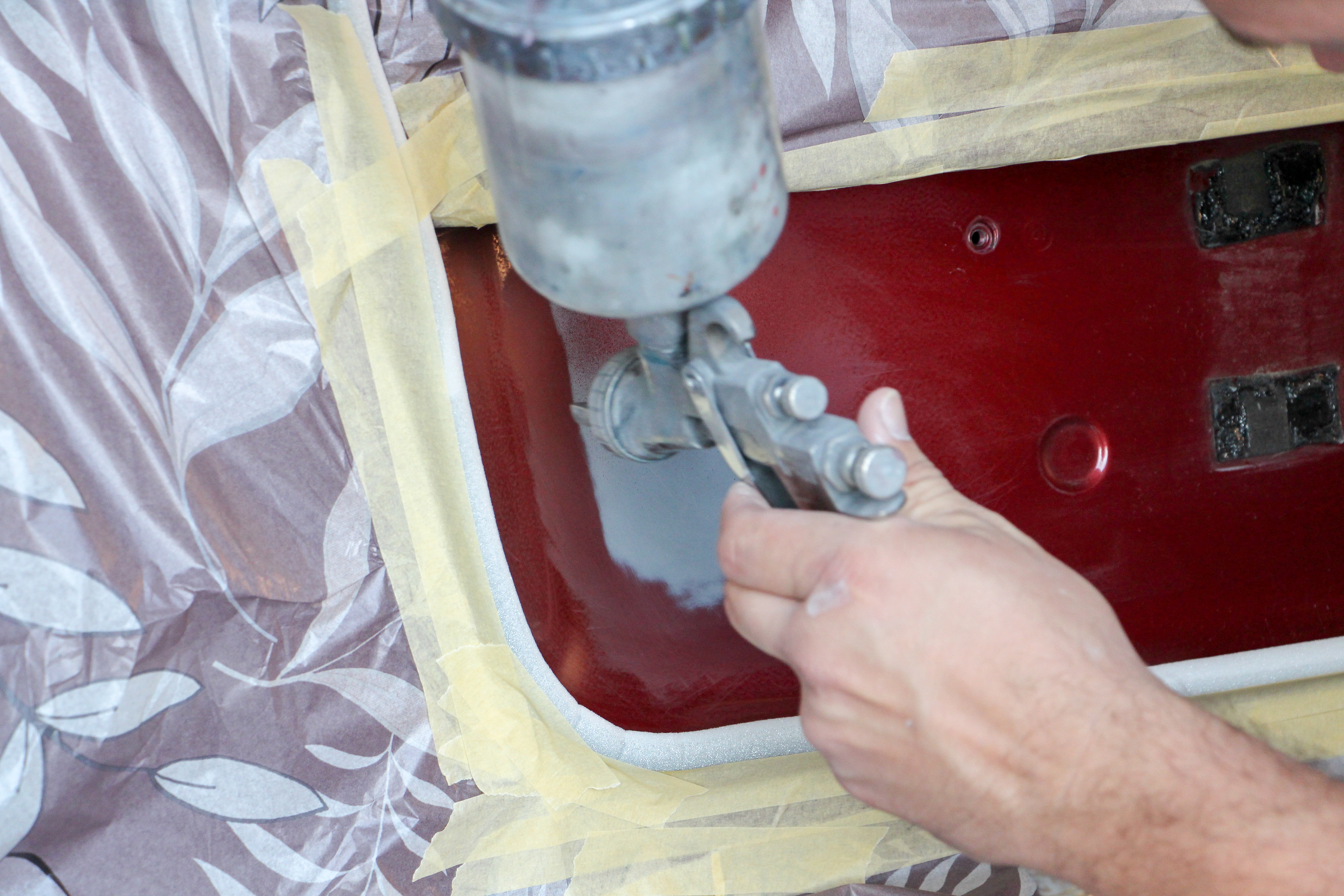 Hosszas előkészítés után a fényezés már gyors, persze tapasztalt kezet igénylő művelet. Az utolsó lépés a lakkozás, utána közel napnyi száradás, majd finom polírozás után lesz teljesen kész a munka