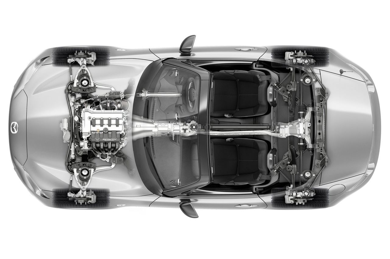 Az új MX-5 az első hátsókerék-meghajtású Skyactiv modell, mely speciálisan erre az autóra hangolt, ám részleteiben egyelőre nem ismert Skyactiv-G benzinmotorokkal érkezik. Tömegét 100 kg-mal csökkentették elődjéhez képest, súlypontját alacsonyabbra helyezték, a gyári közlemény szerint így még inkább érezhető benne a Jinba Ittai, a ló és lovas egységének lényege – alig várjuk, hogy megtapasztalhassuk.