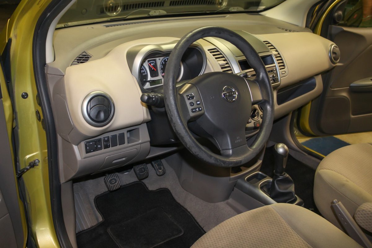 Így volt ez a képeken látható Nissan Note esetében is. Pedig első tulajos autó, vezetett szervizkönyvvel, 8 év alatt gyűjtött nem egész 100 ezer kilométerrel. Viszont tulajdonosa, bár garázsban tartja, soha nem babusgatta, hanem használta. Előfordult, hogy tükreinek széleit, vagy akár az autó oldalát végigkarcolta a garázs falán, előfordult, hogy ő vagy valaki más horzsolta a lökhárítók széleit, de bizony olyan is, hogy az utastérben ez vagy az kifolyt. Utóbbiak ráadásul nagyon feltűnőek a világos kárpitos Nissan Note esetén. Meg sajnos az is feltűnő, hogy az első generációs Note, hasonlóképp az alapjait adó békalámpás Micrához, bizony nagyon gyorsan kopó belterű. Esetükben már 100 ezer kilométeres futásnál is jellemző az erősen kopott kormánykerék, s a textilkárpitok sem tartósságukról híresek.