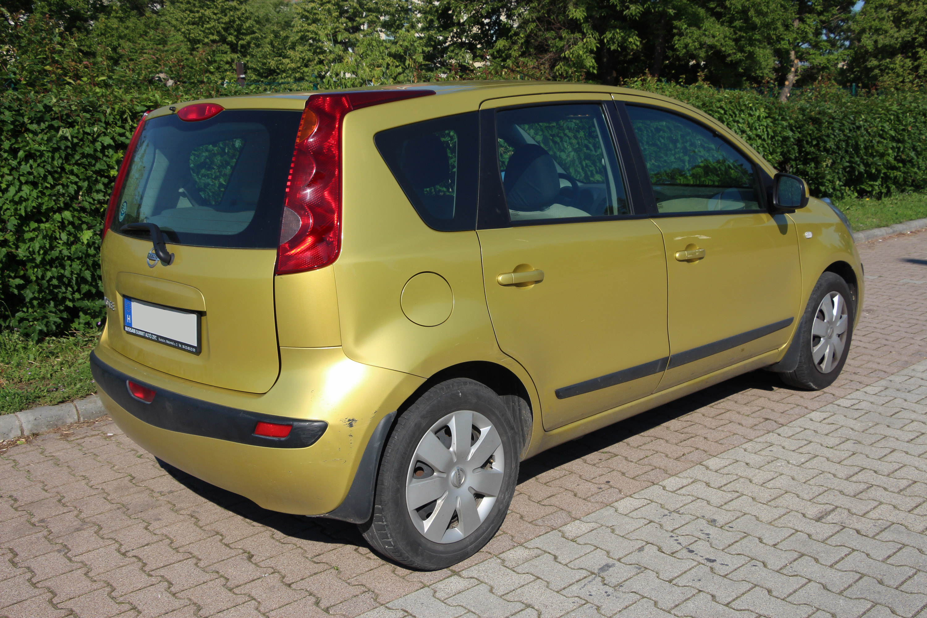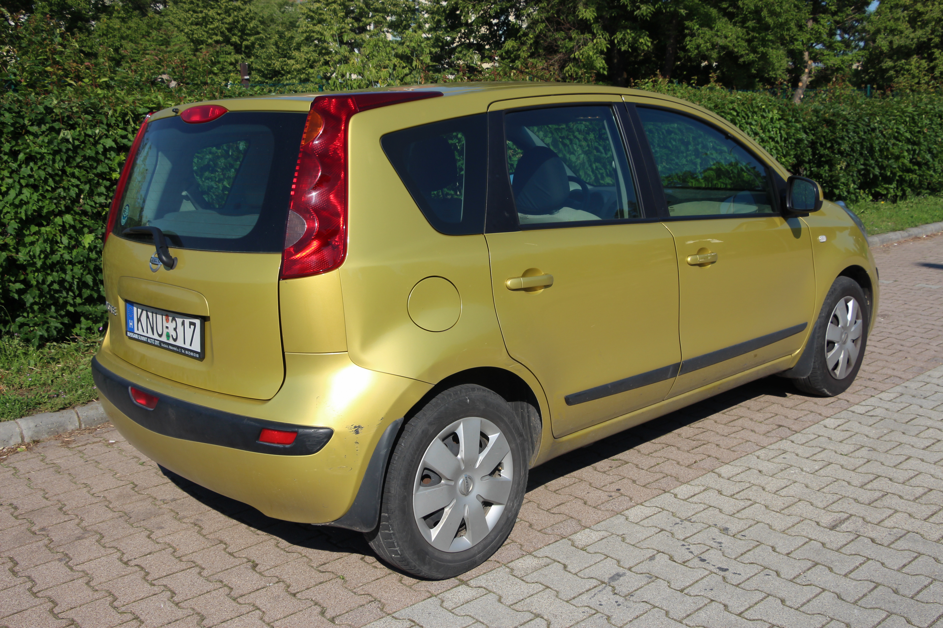 Így volt ez a képeken látható Nissan Note esetében is. Pedig első tulajos autó, vezetett szervizkönyvvel, 8 év alatt gyűjtött nem egész 100 ezer kilométerrel. Viszont tulajdonosa, bár garázsban tartja, soha nem babusgatta, hanem használta. Előfordult, hogy tükreinek széleit, vagy akár az autó oldalát végigkarcolta a garázs falán, előfordult, hogy ő vagy valaki más horzsolta a lökhárítók széleit, de bizony olyan is, hogy az utastérben ez vagy az kifolyt. Utóbbiak ráadásul nagyon feltűnőek a világos kárpitos Nissan Note esetén. Meg sajnos az is feltűnő, hogy az első generációs Note, hasonlóképp az alapjait adó békalámpás Micrához, bizony nagyon gyorsan kopó belterű. Esetükben már 100 ezer kilométeres futásnál is jellemző az erősen kopott kormánykerék, s a textilkárpitok sem tartósságukról híresek.