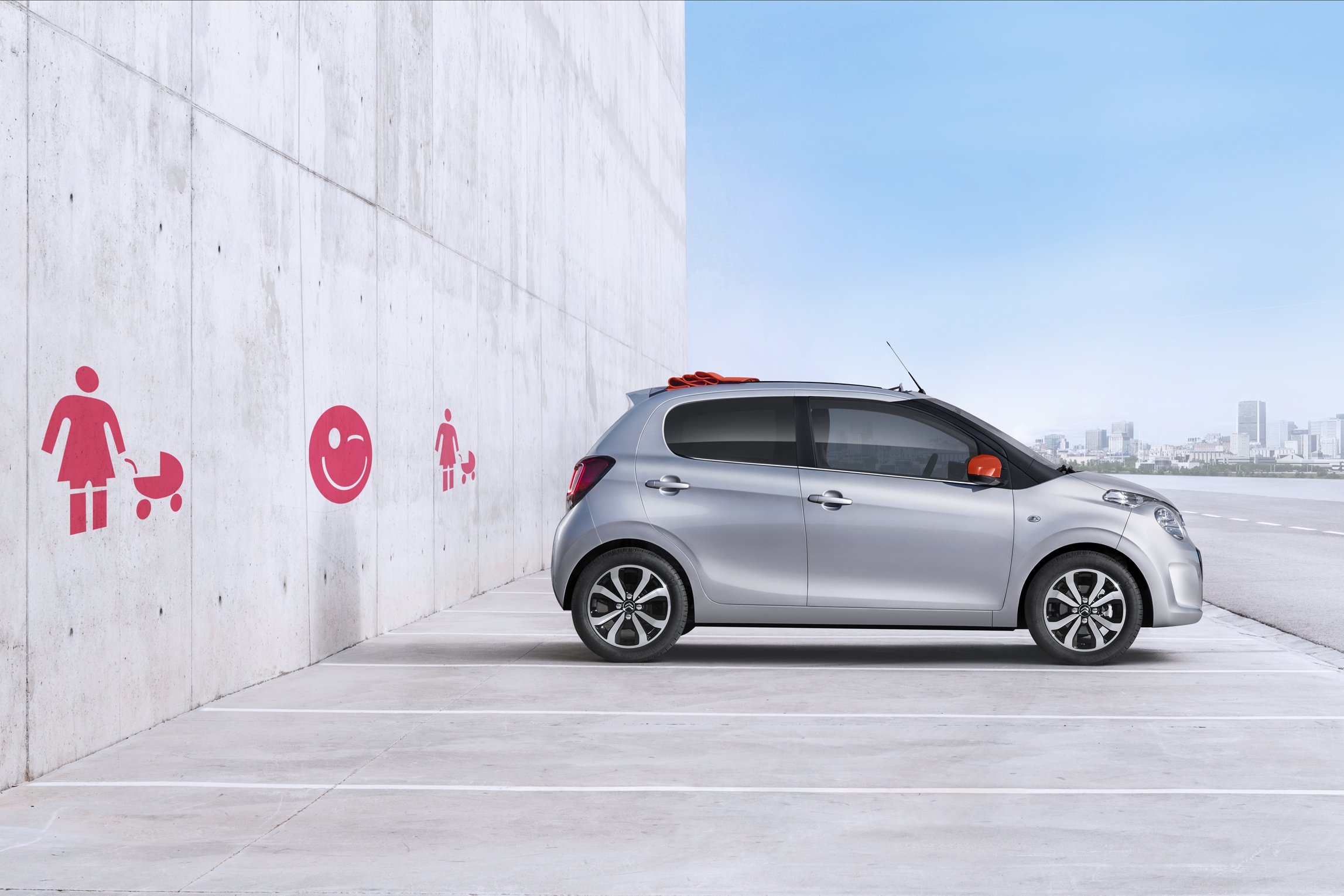 Ami viszont fontosabb lehet, hogy ez még inkább mini: 3,46 méteres hosszúsága ugyanis 1 cm-rel szerényebb a 108-asénál, szélessége ugyanúgy 1,62 méter, magassága 1,45 m, a városi autóknál különösen fontos fordulókör-átmérő dettó 9,6 méter. Ami a Peugeot-nál TOP!, az a Citroënnél Airscape, vagyis 1,8 méter hosszú, 76 cm széles harmonikaszerűen nyitható vászontető, ami mind a 3, mind az 5 ajtós verziókra rákerülhet. A vászontető harsányan a fényezéstől eltérő színű, többtónusú fényezés a karosszériára is kérhető lesz, miként az utastérben sem kell majd az egyhangúságtól félni. Nem csak személyre szabható, automata klímával, kulcs nélküli nyitó- és indítórendszerrel, tolatókamerával a miniautók körében naprakészen felszerelhető is kíván lenni a C1, melynek 7 colos központi érintőképernyője Mirror Screen funkciót is kínál. A csatalakoztatott okostelefon kompatibilis alkalmazásai (akár annak navigációja, vagy a facebook) is megjelenhet azon.