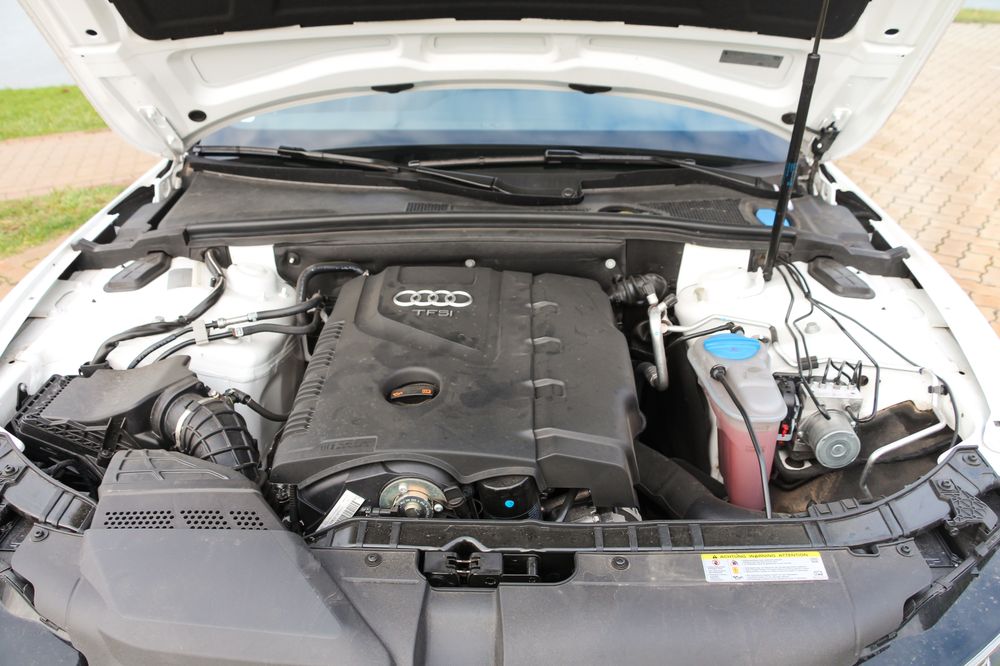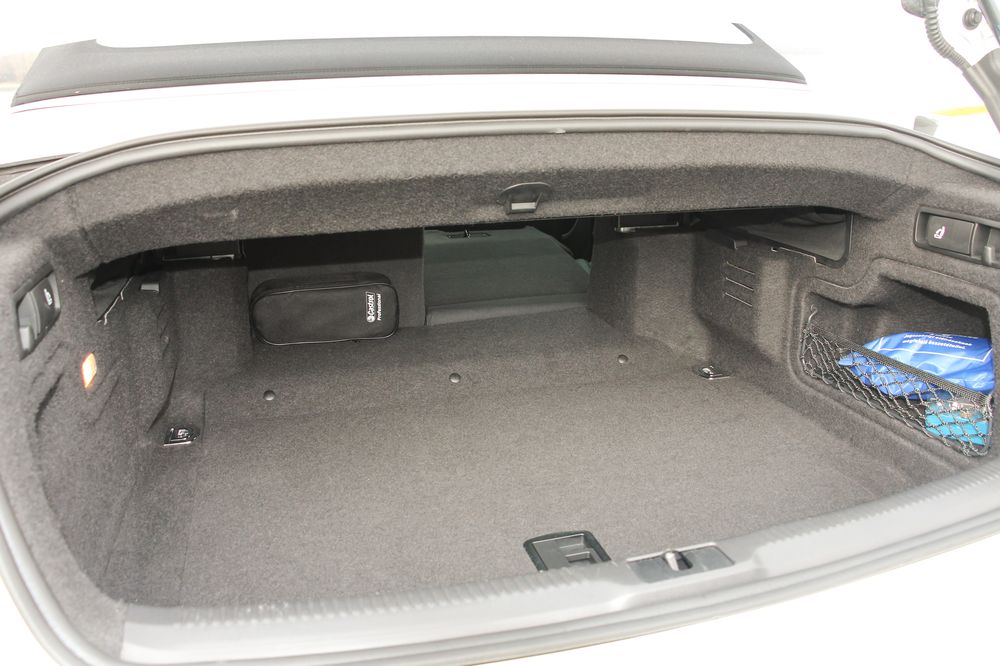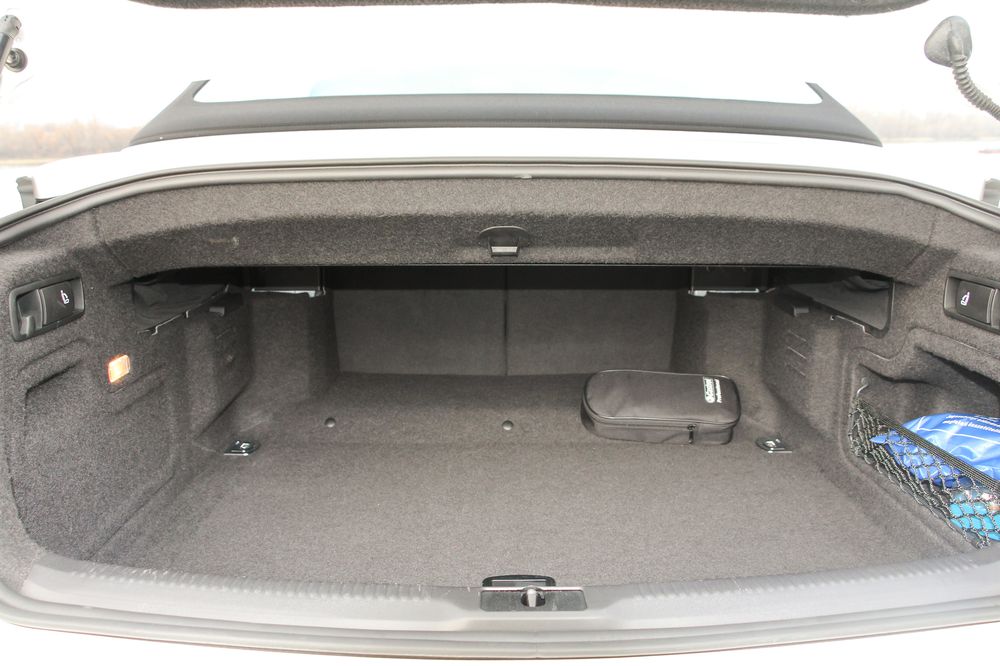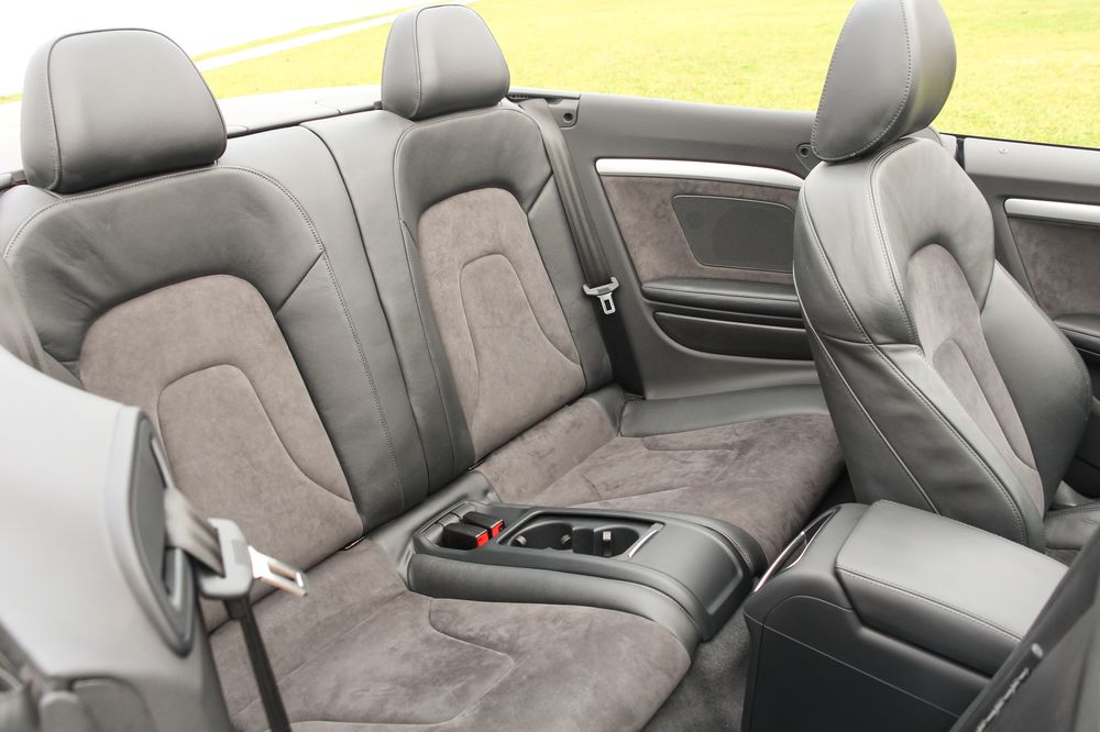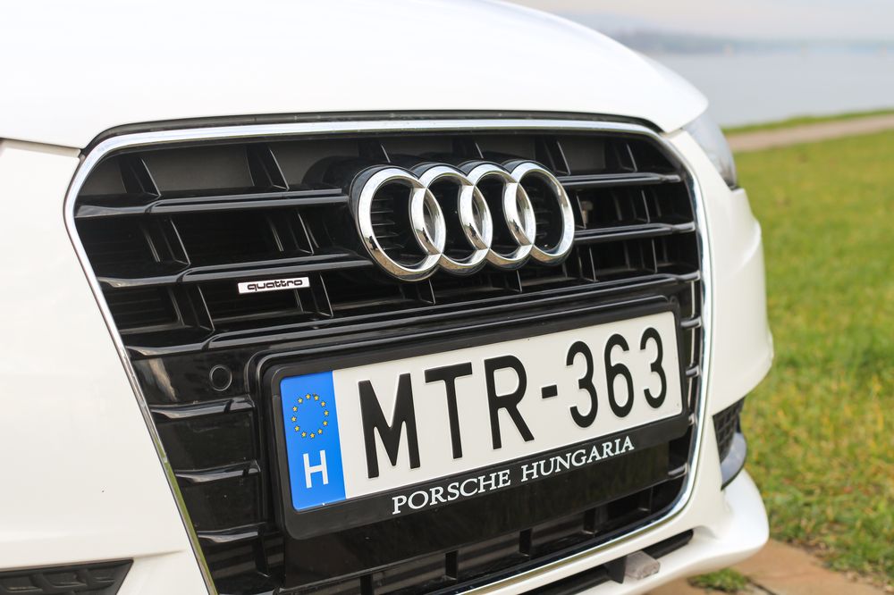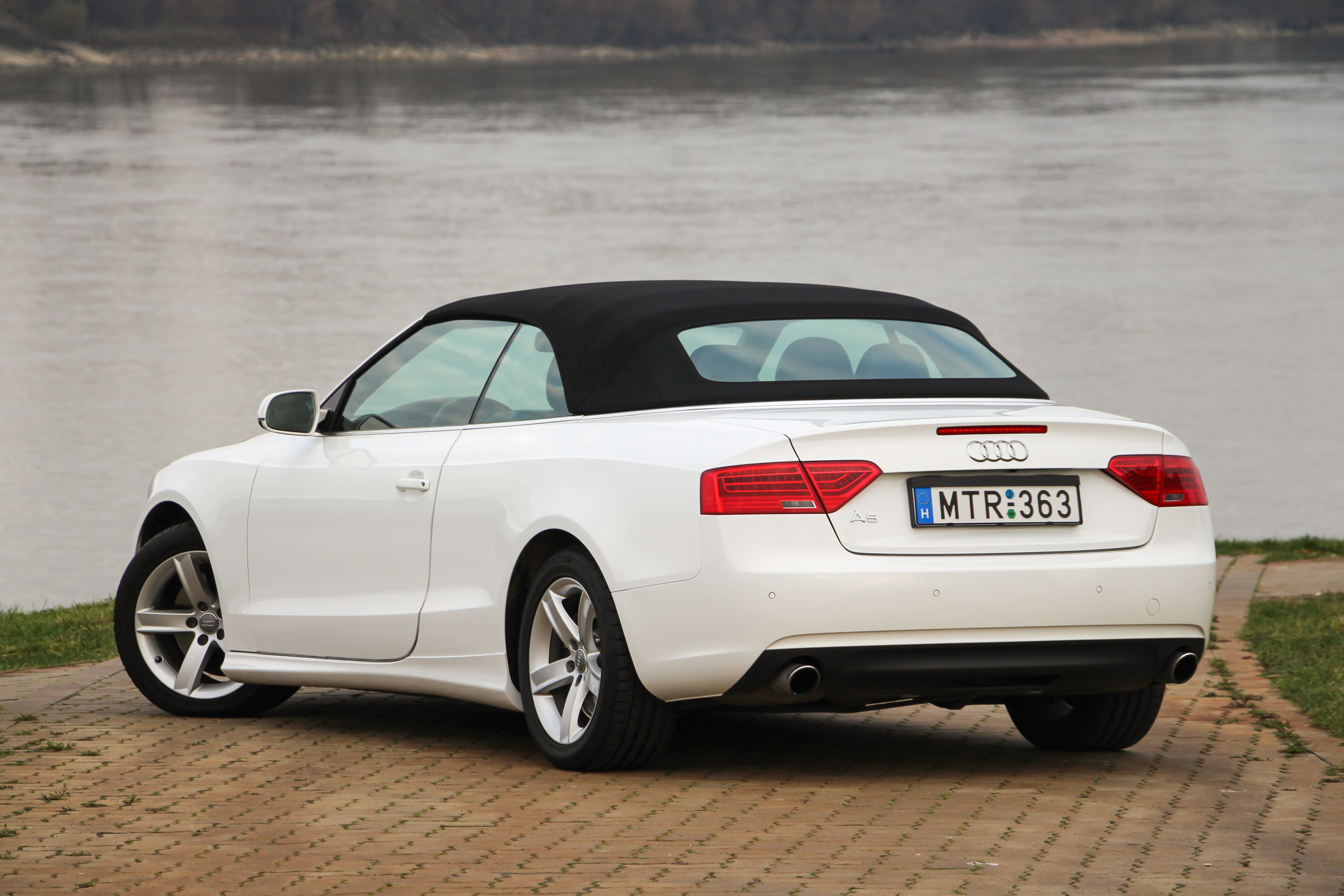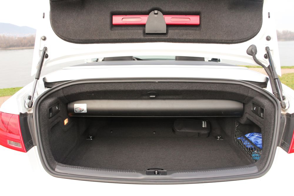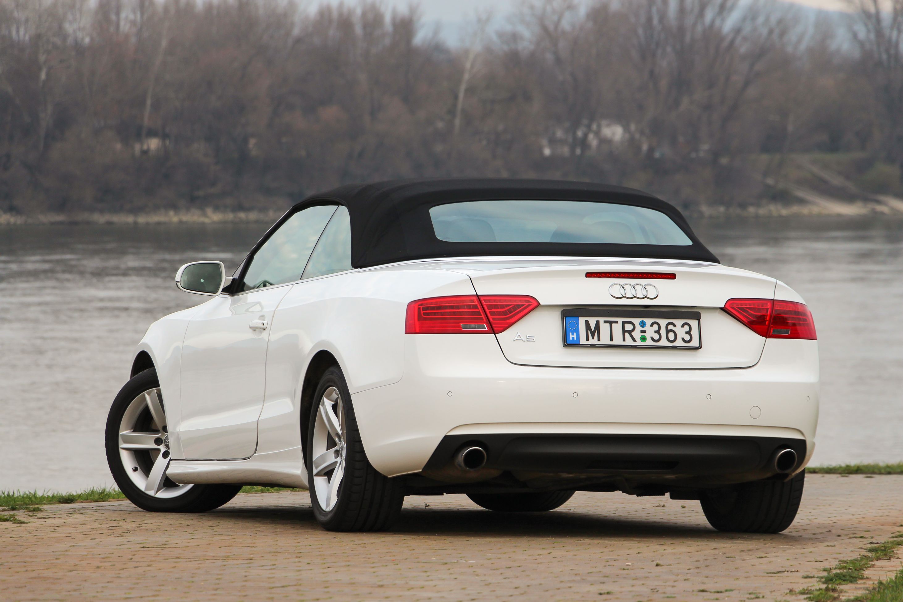 Duplakuplungos, az Audi terminológiája szerint S tronic a TFSi benzinmotorhoz csatlakozó hétfokozatú automataváltó, quattro, azaz állandó és Torsen differenciálműves az összkerékhajtás, adaptív és hangolható lengéscsillapítós a meglehetősen igényes, elöl kettős keresztlengőkaros, hátul oldalanként ötkaros független futómű. A felnik „csak” 17 colosak, de nem teljesen alapok, azok ugyanis 225/50 R17-es abroncsokat kapnak, ezekre az ötküllős kerekekre pedig 245/45-ösök kerültek – Continental Sport Contactok. Azok sincsenek elkoptatva, hiszen a 2,5 éves autóban még 12 ezer kilométer sincs. Újszerűbb ez a kabrió, mint számos tesztautó, ami nálunk jár. Ezt a kategóriát ugyanis – nagyon helyesen – nem kapja meg mindenki. Nincs összekaristolva a kormány bőrhuzata, nincsenek megütve a felnik, nincs gépi mosóval széjjelkaristolva a gyöngyházfehér fényezés.