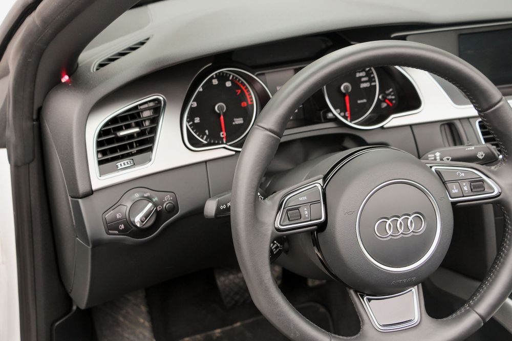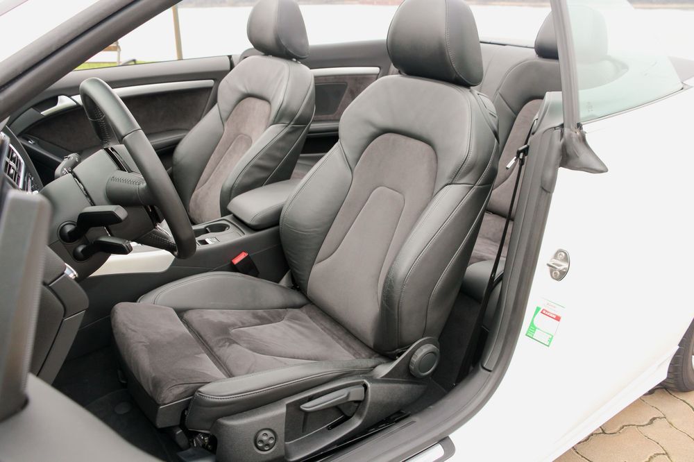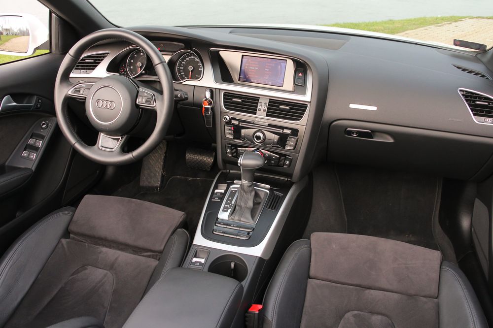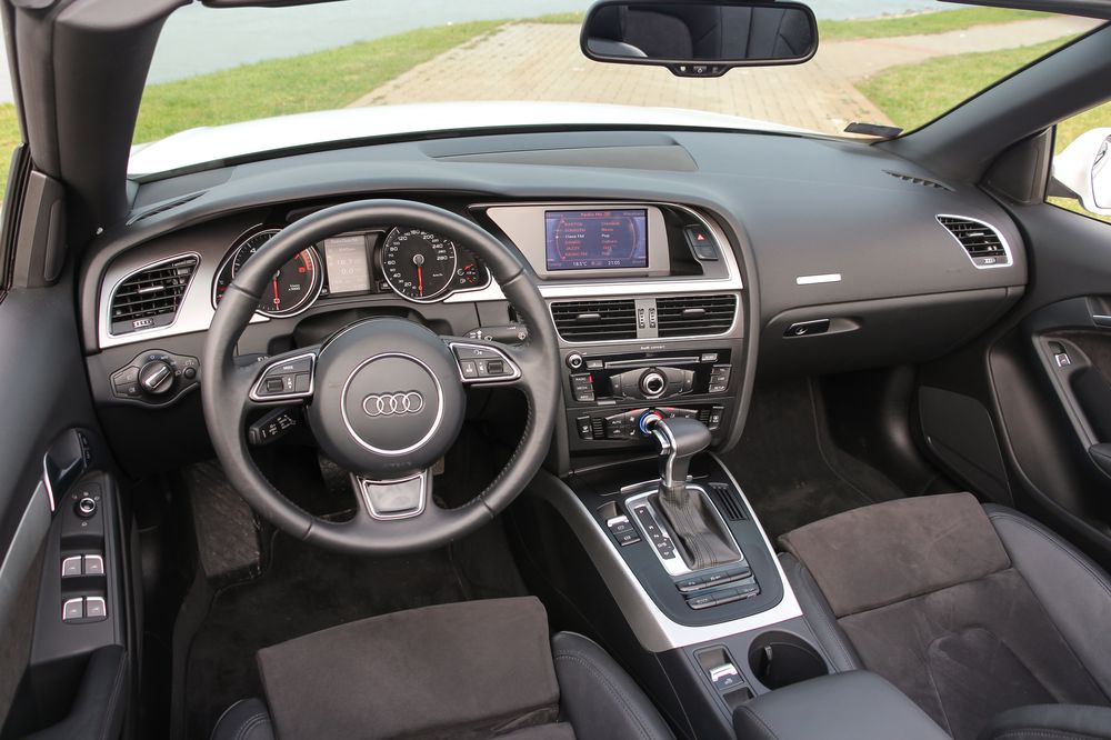 Automata, kettős kuplungos S tronic a váltó, a kesztyűtartóról is olvashatóan quattro a hajtás, elektrokróm a belső tükör, kabrióként is komoly utazóautó az A5