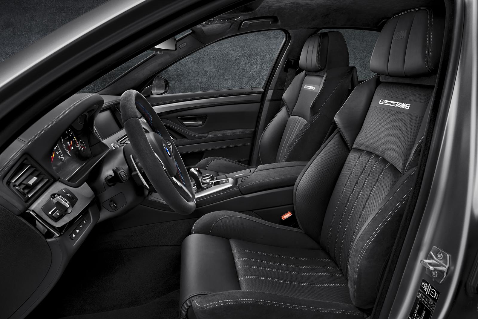 Röviddel azután, hogy kiszivárogtak az első infók a BMW M5 izomautó 30 éves fennállását ünneplő limitált szériáról, a gyár máris nyilvánosságra hozta a hivatalos képeket és adatokat. A csúcsgép Individual Frozen Dark Silver metálfényezése különleges matt/selyem, kéttónusú és egyedi hétküllős kerekei 20 colosak, abroncsai elöl 265/35-ös, hátul 295/30-as méretűek, futóműve a feszesebb hangolású rugókat és lengéscsillapítást adó Competition Package-nek hála egy egész centivel ültetett az alapmodelléhez képest.