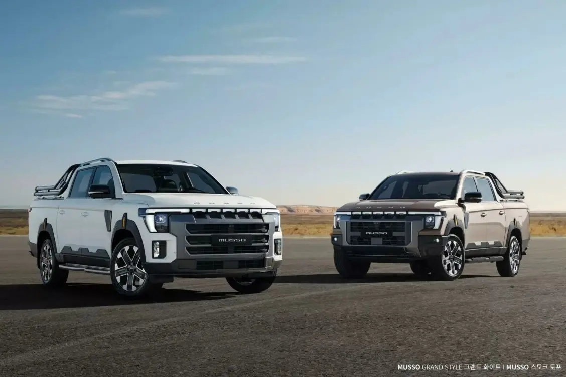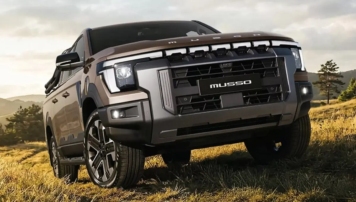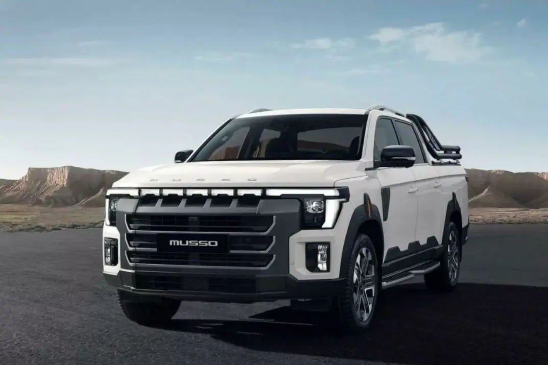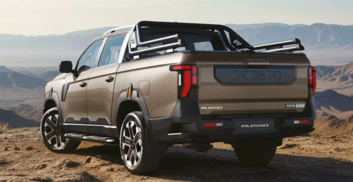 Kétféle orrkialakítással érkezik majd a friss KGM Musso, de mind a kettőben közös a hatalmas hűtőmaszk és a fényszórók közötti világító, de tagolt fényhíd, ami egyeseket a Jeep modellekre emlékeztet. Hátul hatalmas KGM feliratot nyomtak a plató ajtajának műanyag betétjébe, a lámaptestekkel viszont nem nagyon tudtak játszadozni, de ez a pickupoknál mindig nehéz, így inkább a lámpatesteken belüli fényeket próbálták egyedivé tenni.