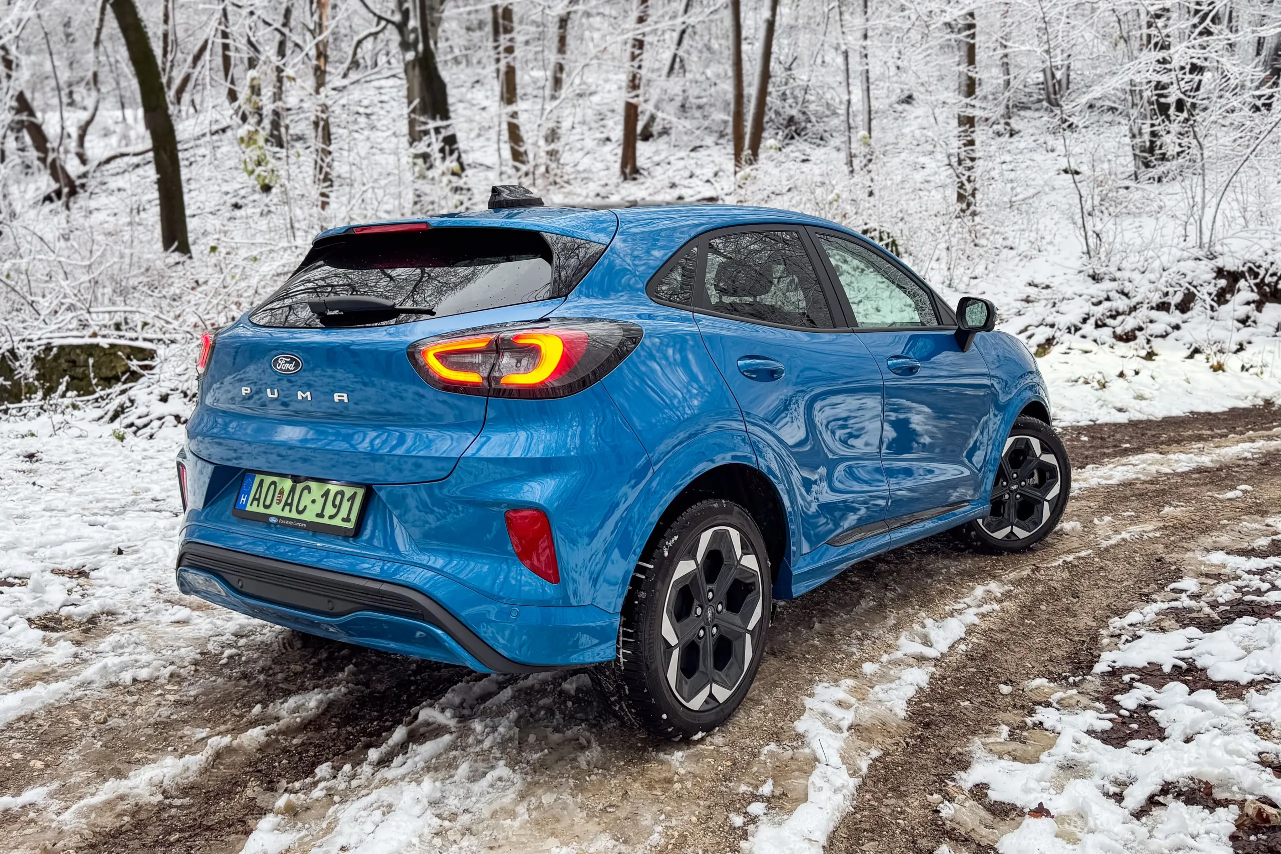 Mostanra úgy vélem sok gyártó egyszerűen túlgondolja a villanyautóit, és olyan igényeknek is meg akarják feleltetni őket, amiket valójában nem is támasztanak feléjük a vásárlók. Legalábbis ténylegesen nem. Mert valljuk be, a legtöbben egyszerre akarunk egy tágas, nagy hatótávolságú, gyorsan tölthető és sportos elektromos hajtású autót. Nos, ez így egyszerre nem igazán összeegyeztethető, de miért is kéne ezen erőlködni. Ha adott egy B-szegmensű kis crossover, azt valószínűleg belső égésű motorral sem a Budapest-Frankfurt rohangálásra fogják használni. Szerencsére a Fordnál sem akarták feltalálni a spanyolviaszt és a Puma Gen-E arra koncentrál, amire való. Tökéletes városi/előváros rohangálós autó. Sportossága sem veszett el, nem sokat változtattak a külsején. „Lefalazták az orrát, hogy jobb legyen a légellenállása, és ezt sikerült ízlésesen megoldani, még egy picit a Mustang Mach E-re is hasonlít az új nózi. Módosítottak a lökhárítón és az abba vágott légbeömlőn, egyedi felniket kap az autó, hátul pedig eltűnt ugyebár a kipufogó, valamint fehér betűkkel írják a típusnevet. Szerintem fel is soroltam az összes eltérést a benzinmotoroshoz képest. Bent is a frissítés utáni Puma vonalai fogadnak, ami a digitalizációval kissé sarkosabb lett. Az érdekes formájú kormánykerék jó nagyra nőtt, szerintem egy kicsit kisebb átmérővel még sportosabb lehetne az autó, de amúgy ez is jó fogású, és gyorsan beállítható a megfelelő vezetési pozíció. Az ülések kényelmesek, főleg rövidebb távokon, talán csak a combtámasz lehetne vaskosabb, ha már ilyen sportos kisugárzású az autó. Az anyaghasználat a kategóriának megfelelő, néhol olcsó hatású műanyagokkal, de összességében kellemes, minőségi atmoszférával. A feljebb említett digitalizáció „megszemélyesítői a 12 colos infotianment érintőképernyő és a 12,8 colos műszeregység a vezető előtt. Utóbbinak szép a grafikája, mindig könnyen leolvasható, előbbiben meg továbbra sem tud magyarul a Sync4 rendszer, ettől függetlenül könnyen kezelhető, logikus a menürendszer. Hátul ugyan elférnek felnőttek is, de csak rövidebb távokon érzik majd jól magukat, gyerekeknek viszont teljesen megfelelő a térkínálat. Sőt, a csomagtér sem túl kicsi, hiszen ott van a padló alatt a méretes Gigabox és még az autó orrába is jutott egy rekesz, ami pl. tökéletes a töltőkábelnek. Ha egyben számoljuk mindet, akkor összesen 556 liter áll rendelkezésre. Egyébként a villanymotor is ott tanyázik az autó orrában, az akkumulátor-cellák pedig a padlólemezen sorakoznak. Az első kerekek hajtására 168 lóerő áll rendelkezésre, 290 Nm forgatónyomaték mellett és ez tökéletesen elég a kellemes közlekedéshez, sőt néha egy kis kanyarvadászathoz is. Üresen 1488 kg az autó tömege, ami kedvező érték a villanyautók között. Tény, hogy ebben az esetben sem lehet meghazudtolni a fizikát, a tömeg mindig az élményautózás ellensége, illetve a magas építésmód szintén. Viszont a Ford mérnökei továbbra sem felejtették a futómű hangolásban szerzett mágikus erejüket és a Puma Gen-E kanyartulajdonságai meglepően sportosak. Pedig nem is valami soklengőkaros, drága és csúcstechnikás felfüggesztés van hátul. Mégis jó vele hegyeken-völgyeken át autózni, amihez a nem túlsterilizált kormányzás is hozzátesz. Persze ehhez azért kellően feszes rugózás is kell, ami viszont a hazai utakkal nincs jó barátságban, de véletlenül se valami túlkeményített pattogásra gondolj, de nem olyan simán suhan át a göröngyökön, úgyhogy a 19 colos felniket szerintem felejtsd is el, bőven jó a 18 colos szett. Amit még mindenképp javaslok, hogy mindenképp az egypedálos módot használd, ha ilyen Pumád lesz. Sokkal jobban adagolható így a fékerő. A hegyen-völgyön át autózás a 43 kWh kapacitású akkumulátorral, papírforma szerint 376 kilométeren keresztül tarthat. Kizárólag városi használat esetén jóval több is lehet, a hideg téli valóság viszont azt mutatta, hogy 300 kilométer lesz belőle, ha fűtesz. Nálam kerek  15 kWh/100 km fogyasztást produkált. Persze, ha onnan nézzük, amit az elején elmondtam, hogy mire való egy ekkora villanyautó, akkor ez szerintem egy teljesen élhető érték. Ahogy az ára is egyre inkább elfogadható ezeknek a kis villanyautóknak. A Ford oldalán kicsivel 11 millió forint feletti árral hirdetik, de a konfigurátorban már 11 990 000 Ft az indulóár, az árlistákon meg még több. De számoljunk a 11 990 000 forinttal. Ez még mindig nem olcsó, de már sokat finomodott azóta, hogy záporoznak a villanyautók a piacra. Ráadásul, akik céges autókén tudják megvásárolni, még mindig sokmilliós támogatást kaphatnak, így bőven 10 millió Ft alá csökken az ára.