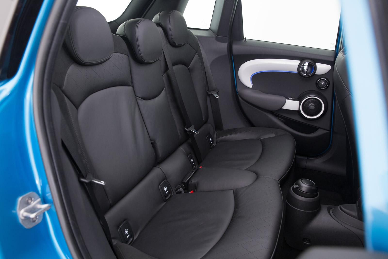 Az ötajtós MINI hossza 3982 mm, sőt, a Cooper S és Cooper SD kivitelek eltérő lökhárítóikkal a 4 méteren is túlnyúlnak. Öt egész mm-rel. És ez komoly 16 centis plusz a háromajtóshoz viszonyítva. A szélesség maradt 1727 mm, a magasság 11 mm-rel 1425-re nőtt. A tengelytáv meg 72-vel 2567-re. És a csomagtér 67-tel 278 literesre. Nagyobb a hátsó lábtér, ott három a hely, azaz ötszemélyes, és szellősebb fej-, valamit vállteret is kínál az ötajtós MINI. A hátsó üléstámla 60:40 arányban osztva dönthető; a poggyásztartó opcionális tárolócsomagja különböző magasságokban rögzíthető padlót ad.